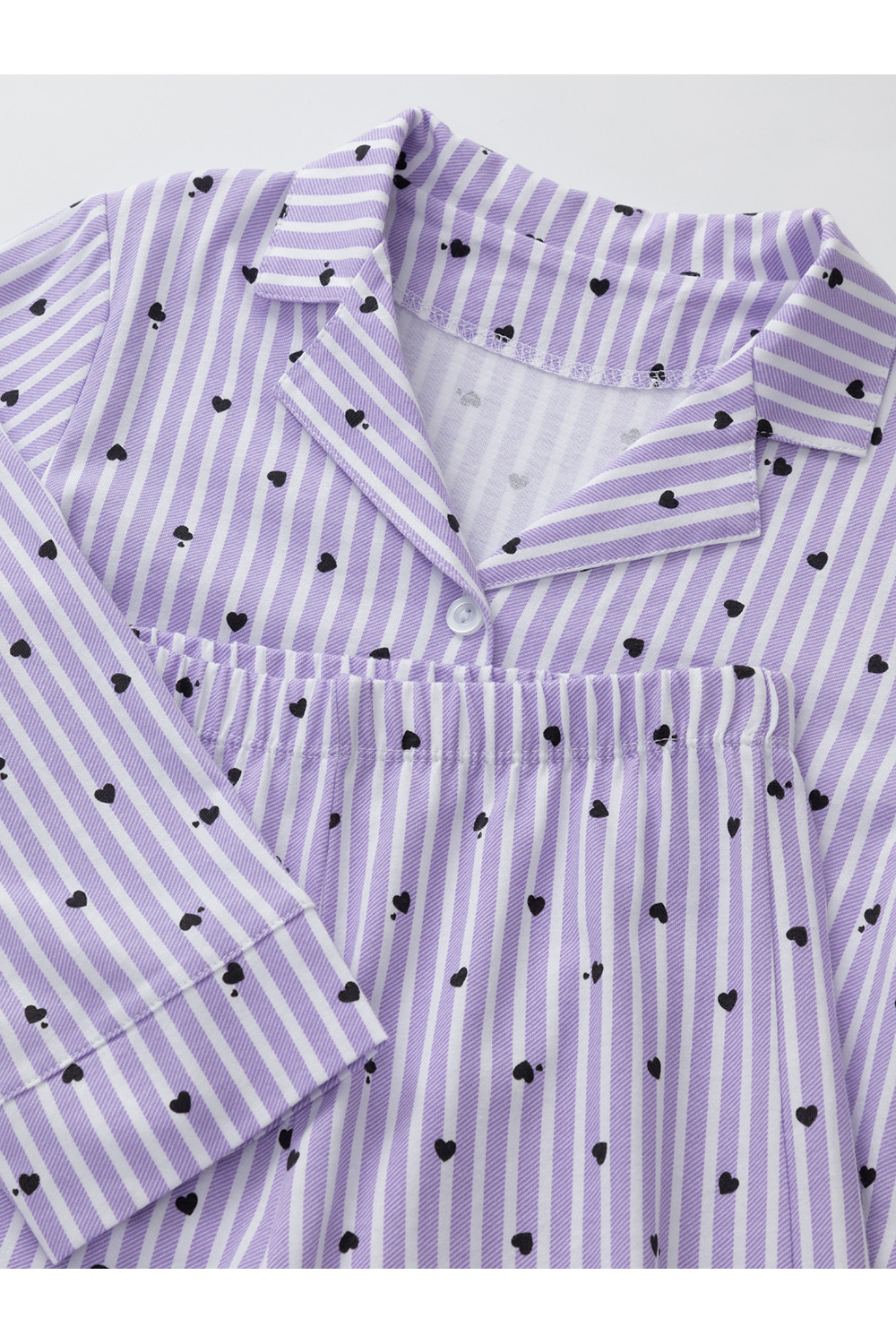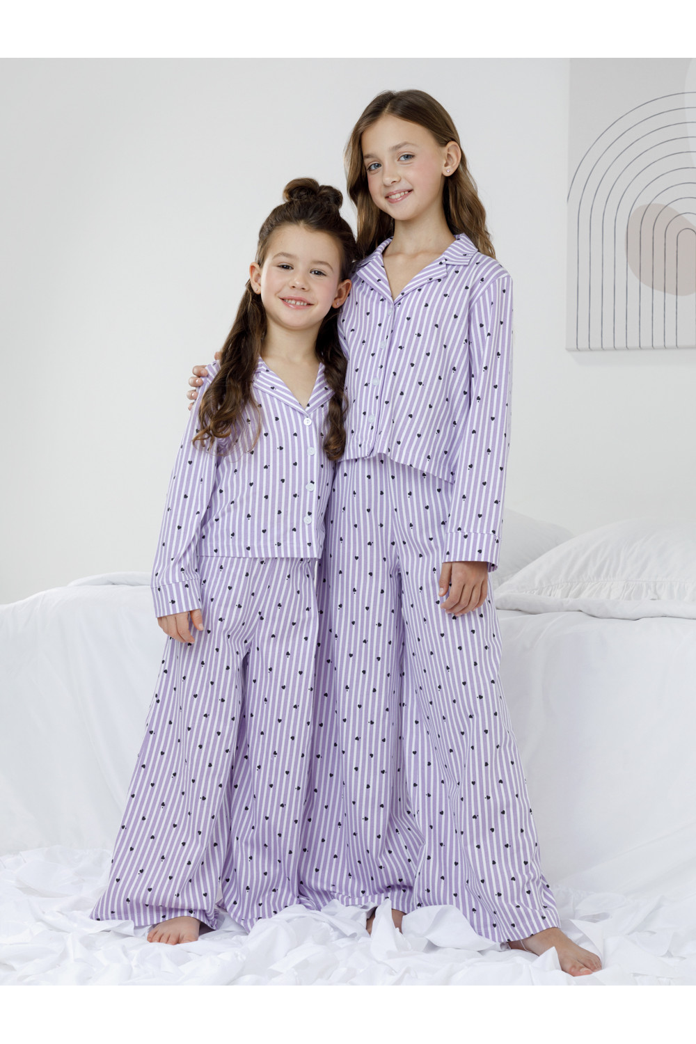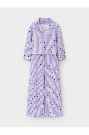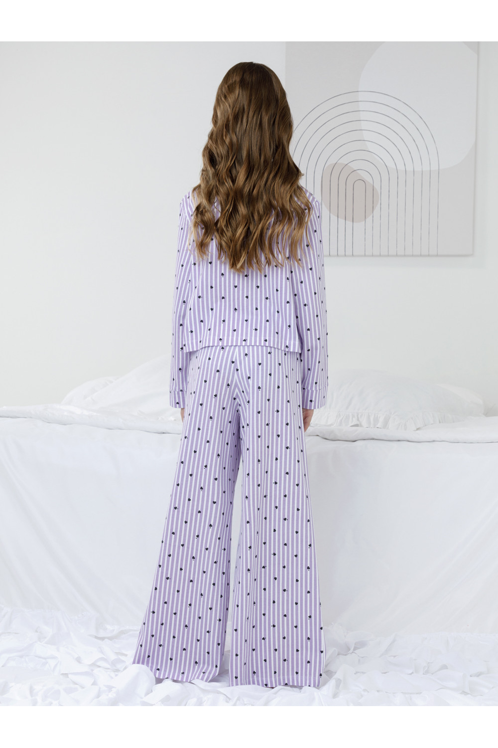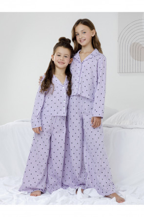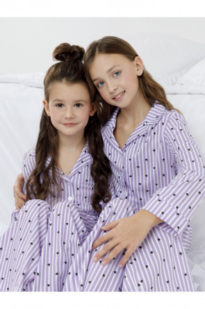 Трикотажная пижама из натурального хлопка для комфортного сна и отдыха. Рубашка на пуговицах с длинными рукавами и широкие брюки с мягкой эластичной резинкой в поясе. Набивной рисунок выполнен из стойких текстильных гипоаллергенных красителей. Изделие сохраняет цвет и форму после многократных стирок. Все трикотажные полотна производятся в соответствии с нормами швейцарского сертификата ЭкоТекс.