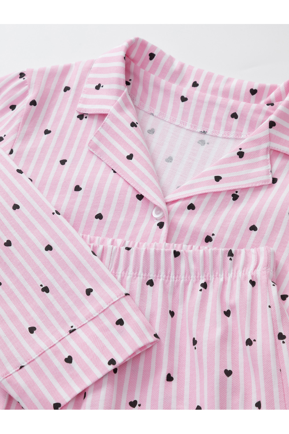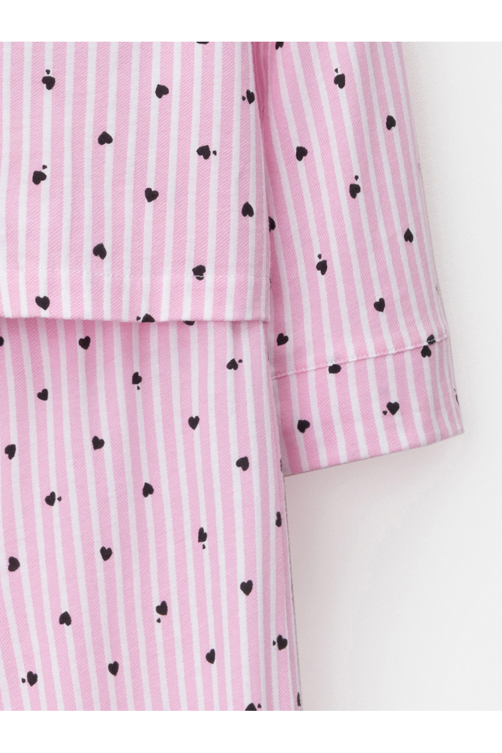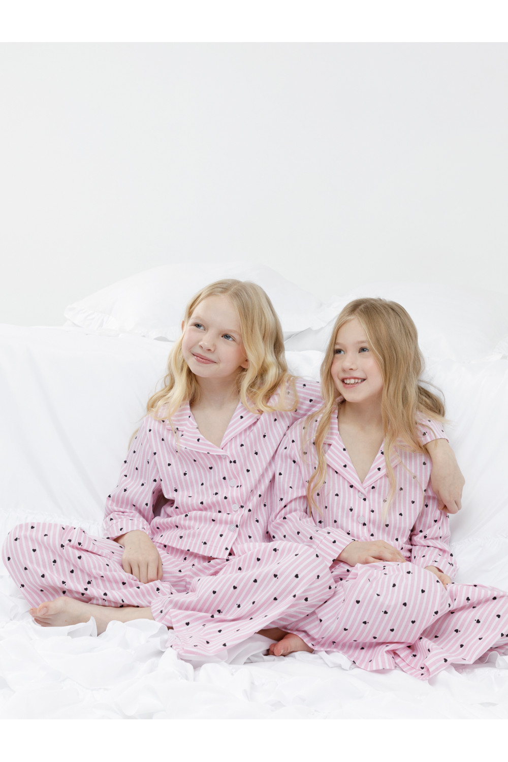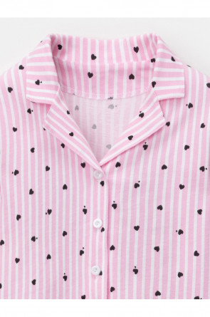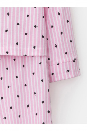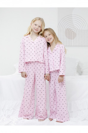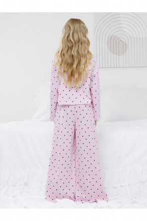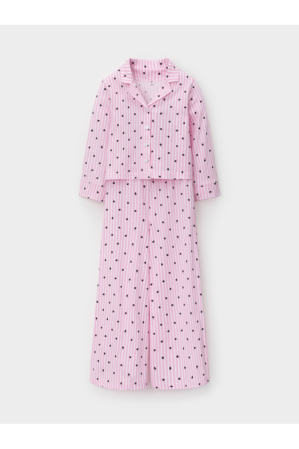 Трикотажная пижама из натурального хлопка для комфортного сна и отдыха. Рубашка на пуговицах с длинными рукавами и широкие брюки с мягкой эластичной резинкой в поясе. Набивной рисунок выполнен из стойких текстильных гипоаллергенных красителей. Изделие сохраняет цвет и форму после многократных стирок. Все трикотажные полотна производятся в соответствии с нормами швейцарского сертификата ЭкоТекс.