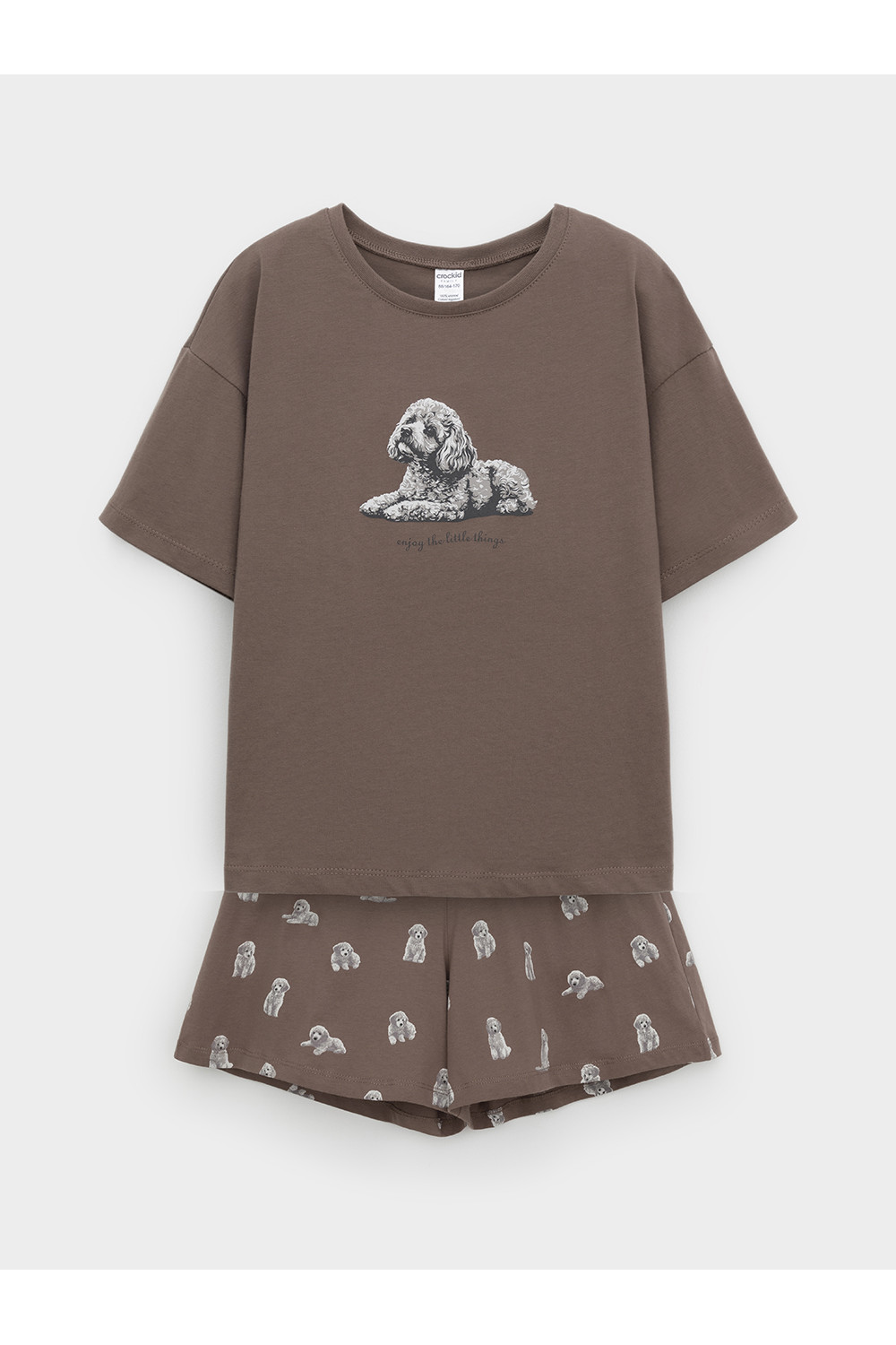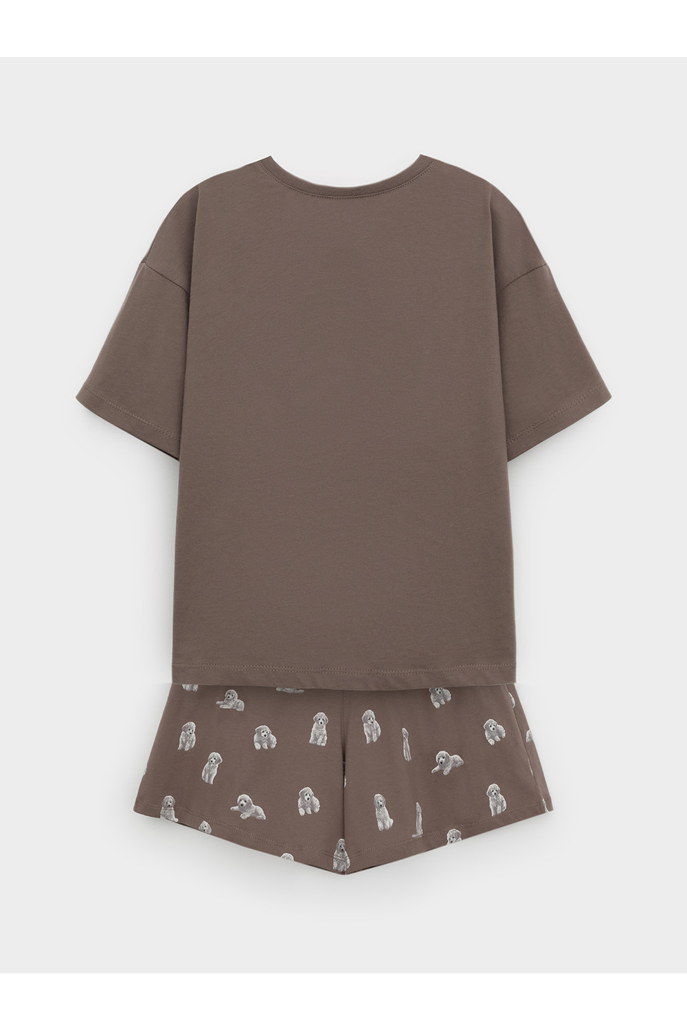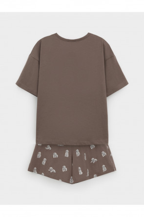 Комплект для комфортного сна и отдыха из трикотажного полотна с набивным рисунком и принтом. Футболка с короткими спущенными рукавами и шорты с мягкой эластичной резинкой в поясе, которые удобно садятся по фигуре. Гладкий материал приятен к телу, не теряет форму и позволяет коже дышать.