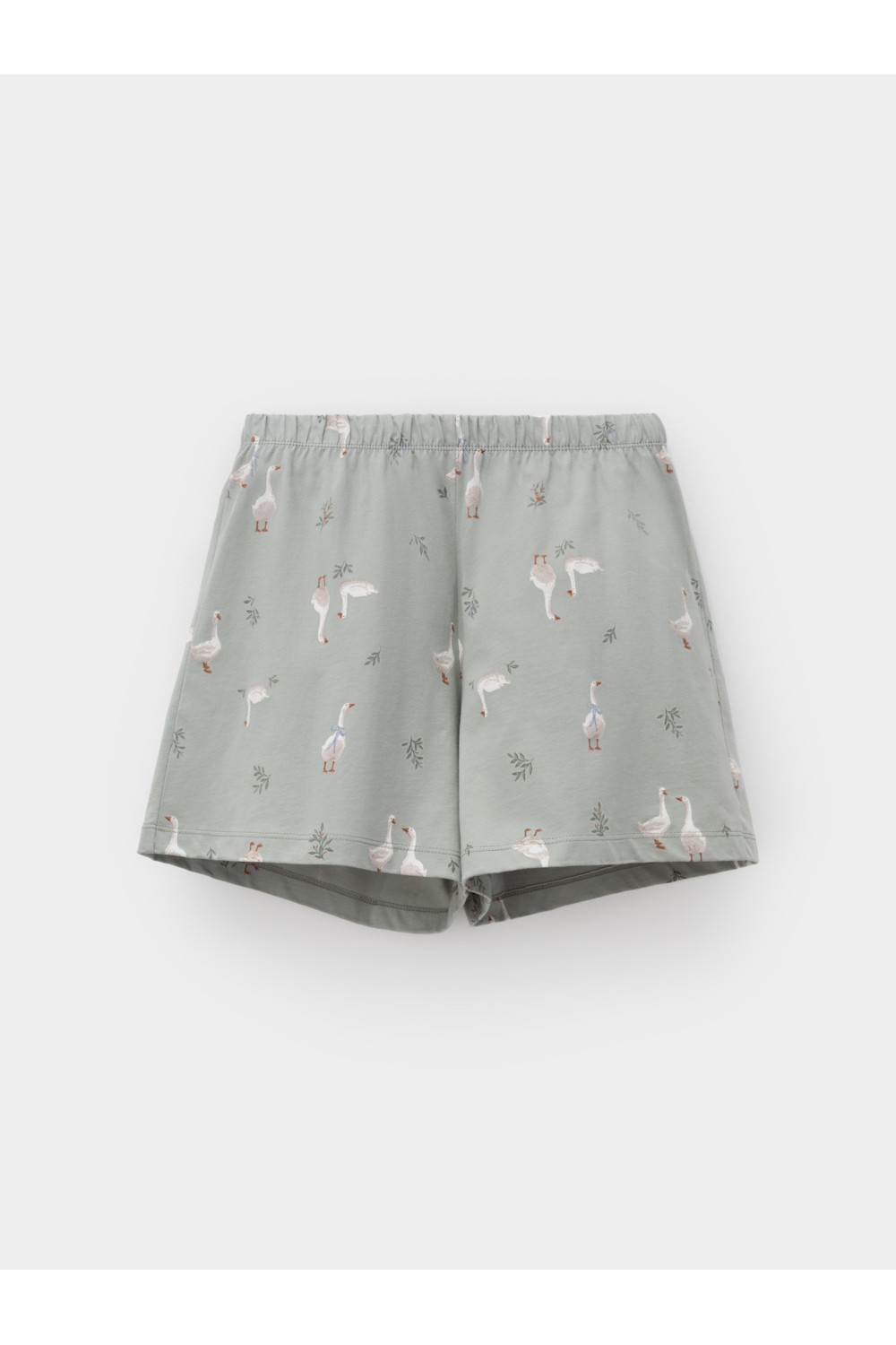Комплект для комфортного сна и отдыха из трикотажного полотна с набивным рисунком и принтом. Футболка с короткими спущенными рукавами и шорты с мягкой эластичной резинкой в поясе, которые удобно садятся по фигуре. Гладкий материал приятен к телу, не теряет форму и позволяет коже дышать.