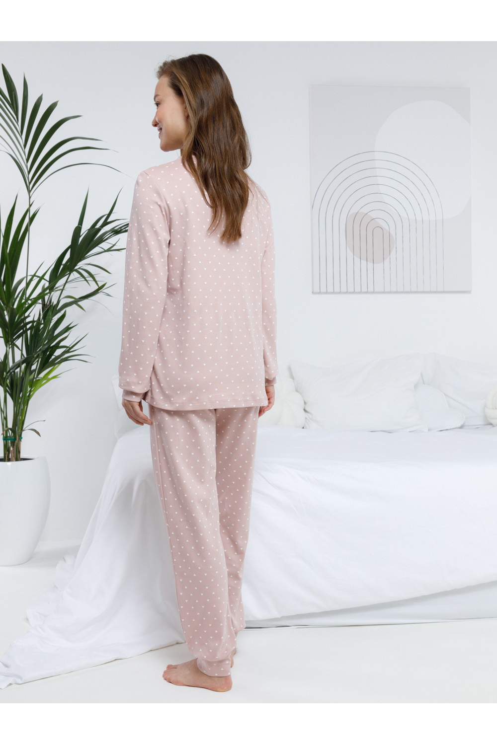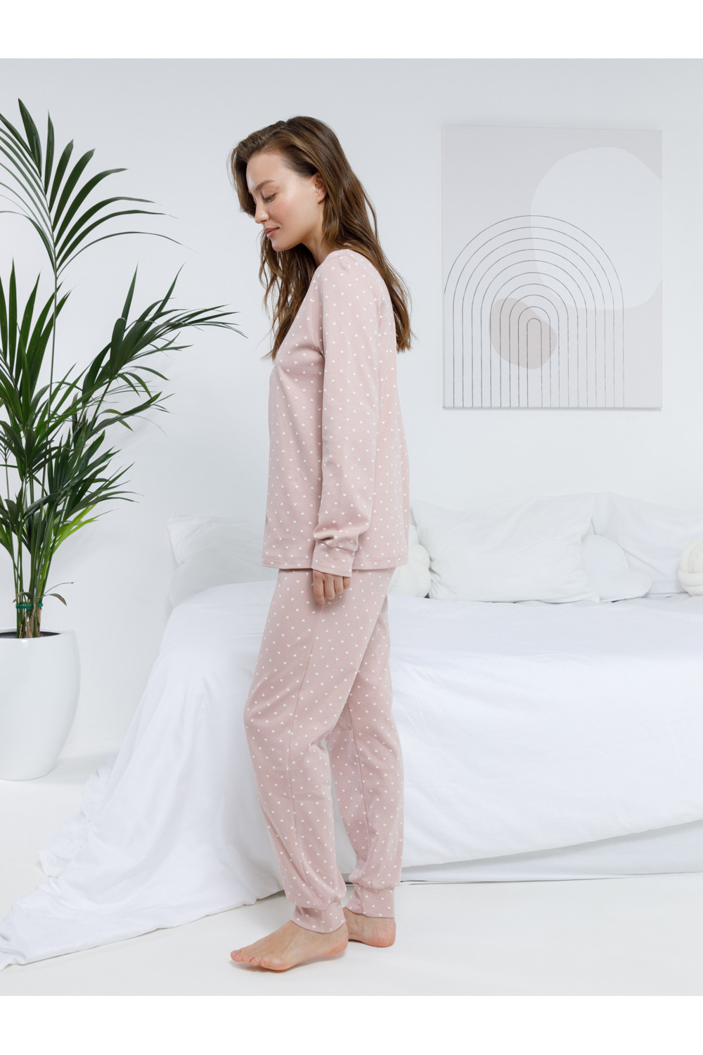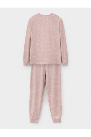 Комплект для комфортного сна и отдыха из трикотажного полотна с набивным рисунком и принтом. Джемпер с длинными втачными рукавами и брюки с мягкой эластичной резинкой в поясе, которые удобно садятся по фигуре. Гладкий материал приятен к телу, не теряет форму и позволяет коже дышать. На рукавах и по низу брюк мягкие манжеты.