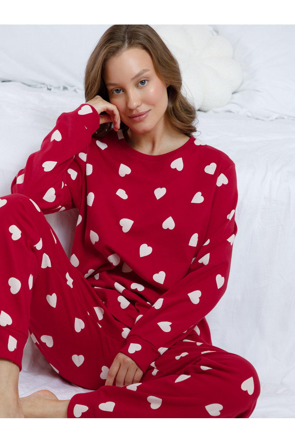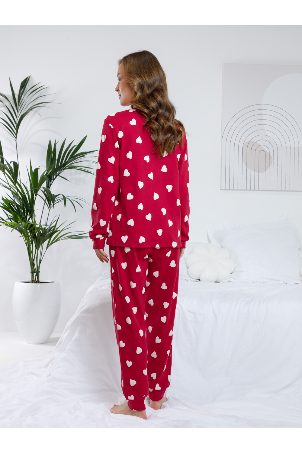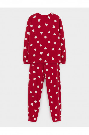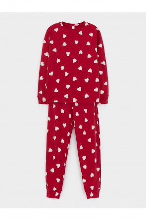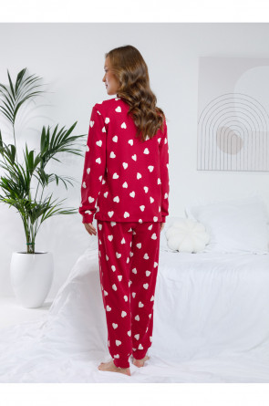 Комплект для комфортного сна и отдыха из трикотажного полотна с набивным рисунком. Джемпер с длинными втачными рукавами и брюки с мягкой эластичной резинкой в поясе, которые удобно садятся по фигуре. Гладкий материал приятен к телу, не теряет форму и позволяет коже дышать. На рукавах и по низу брюк мягкие манжеты.