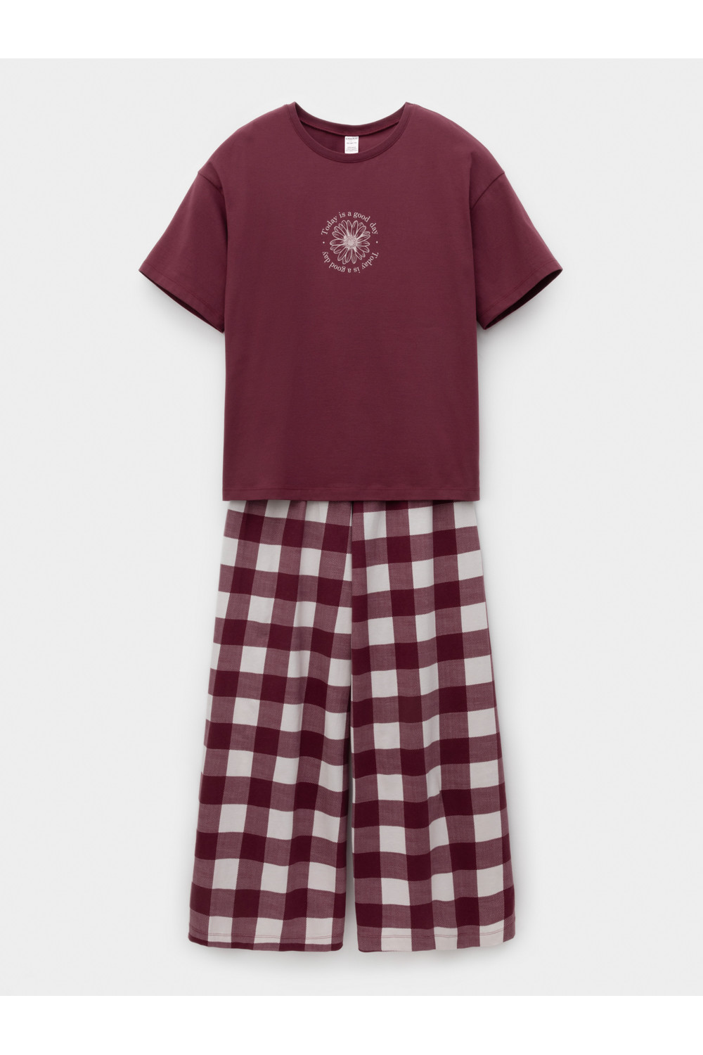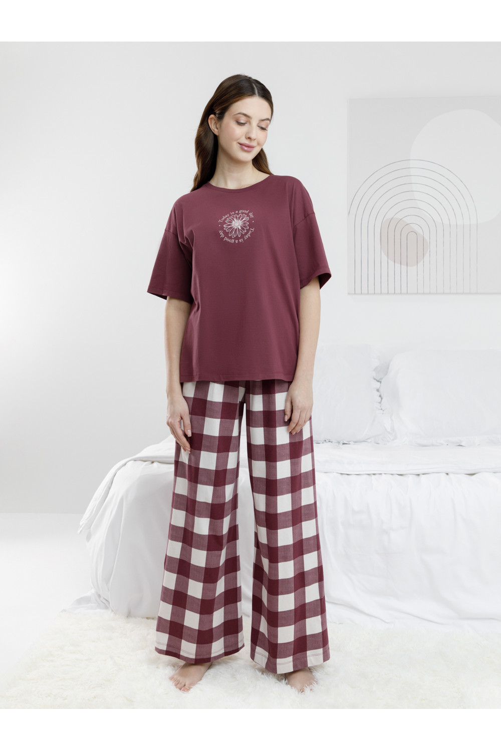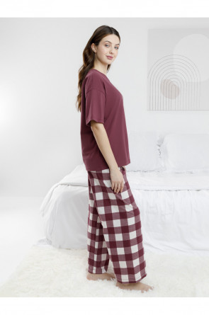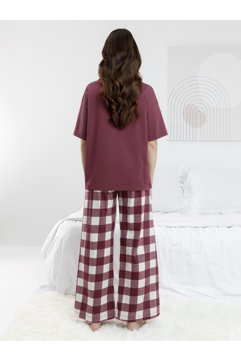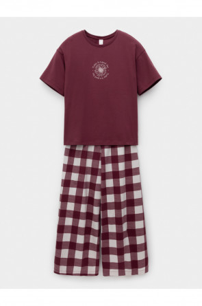 Комплект для комфортного сна и отдыха из гладкого трикотажного полотна. Футболка с короткими спущенными рукавами и прямые брюки с мягкой эластичной резинкой в поясе, которые удобно садятся по фигуре. Лёгкий материал приятен к телу, не теряет форму и позволяет коже дышать. Все трикотажные полотна производятся в соответствии с нормами швейцарского сертификата ЭкоТекс.
