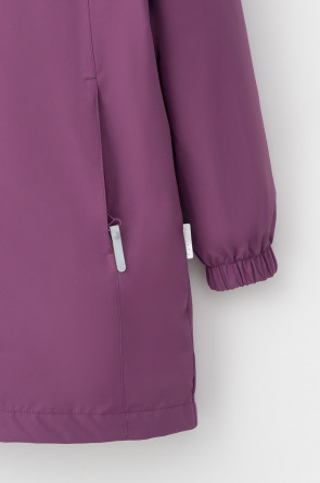 Плащ без утеплителя. Рекомендованный температурный режим: от +15° и выше без поддевы и от +8° и выше с поддевой. Верхняя мембранная ткань 1000/1000 с тефлоновым покрытием отталкивает воду и грязь и обладает «дышащими» свойствами. Подкладка выполнена из 65% полиэстера и 35% хлопка. Застёгивается на молнию с двумя замками, предусмотрена защита подбородка. Дополнительная ветрозащитная планка внутри. Удлинённая спинка скруглена. Капюшон не снимается, эластичный шнур утягивается и обеспечивает плотное прилегание к голове. Эластичные манжеты на резинке. Боковые карманы на молнии. Светоотражающие элементы служат для безопасности в тёмное время суток.