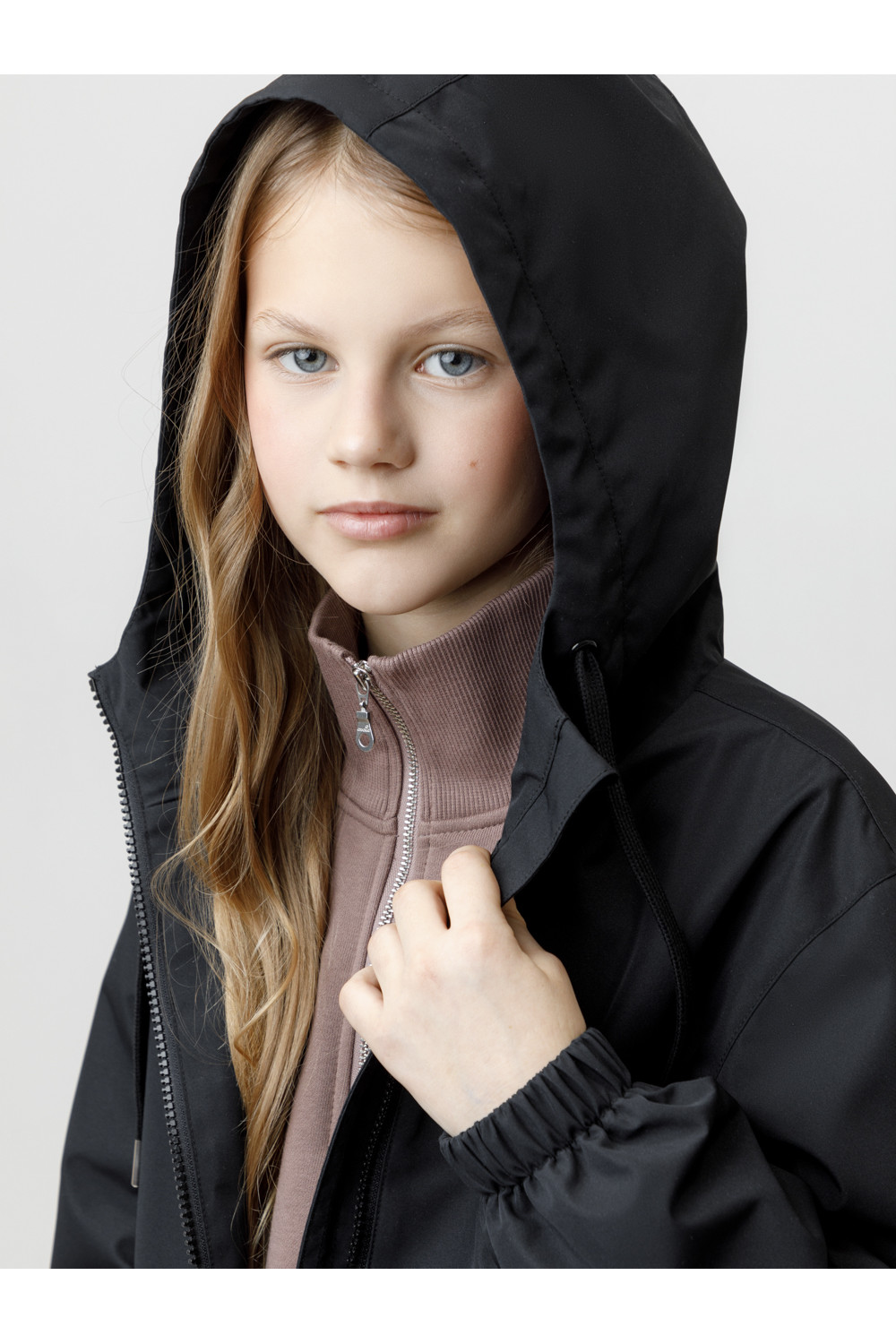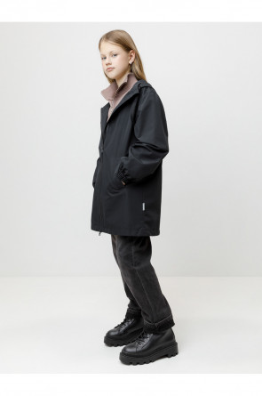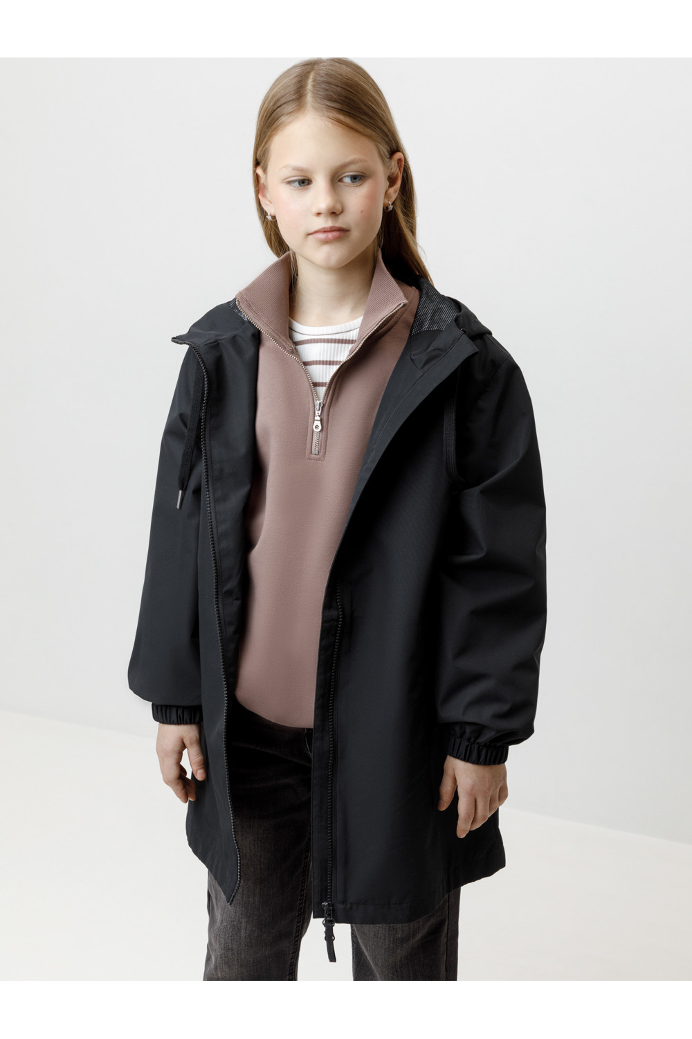 Плащ для девочки из мембранной ткани с дополнительной тефлоновой обработкой. Верхняя мембранная ткань 1000/1000 с тефлоновым покрытием отталкивает воду и грязь и обладает «дышащими» свойствами. Подкладка выполнена из сетки. У изделия предусмотрена защита подбородка. Несъёмный капюшон регулируется с помощью шнурка. Низ рукавов имеет эластичную резинку для лучшего прилегания. Внутри изделие регулируется по талии с помощью эластичного шнурка со стопперами. По бокам два кармана. Во всех изделиях верхнего ассортимента для безопасности ребёнка предусмотрены светоотражающие элементы.