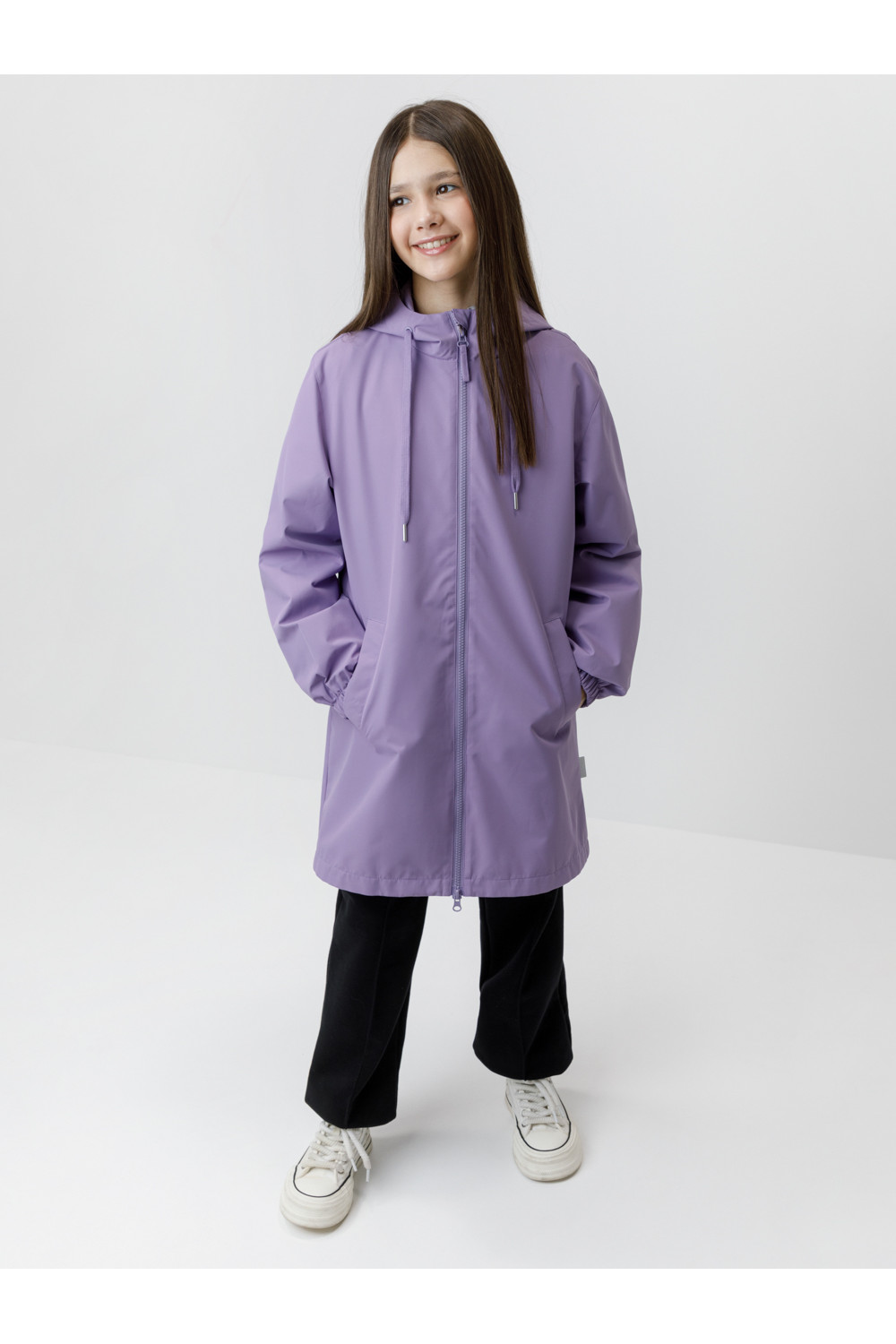 Плащ для девочки из мембранной ткани с дополнительной тефлоновой обработкой. Верхняя мембранная ткань 1000/1000 с тефлоновым покрытием отталкивает воду и грязь и обладает «дышащими» свойствами. Подкладка выполнена из сетки. У изделия предусмотрена защита подбородка. Несъёмный капюшон регулируется с помощью шнурка. Низ рукавов имеет эластичную резинку для лучшего прилегания. Внутри изделие регулируется по талии с помощью эластичного шнурка со стопперами. По бокам два кармана. Во всех изделиях верхнего ассортимента для безопасности ребёнка предусмотрены светоотражающие элементы.