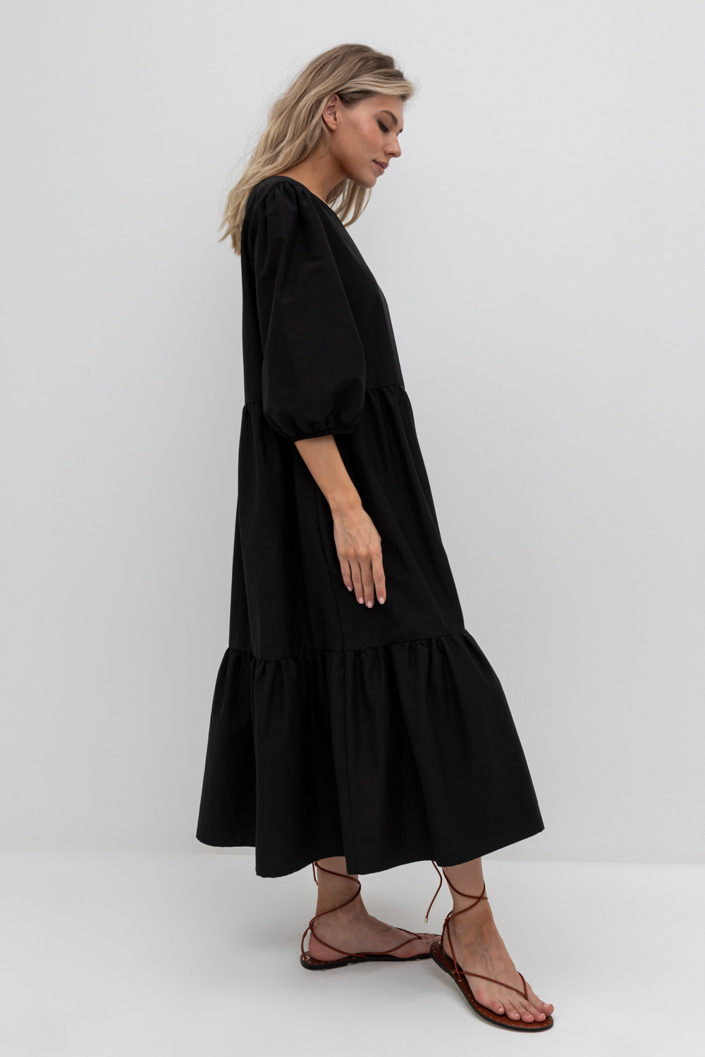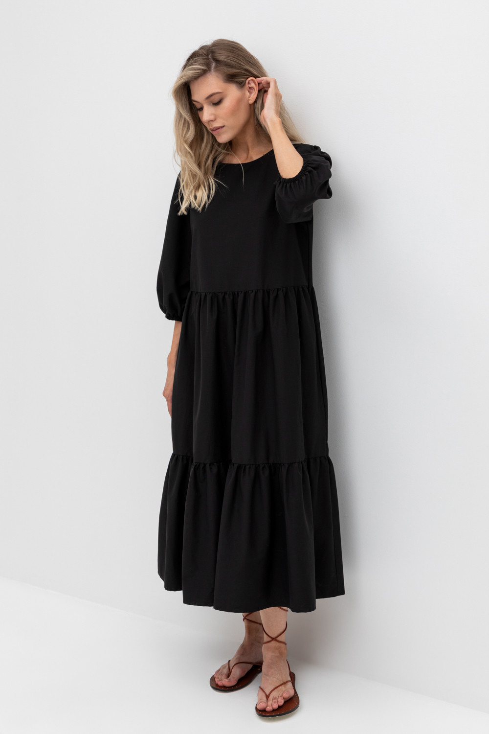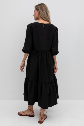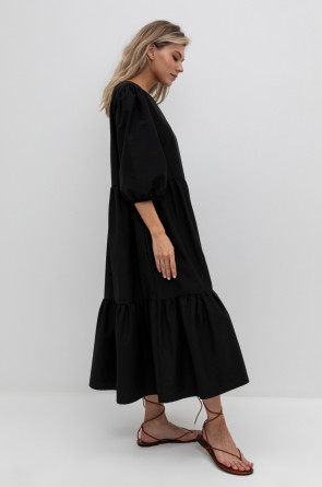 Удлиненное комфортное платье с воланом из смесового хлопка с добавлением эластана.