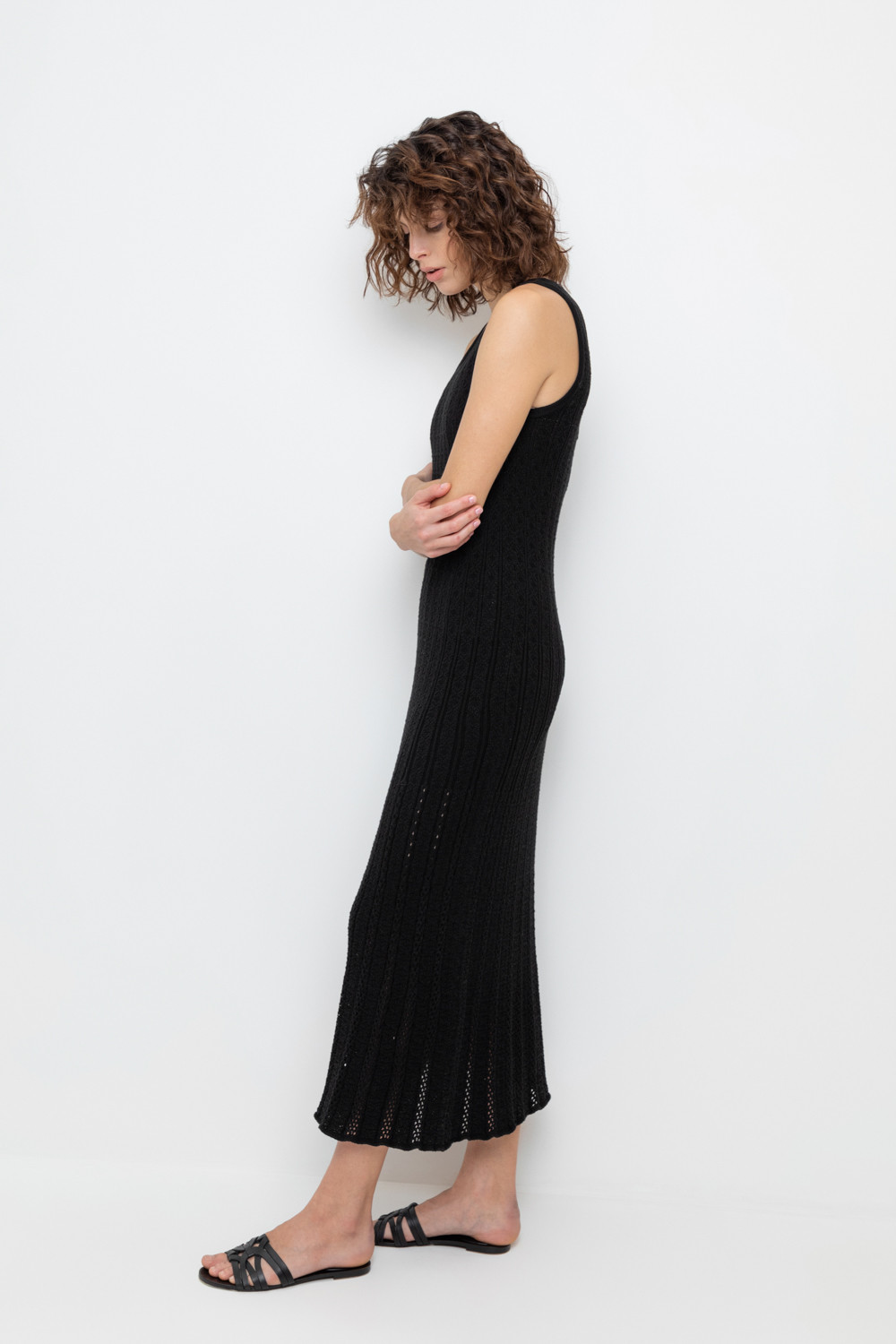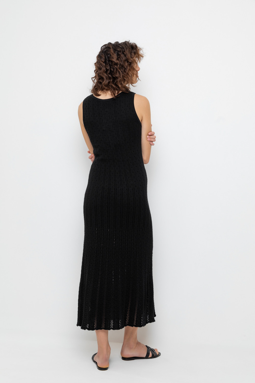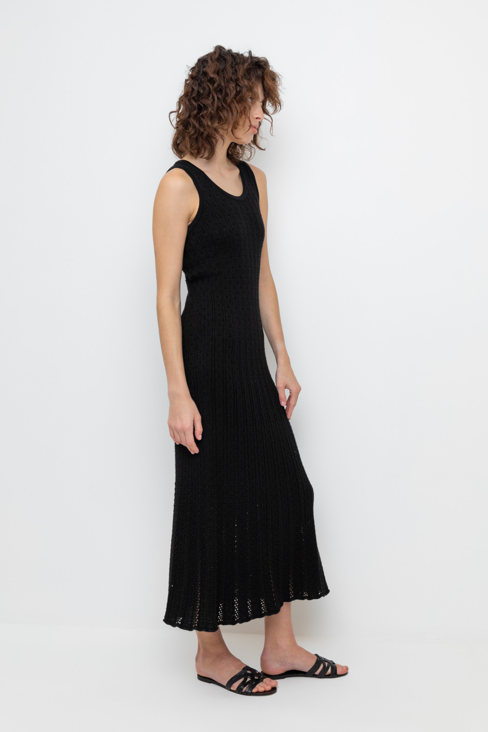 Вязаное платье макси с ажурной юбкой. Состав 50% хлопок, 50% акрил. Благодаря акрилу в составе изделие не пилингуется.