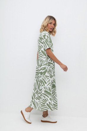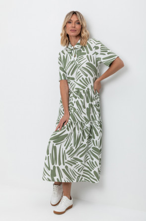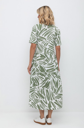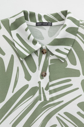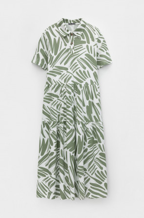 Женское платье из набивного пике с воротником поло, короткими рукавами и широкими оборками . Все трикотажные полотна производятся в соответствии с нормами Швейцарского сертификата ЭкоТекс. Сделано в России