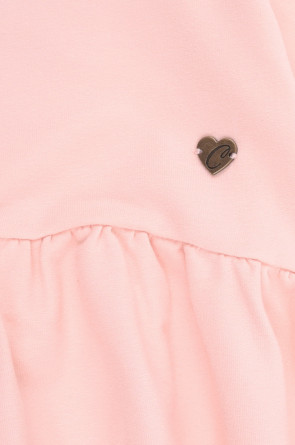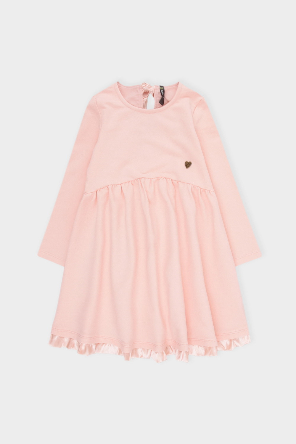 Отрезное платье с длинными рукавами из петельчатого футера и сборкой по талии. Для удобства при одевании завязывается на спинке на ленту.
