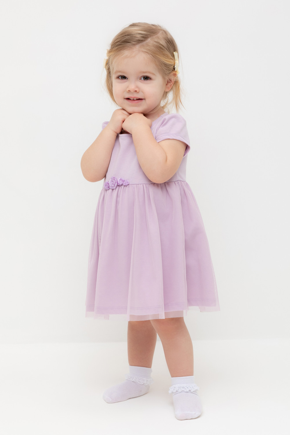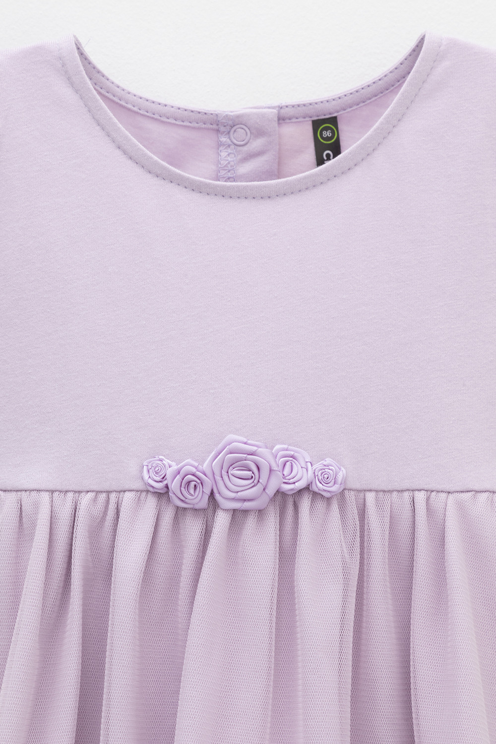 Нарядное платье с боди для девочки. Изготовлено из высококачественного хлопкового трикотажа супрем. Поверх юбки лёгкая сетка. Удобные застёжки расположены на спинке и по низу изделия. Спереди украшено декоративными розочками. Изделие сохраняет цвет и форму после многократных стирок.