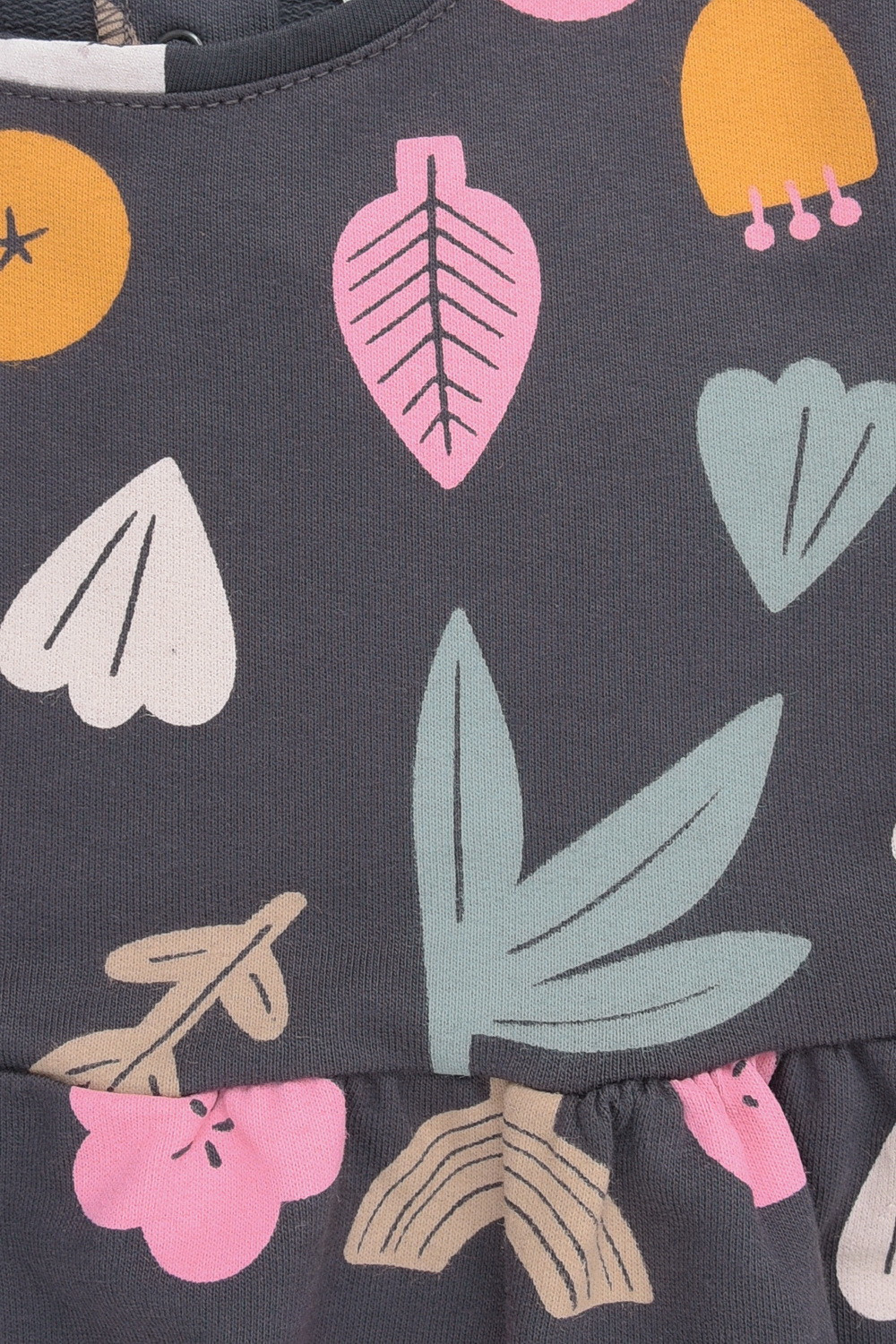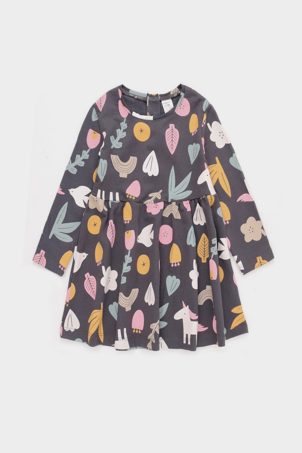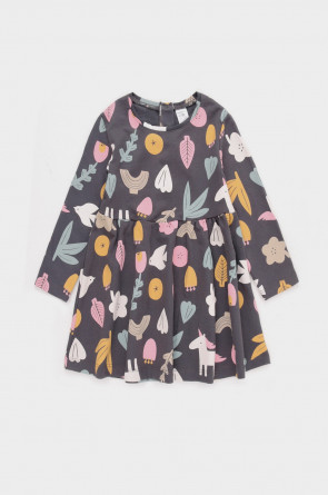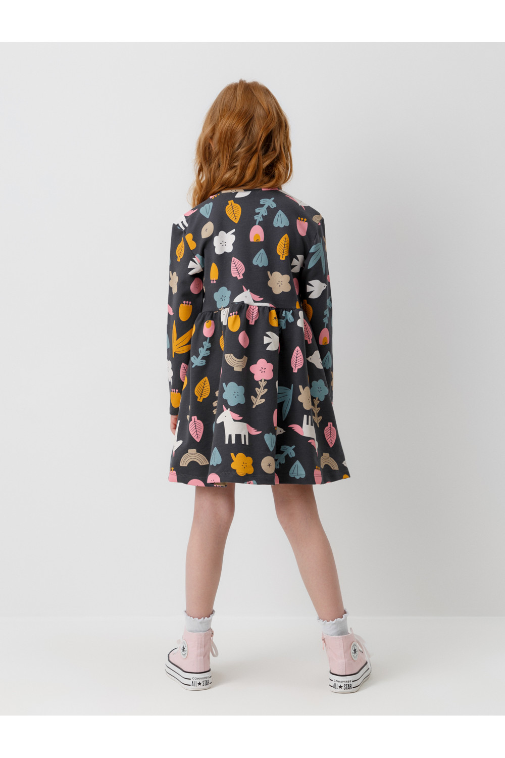 Платье для девочки в цветочный набивной рисунок из петельчатого футера, произведенного из натурального хлопка. У изделия длинные рукава и сборка по талии. Для удобства в размерах 92 и 98 имеется застежка на кнопки на спинке. Оригинальная набивка выполнена из стойких текстильных красителей. Платье сохраняет цвет и форму после многократных стирок. Платье с цветочной набивкой идеально подходит на каждый день.