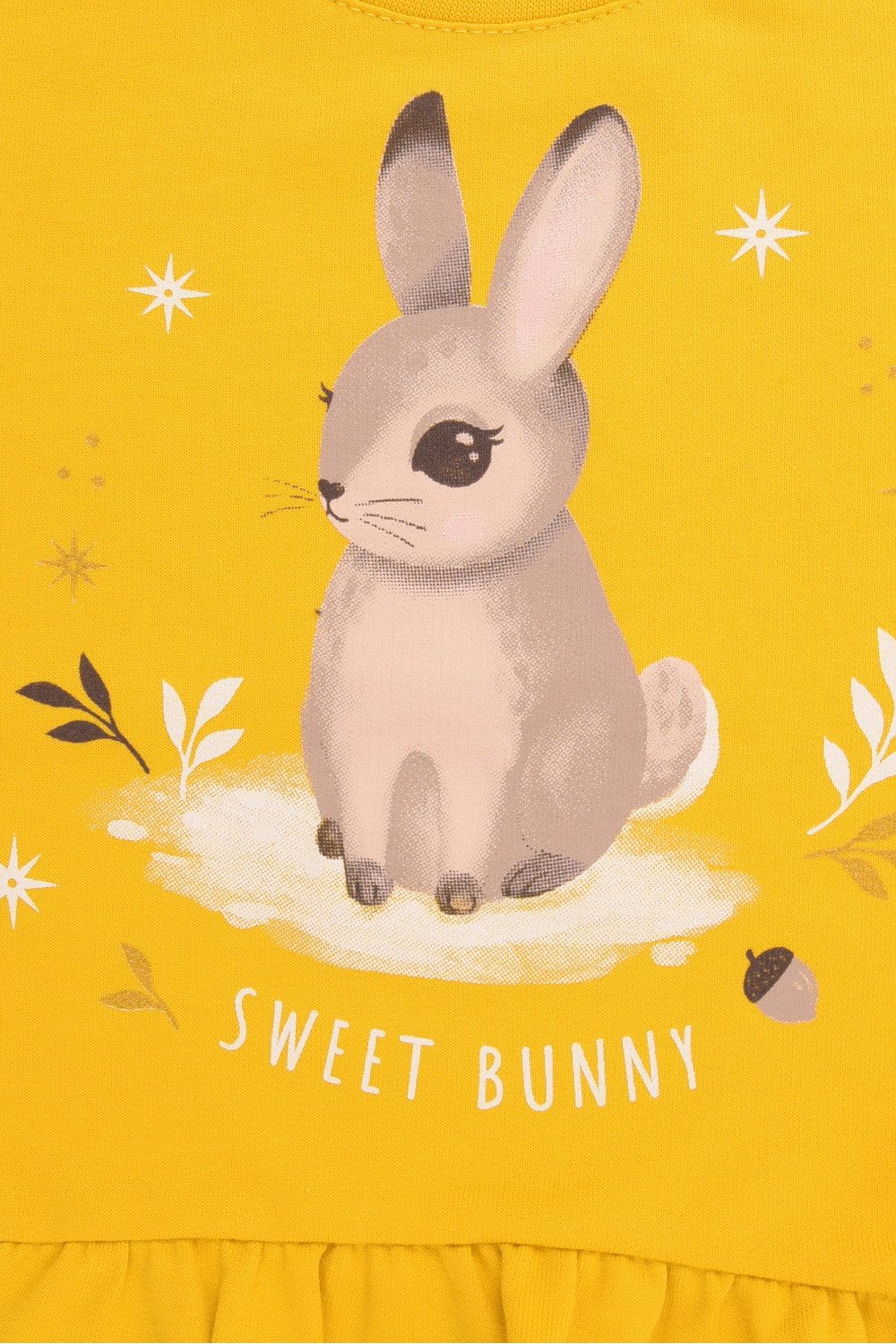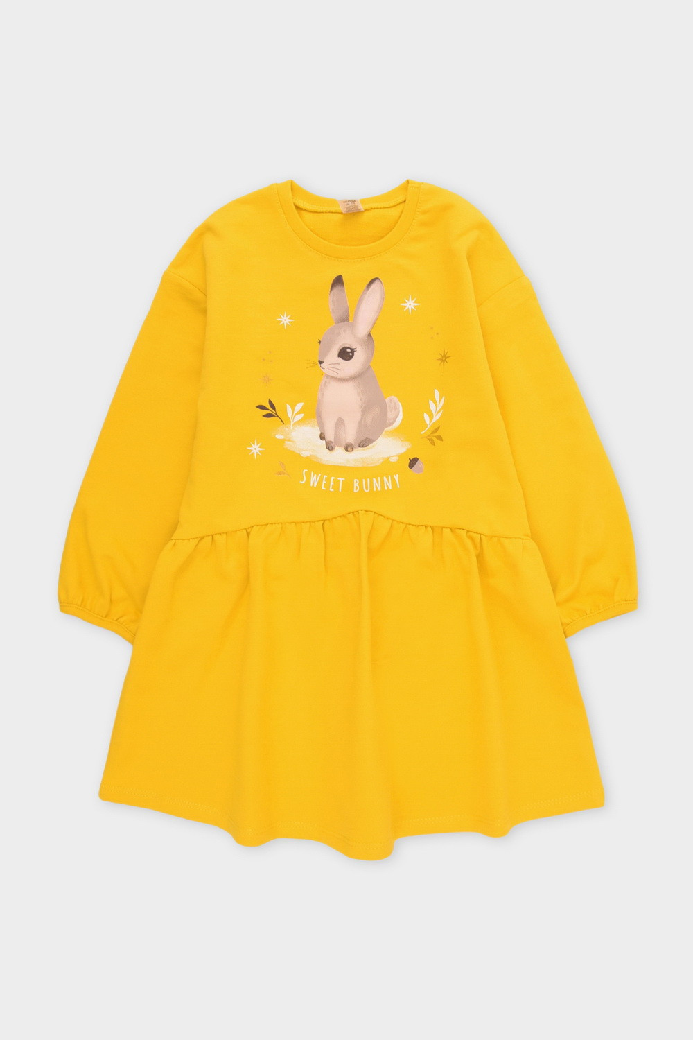 Трикотажное платье с длинными рукавами из высококачественного хлопка. Спереди принт. Изделие сохраняет цвет и форму после многократных стирок.