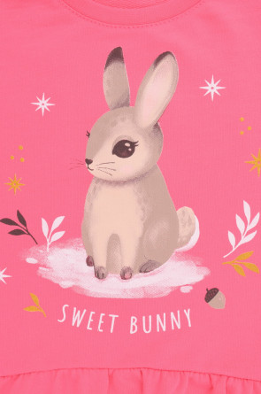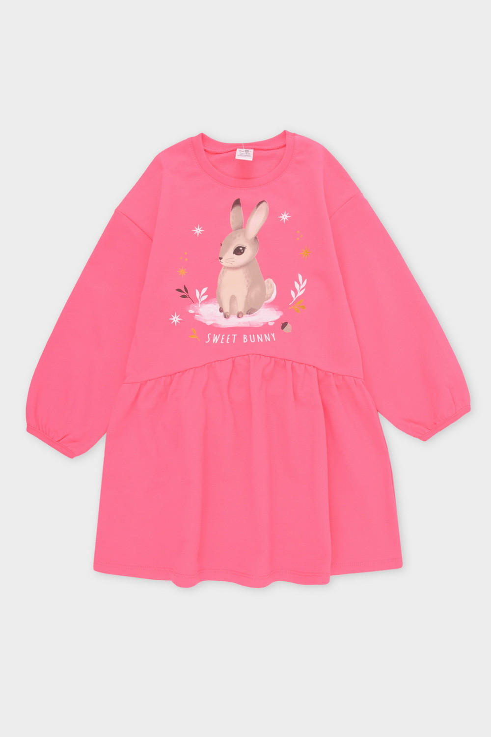 Трикотажное платье с длинными рукавами из высококачественного хлопка. Спереди принт. Изделие сохраняет цвет и форму после многократных стирок.