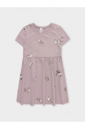 Лёгкое платье для девочки с короткими рукавами из высококачественного хлопка. Оригинальная набивка выполнена из стойких текстильных гипоаллергенных красителей. Изделие сохраняет цвет и форму после многократных стирок.