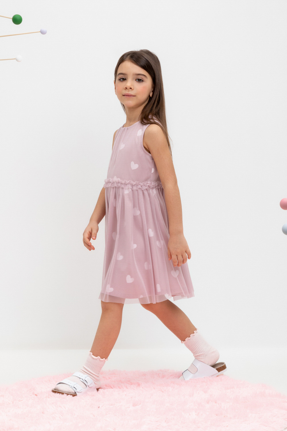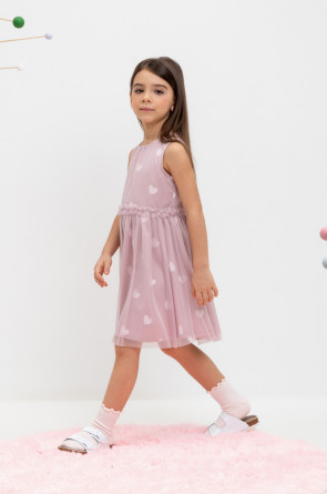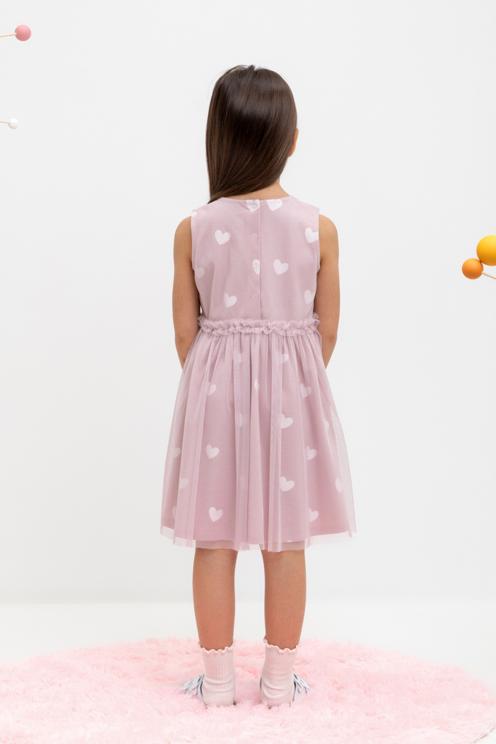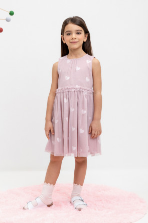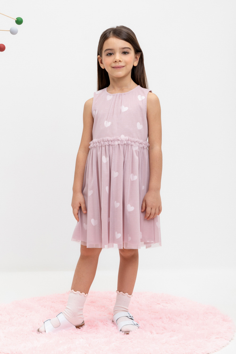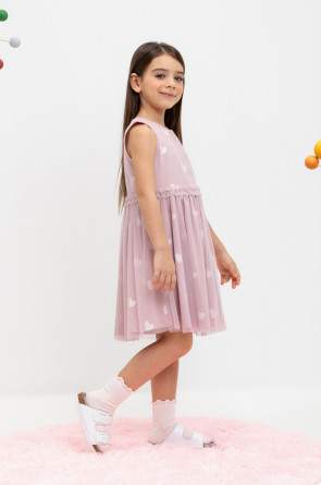 Нарядное летнее платье для девочки с подкладом из трикотажного полотна. Верх изделия выполнен из сетки.
