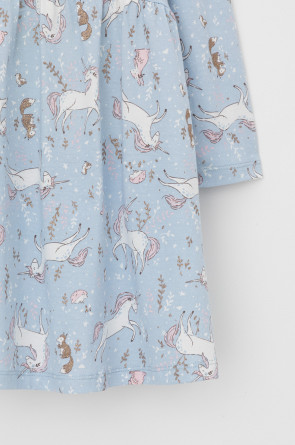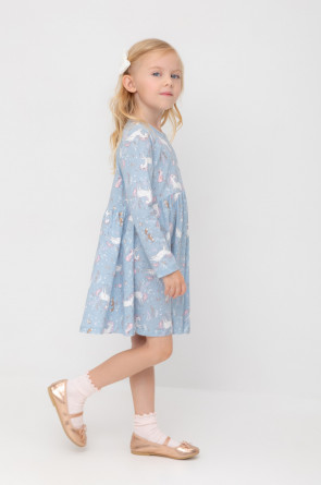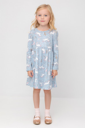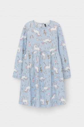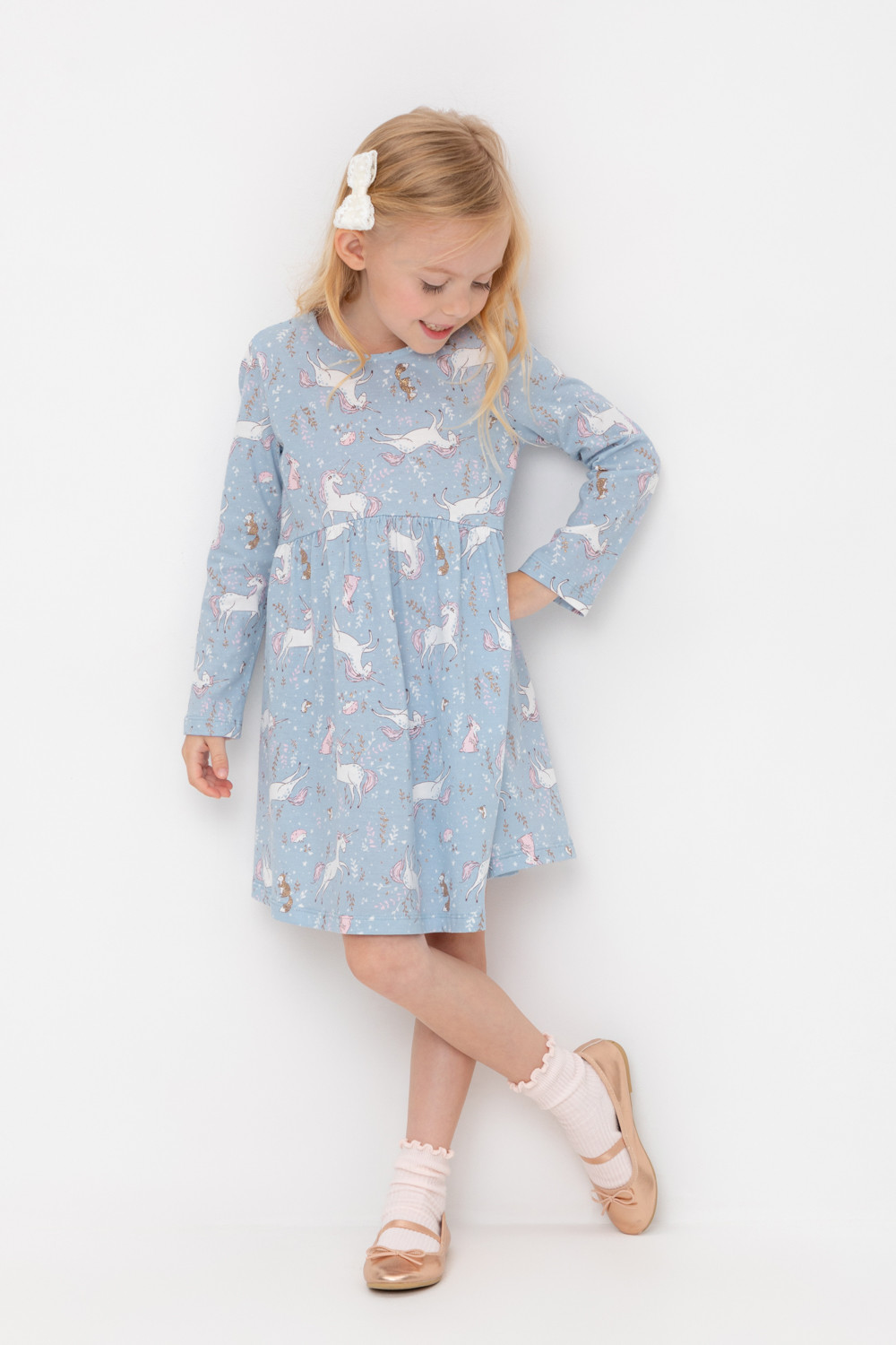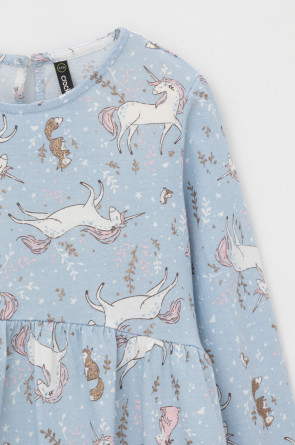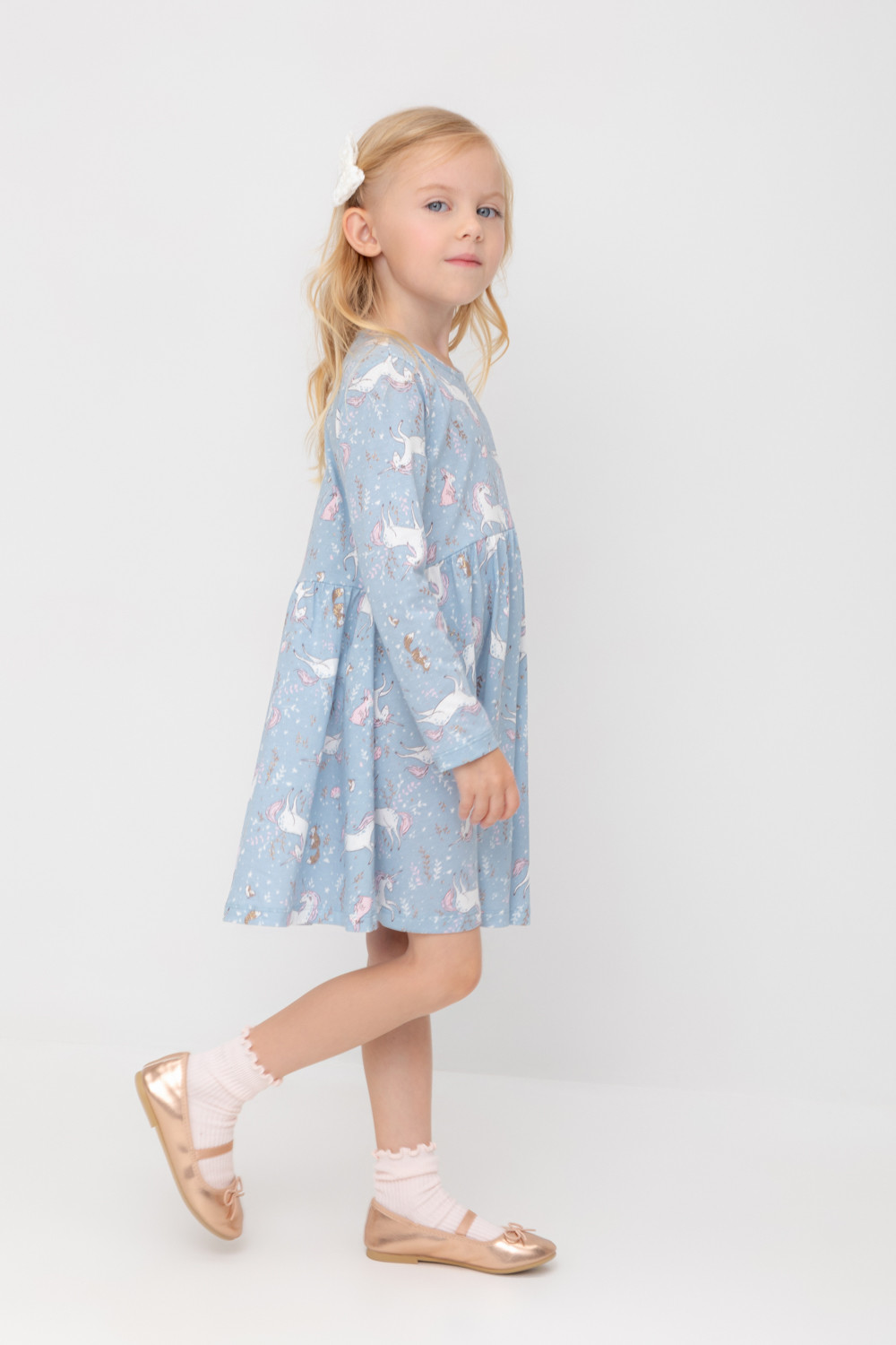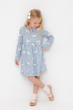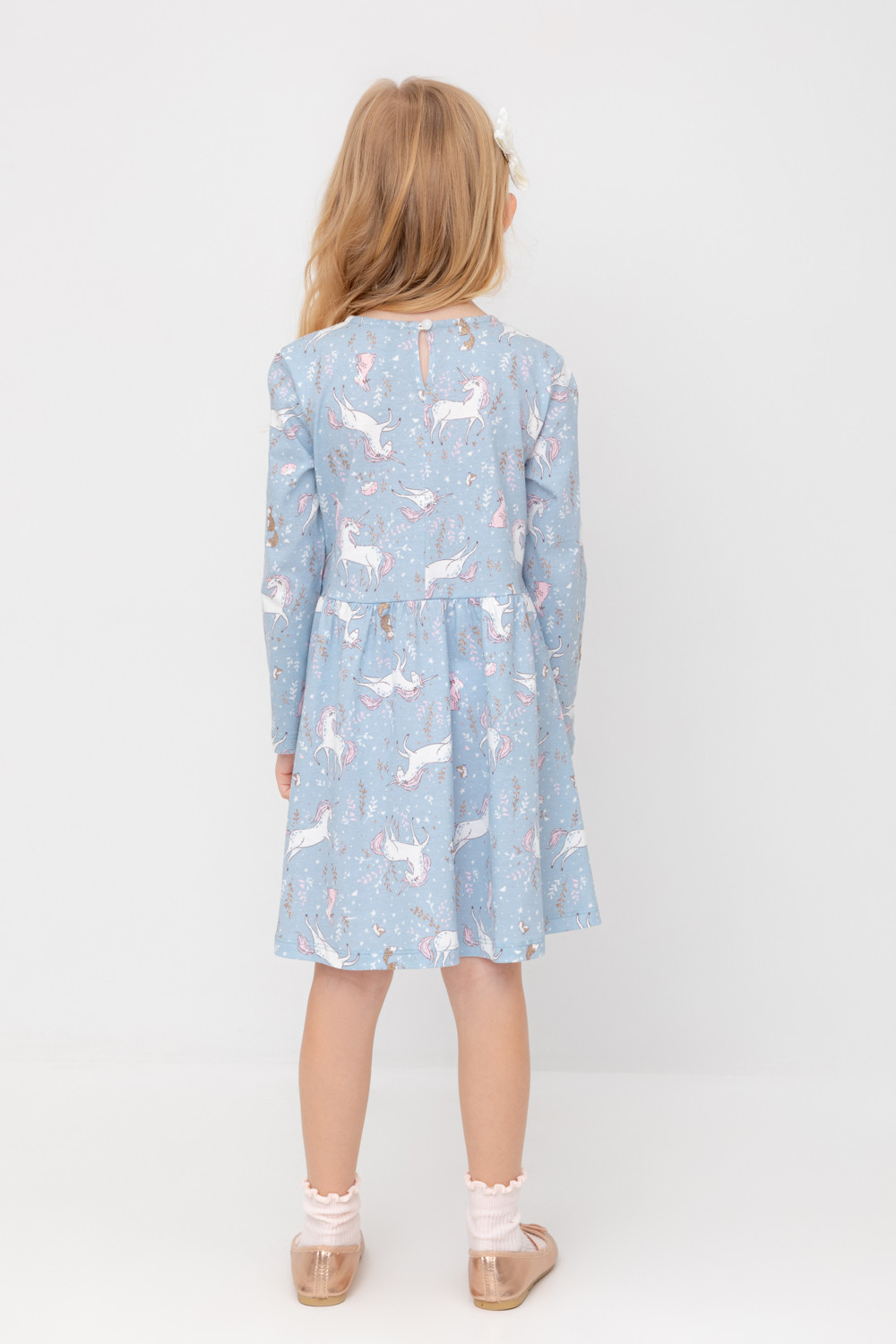 Трикотажное платье для девочки из высококачественного хлопка. Оригинальная набивка выполнена из стойких текстильных гипоаллергенных красителей. Изделие сохраняет цвет и форму после многократных стирок