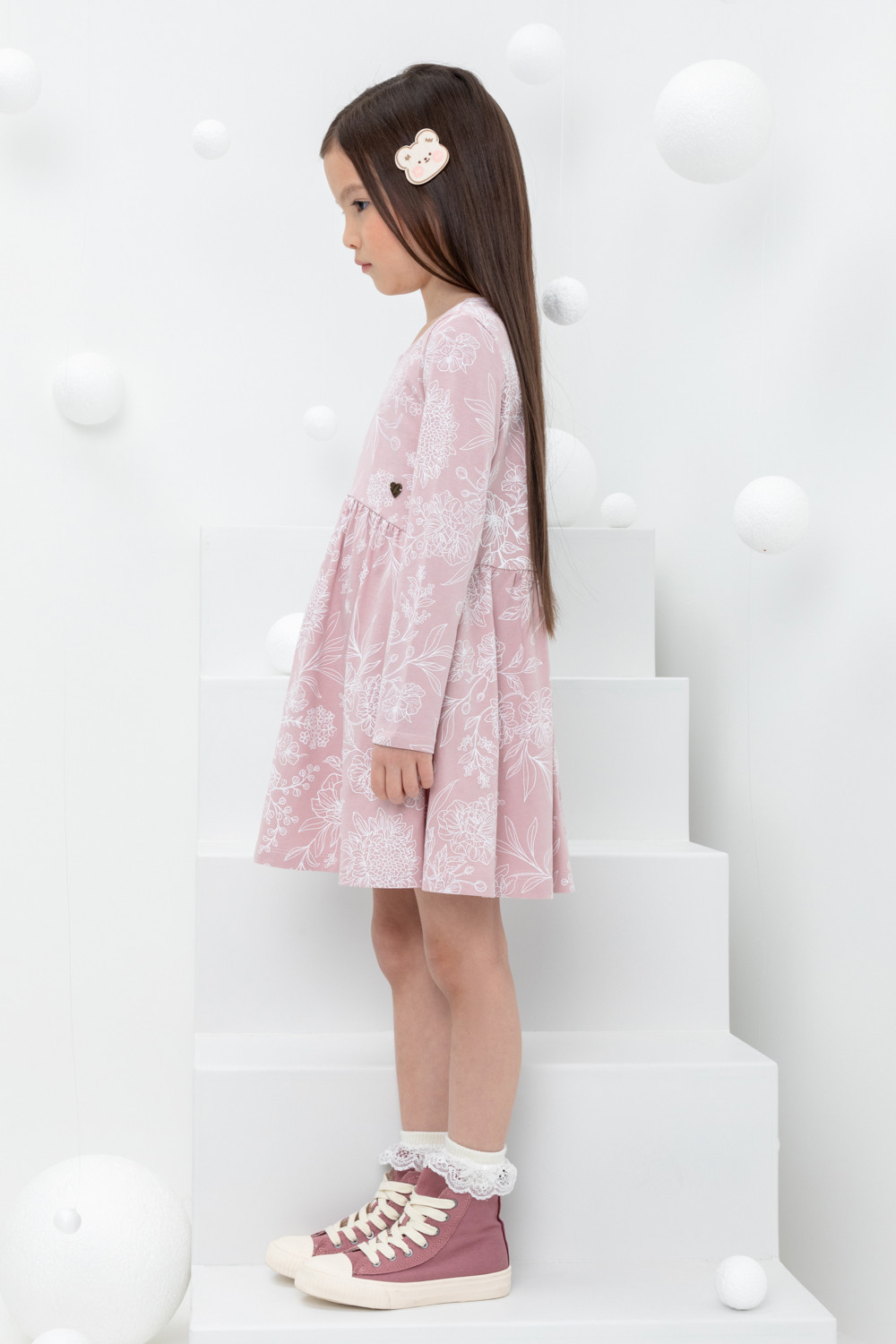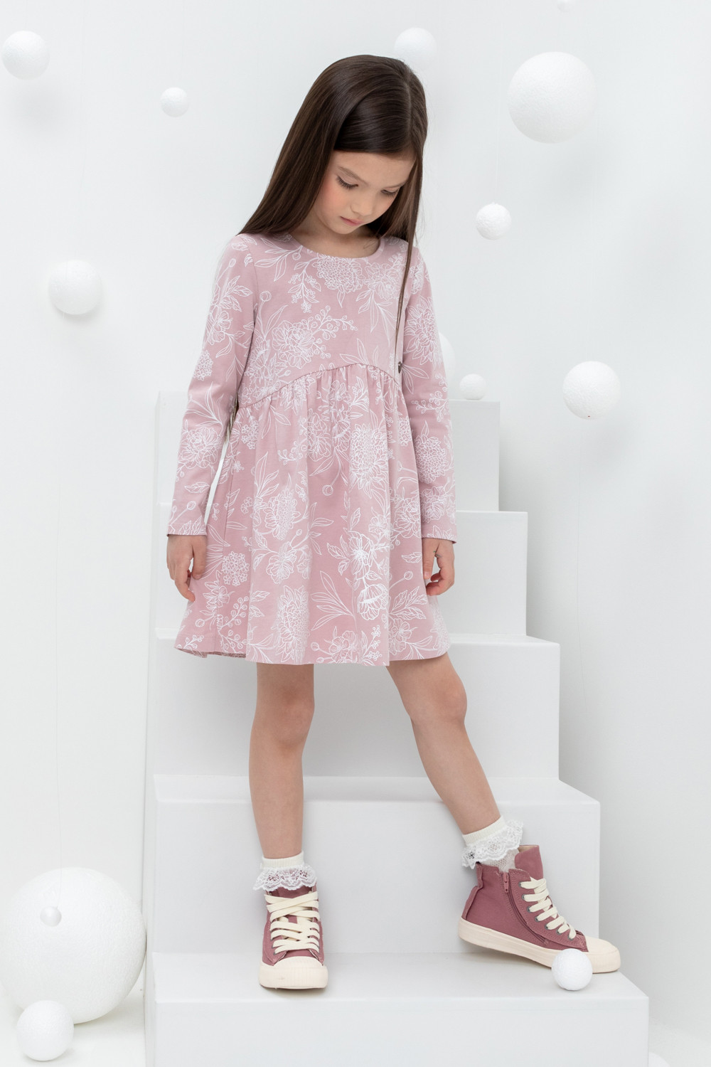 Лёгкое трикотажное платье с длинными рукавами из высококачественного хлопка. Оригинальная набивка выполнена из стойких текстильных гипоаллергенных красителей. Изделие сохраняет цвет и форму после многократных стирок.