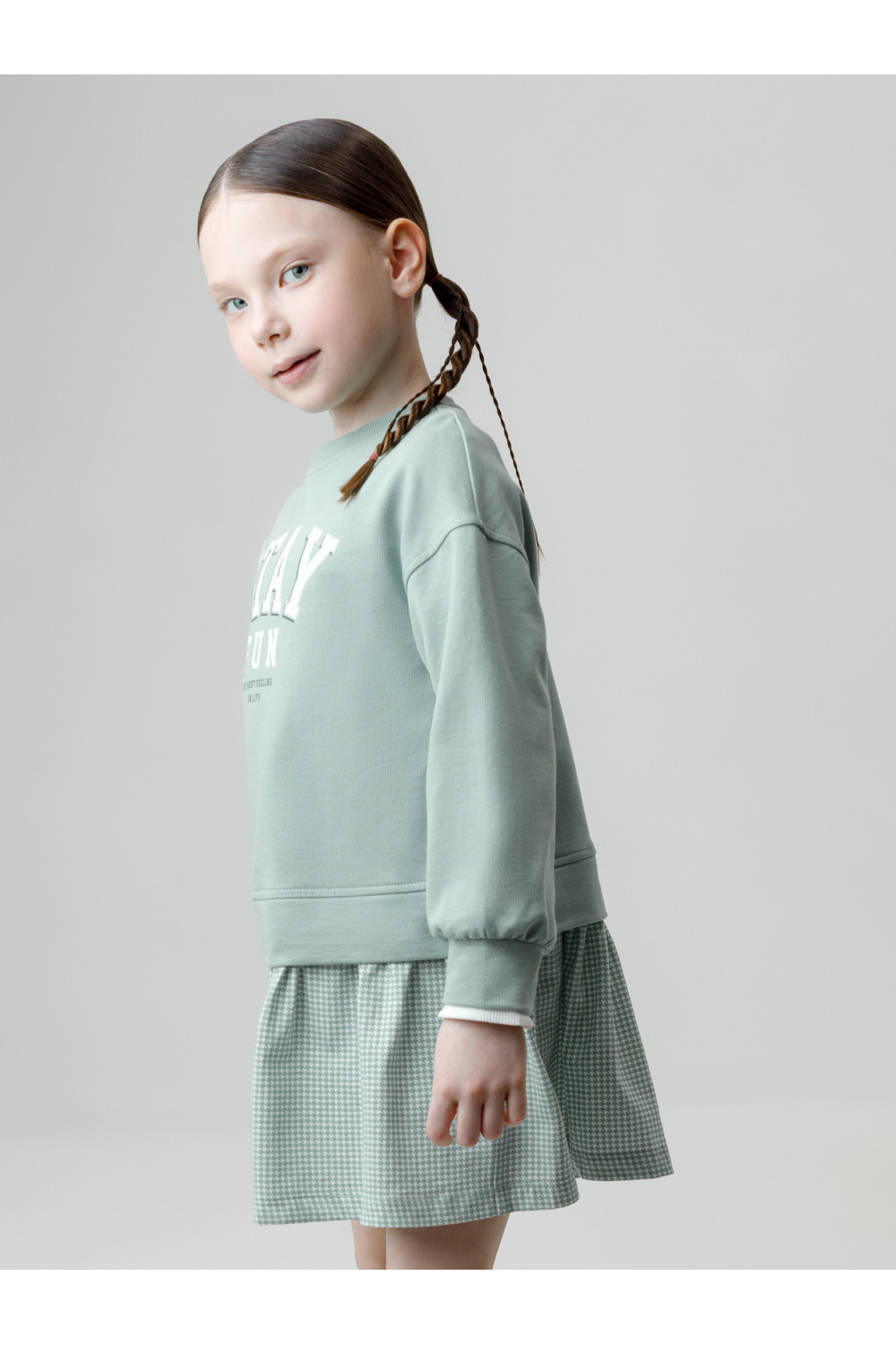 Платье для девочки с длинными рукавами. Изготовлено из мягкого петельчатого трикотажа и украшено оборкой из гладкого материала супрем. Для удобства одевания на спинке застёгивается на кнопки в размерах 92 и 98. Платье сохраняет форму и стойкий цвет после многочисленных стирок и идеально подходит на каждый день. Оригинальный принт выполнен из стойких текстильных гипоаллергенных красителей. Все трикотажные полотна производятся в соответствии с нормами швейцарского сертификата ЭкоТекс.