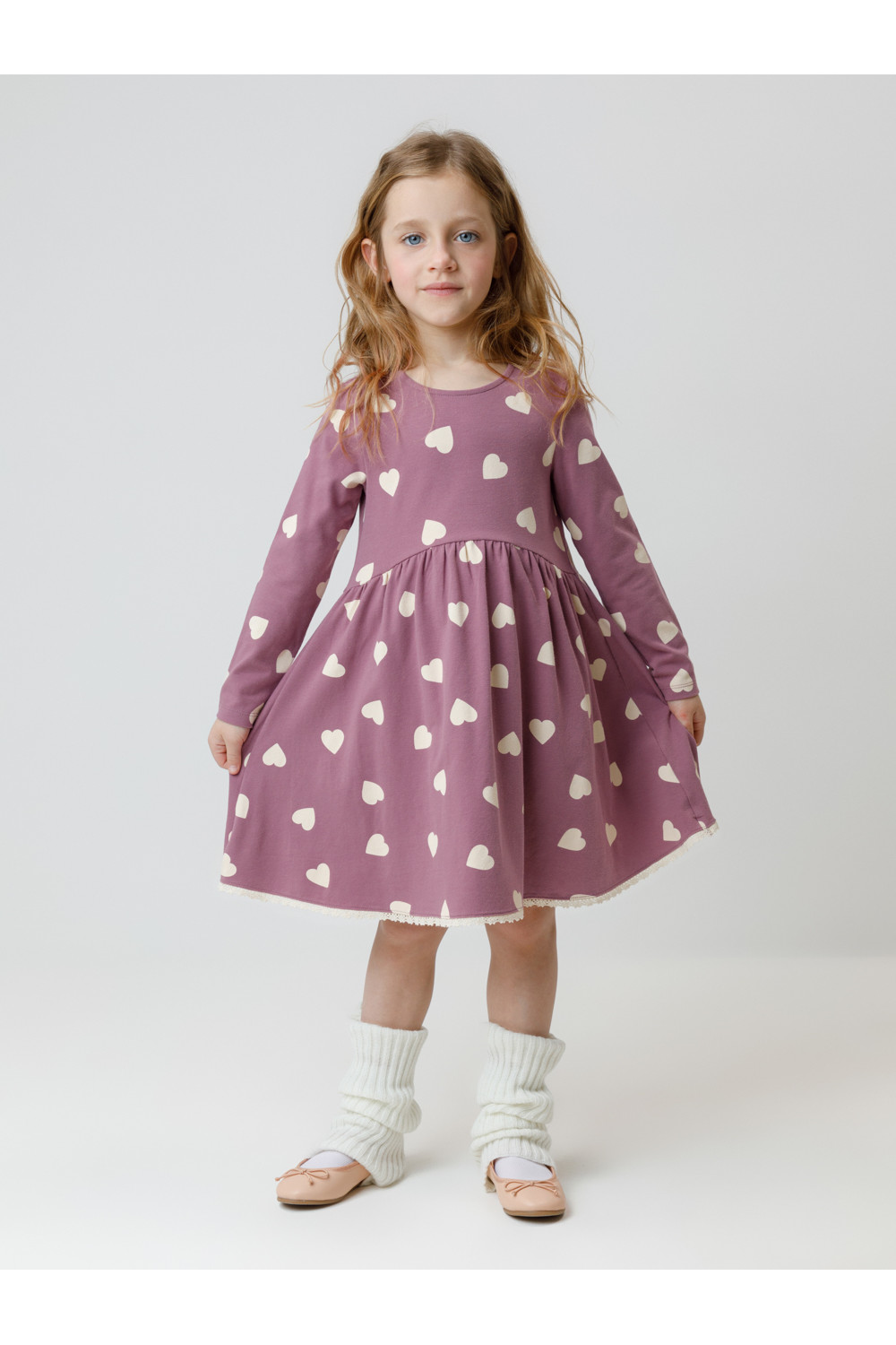 Платье для девочки с длинными рукавами из высококачественного гладкого трикотажа. Для удобства одевания на спинке платье застёгивается на пуговицу. Украшено кружевом. Платье сохраняет форму и стойкий цвет после многочисленных стирок и идеально подходит на каждый день. Все трикотажные полотна производятся в соответствии с нормами швейцарского сертификата ЭкоТекс.