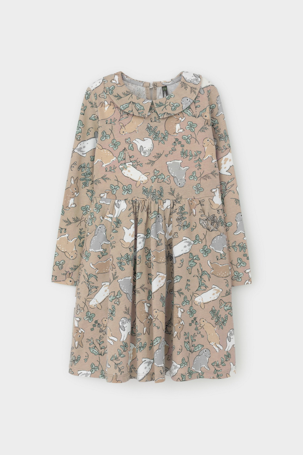 Платье для девочки с карманами из набивного трикотажного супрема. Оригинальная набивка выполнена из стойких текстильных гипоаллергенных красителей.