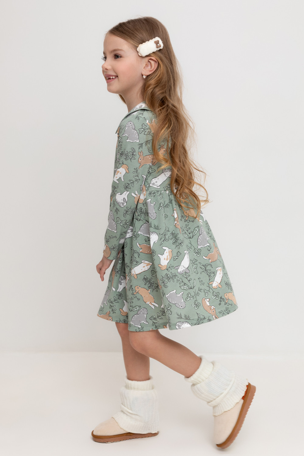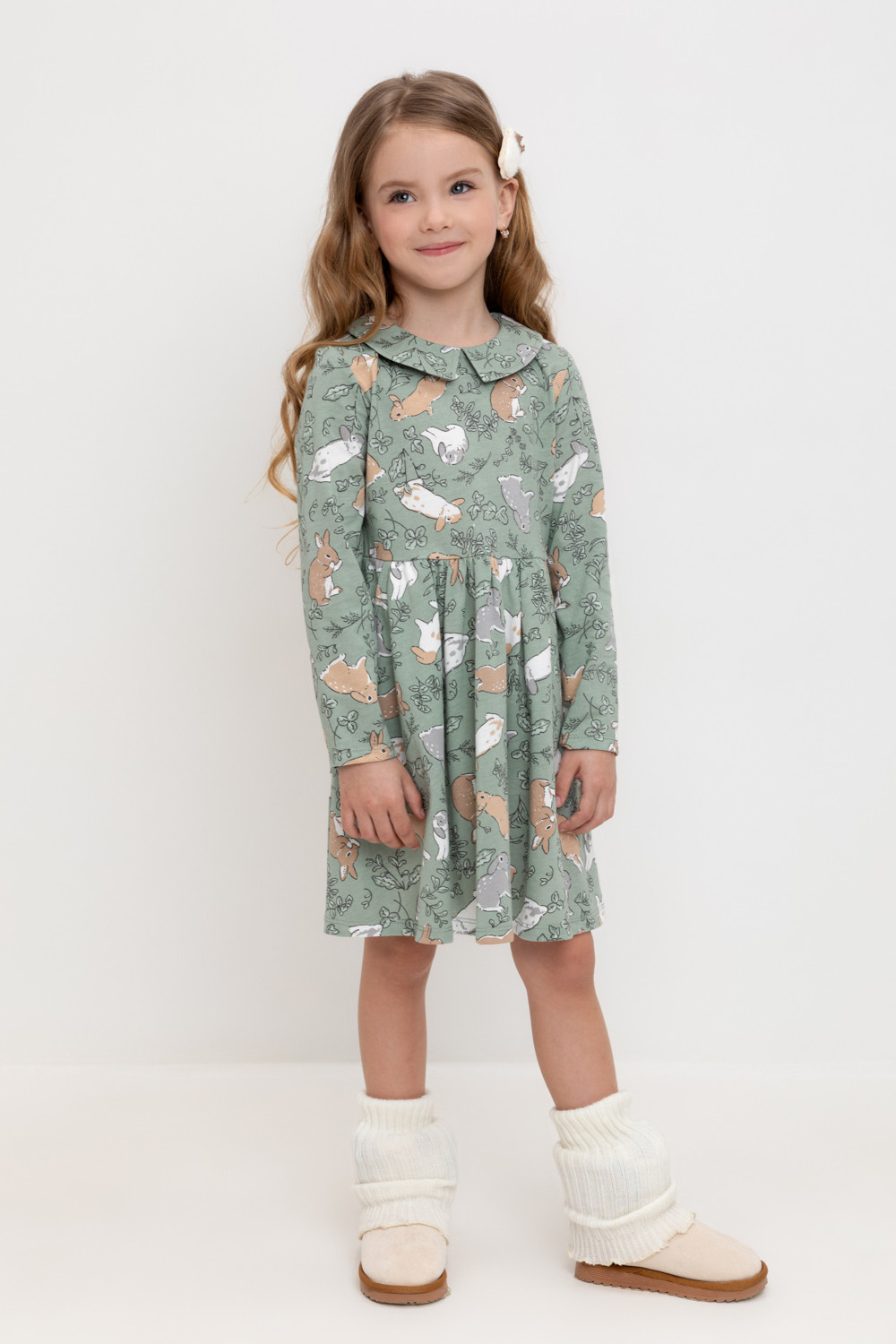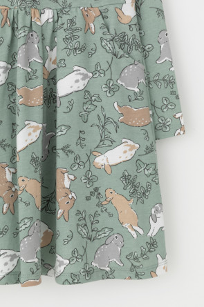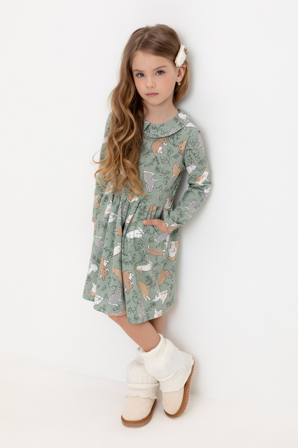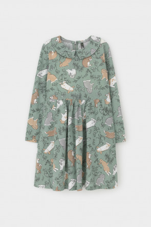 Платье для девочки с карманами из набивного трикотажного супрема. Оригинальная набивка выполнена из стойких текстильных гипоаллергенных красителей.