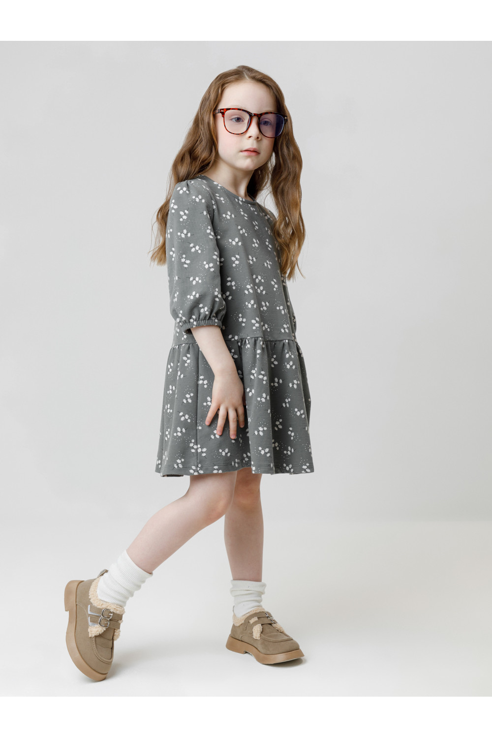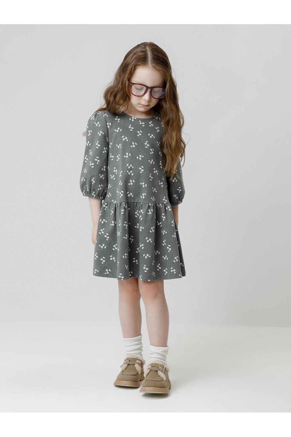 Платье для девочки с короткими рукавами из мягкого петельчатого трикотажа. Для удобства одевания платье на спинке застёгивается на пуговицу. Платье сохраняет форму и стойкий цвет после многочисленных стирок и идеально подходит на каждый день. Все трикотажные полотна производятся в соответствии с нормами швейцарского сертификата ЭкоТекс.