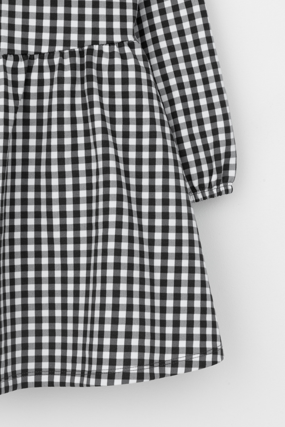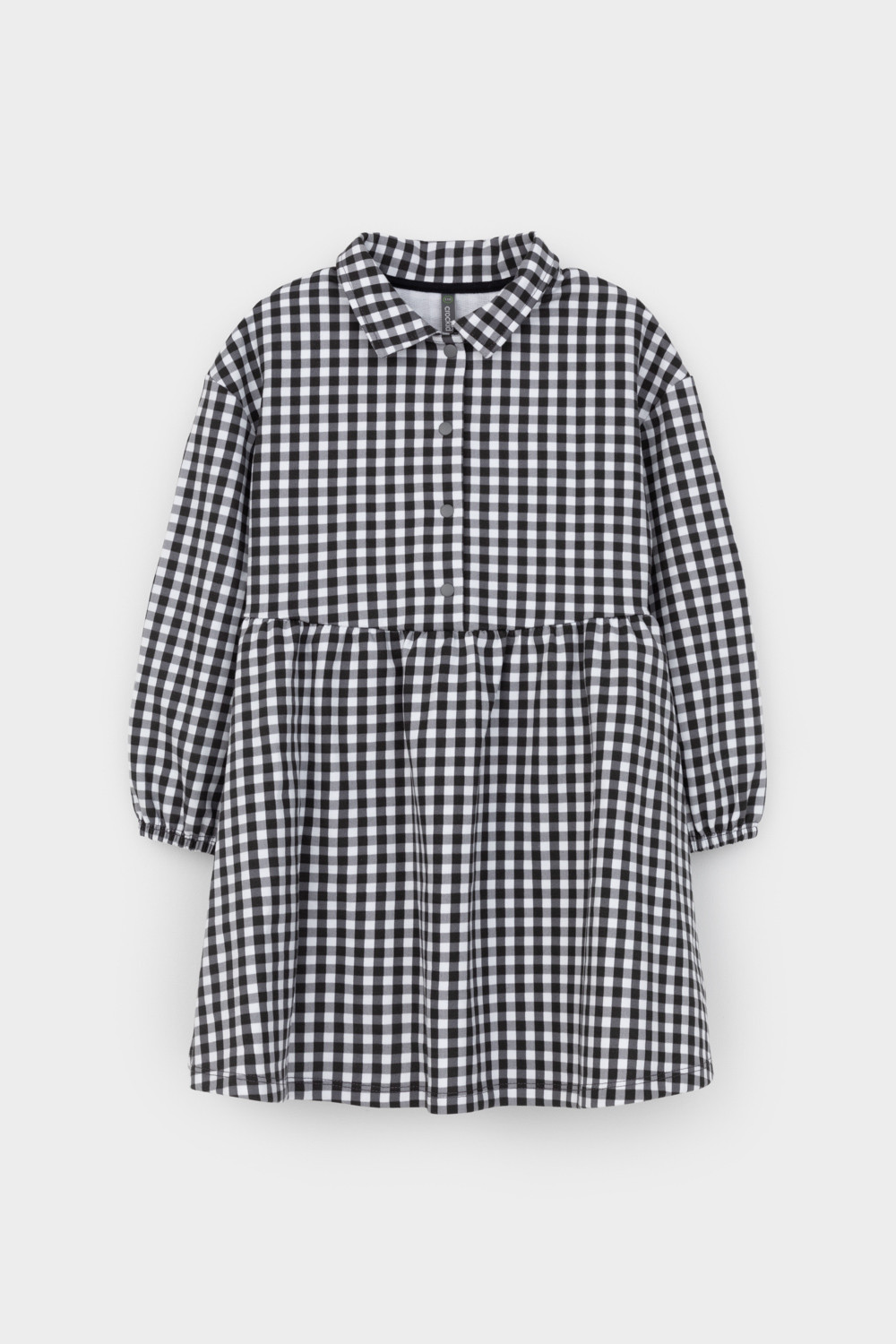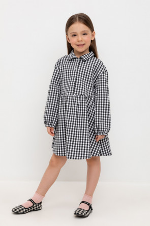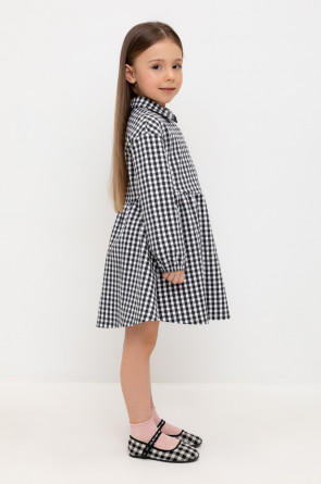 Платье для девочки из петельчатого футера на кнопках. Оригинальная набивка выполнена из стойких текстильных гипоаллергенных красителей.