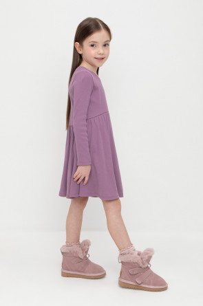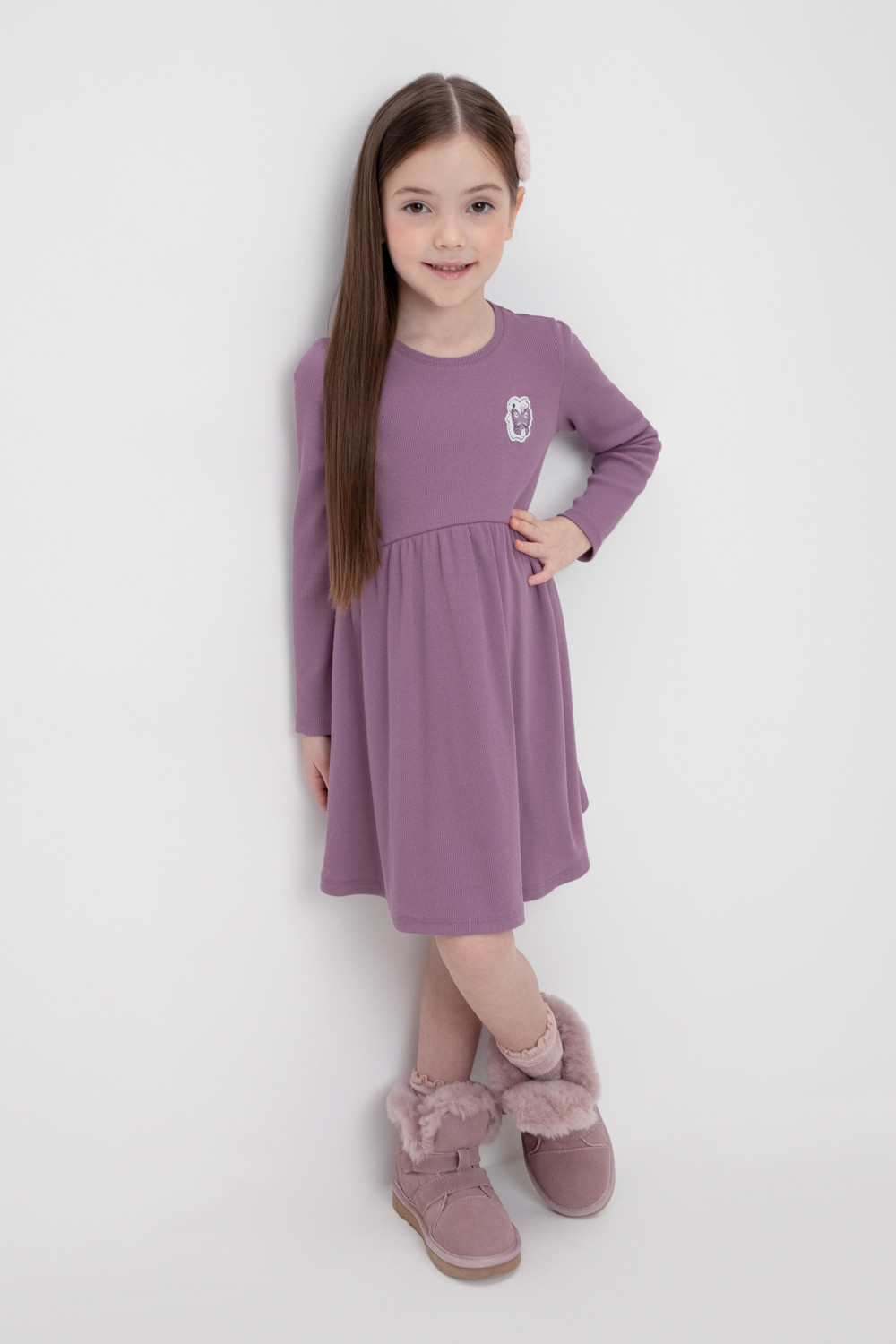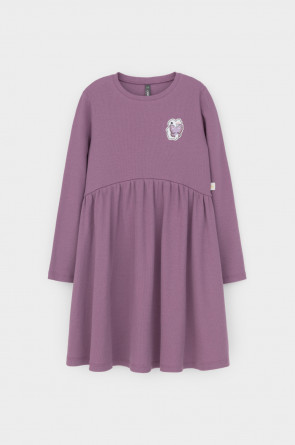 Платье для девочки из эластичного трикотажа в рубчик. Спереди нашивка.