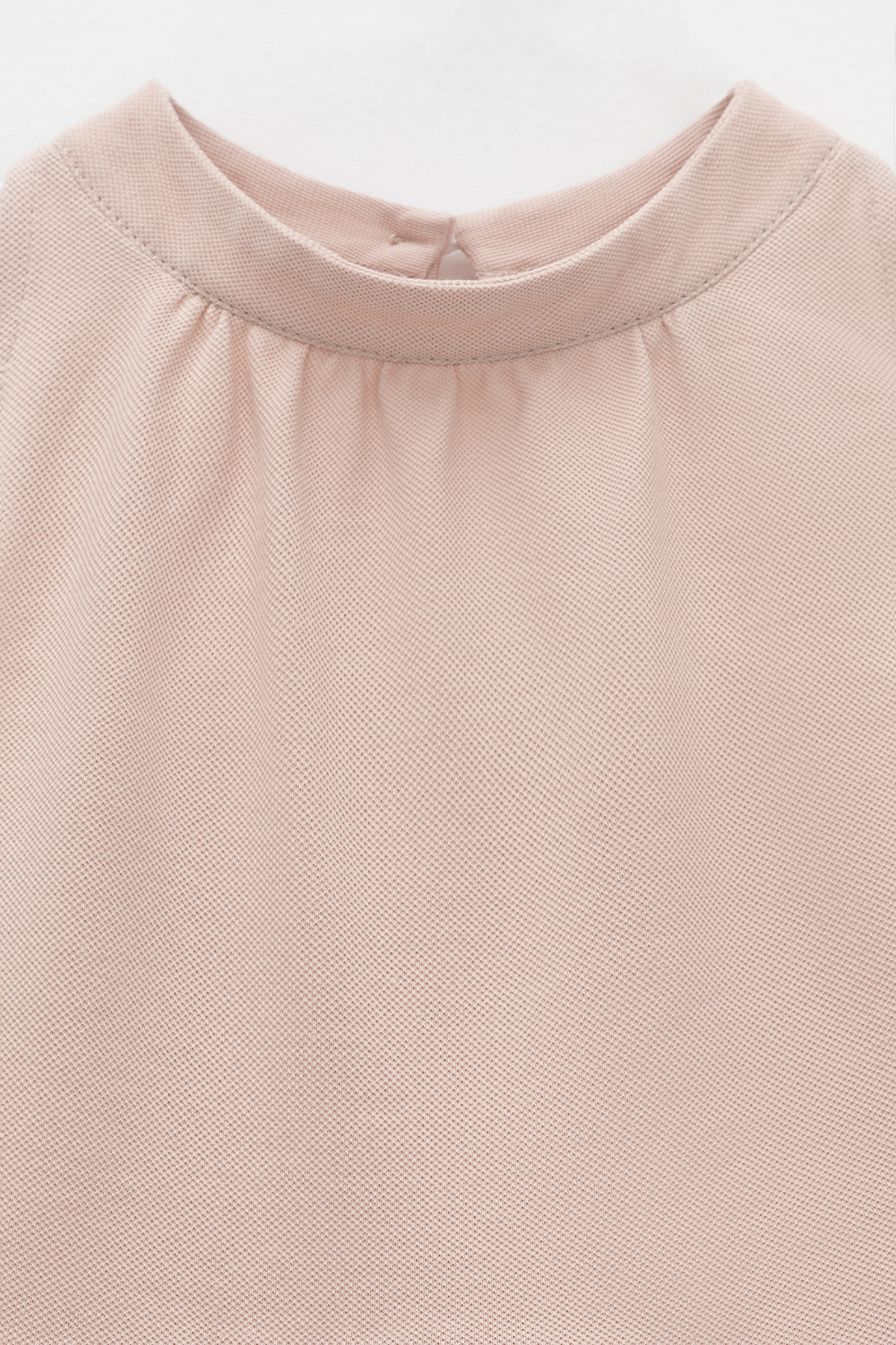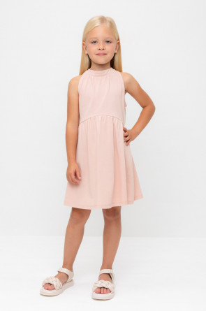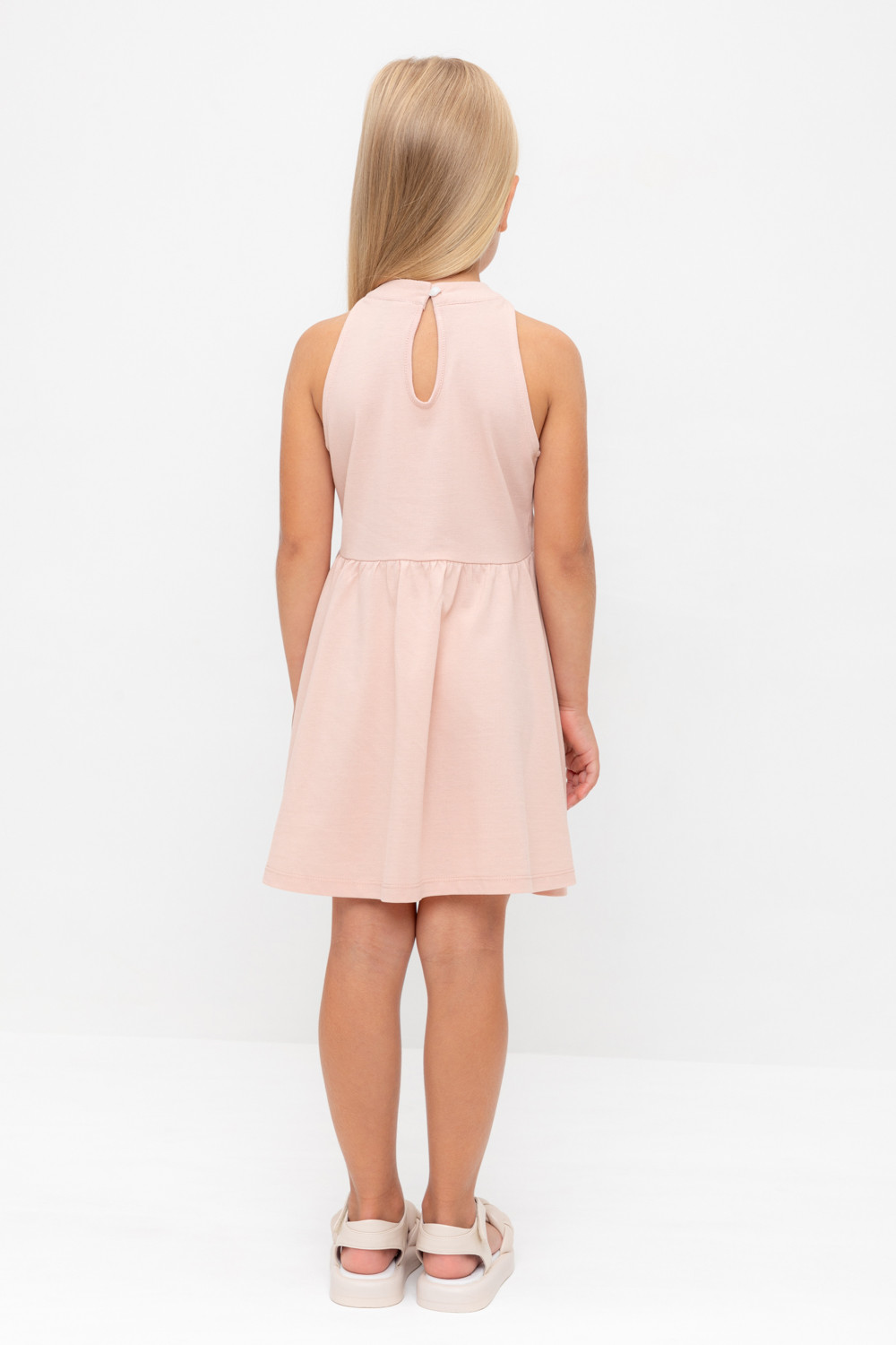 Платье для девочки из высококачественного трикотажа пике с воротничком-стойкой. Для удобства одевания платье застёгивается на пуговицу на спинке. Платье сохраняет форму и стойкий цвет после многочисленных стирок и идеально подходит на каждый день.