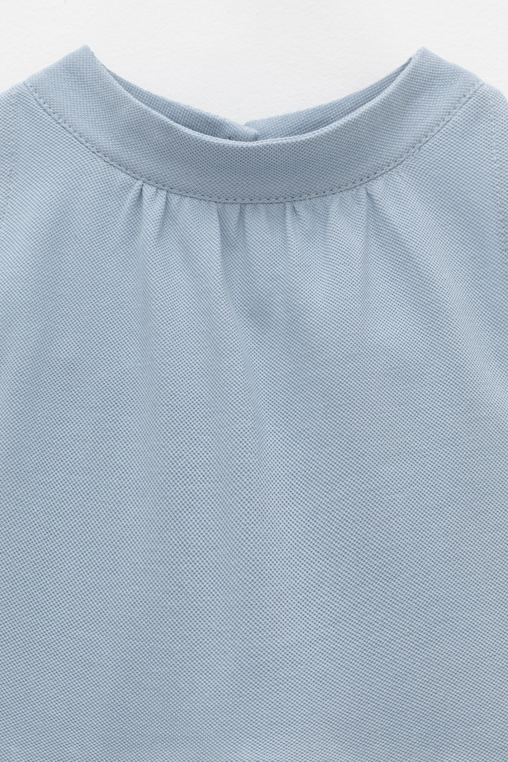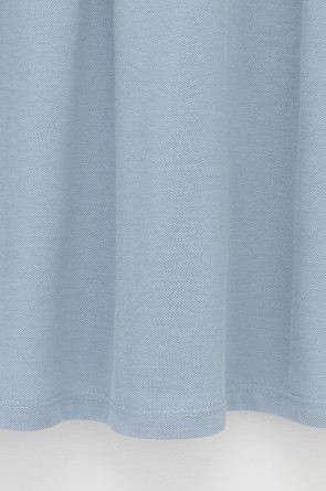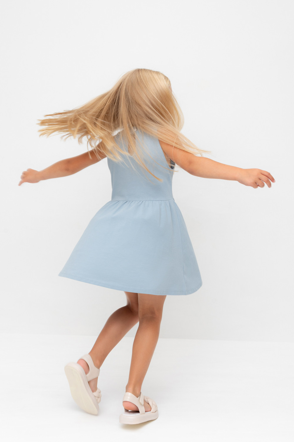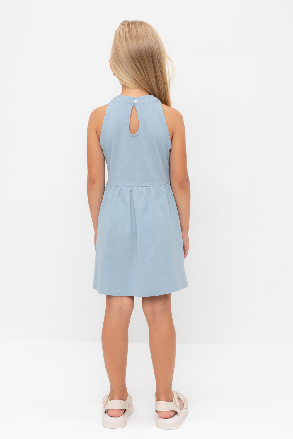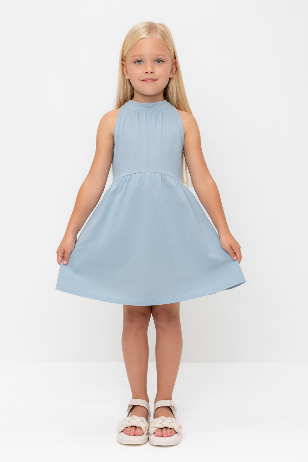 Платье для девочки из высококачественного трикотажа пике с воротничком-стойкой. Для удобства одевания платье застёгивается на пуговицу на спинке. Платье сохраняет форму и стойкий цвет после многочисленных стирок и идеально подходит на каждый день.