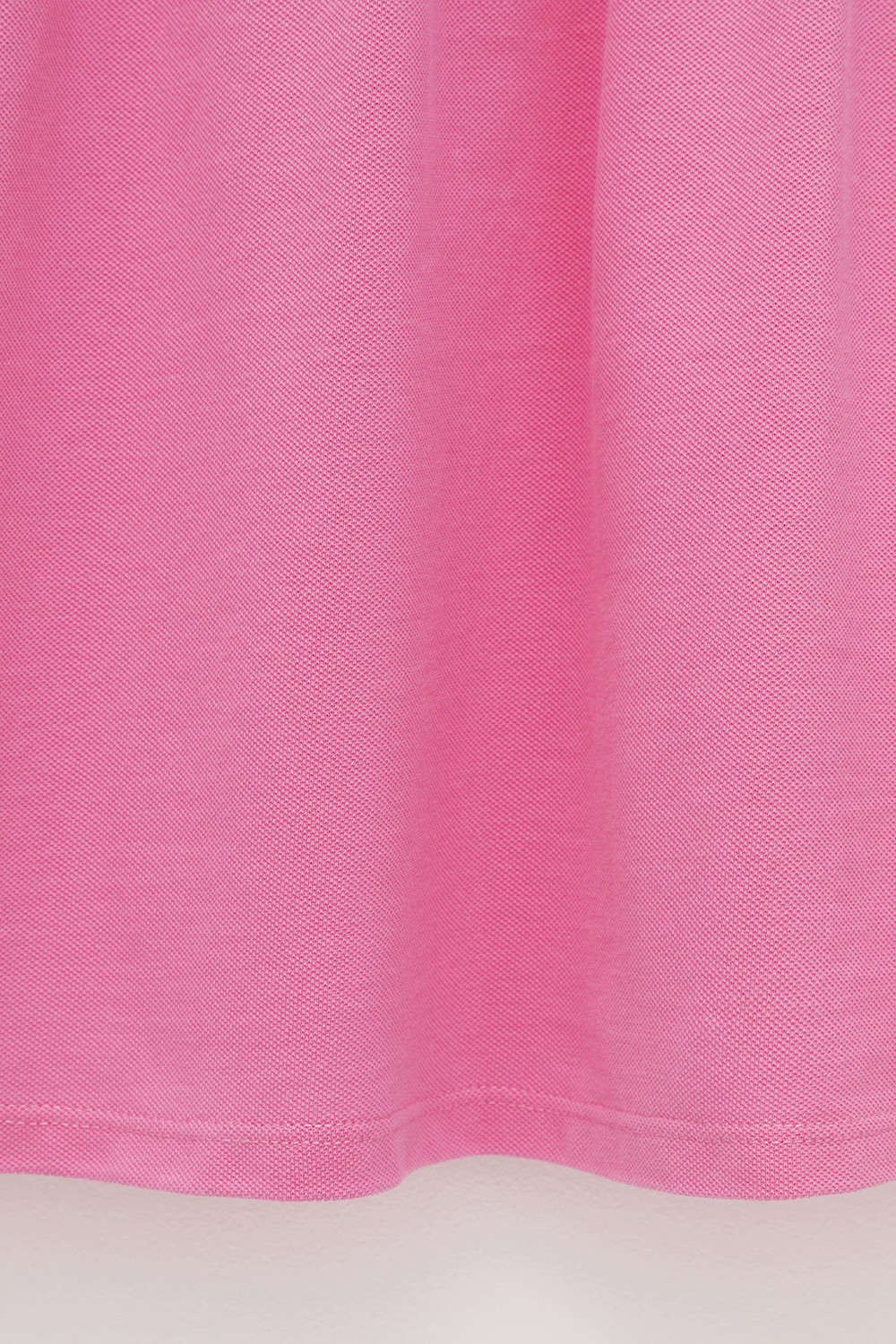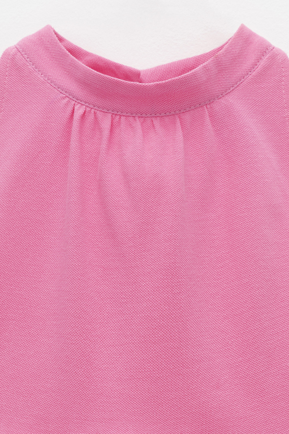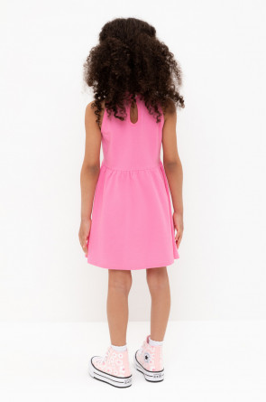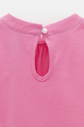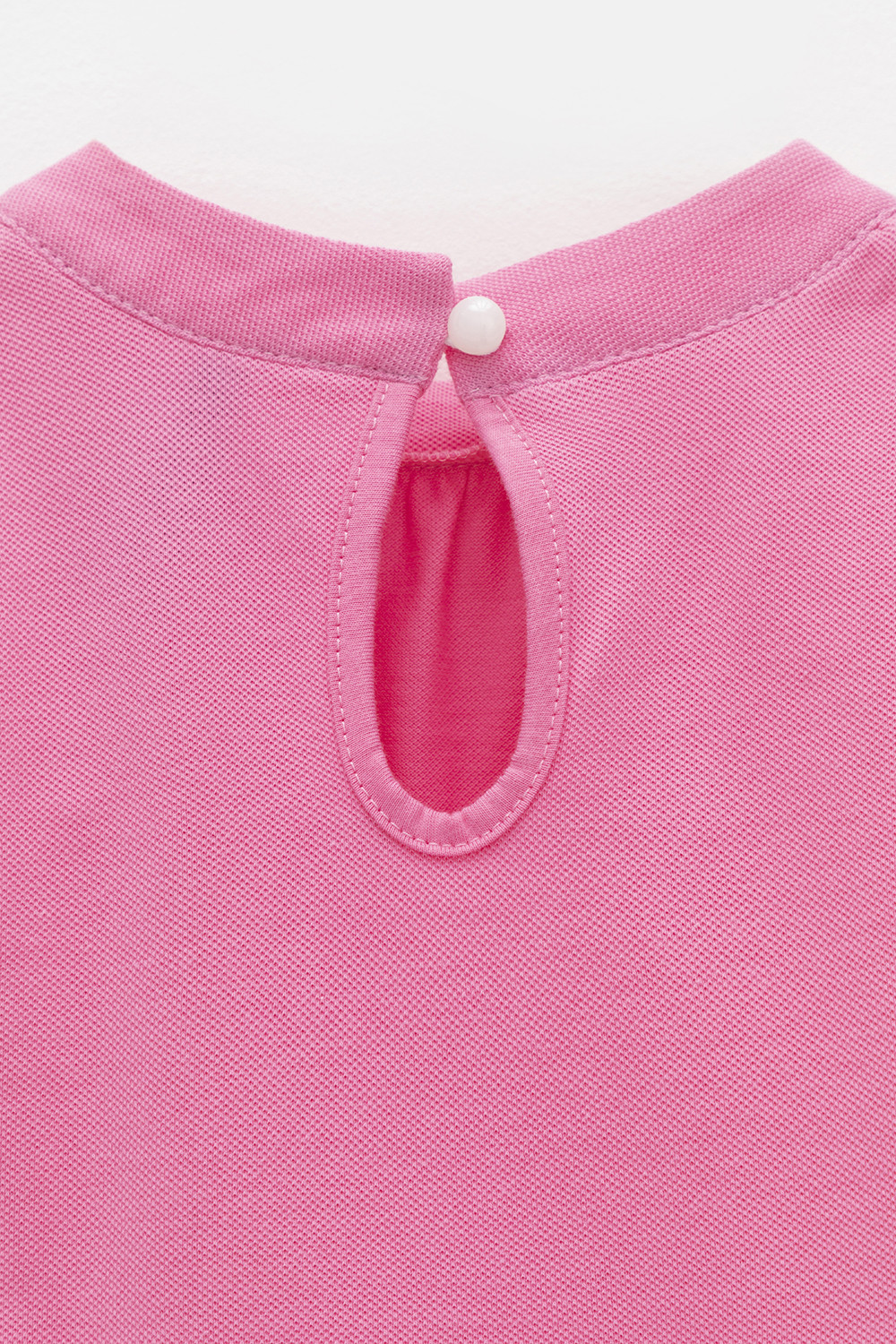 Платье для девочки из высококачественного трикотажа пике с воротничком-стойкой. Для удобства одевания платье застёгивается на пуговицу на спинке. Платье сохраняет форму и стойкий цвет после многочисленных стирок и идеально подходит на каждый день.