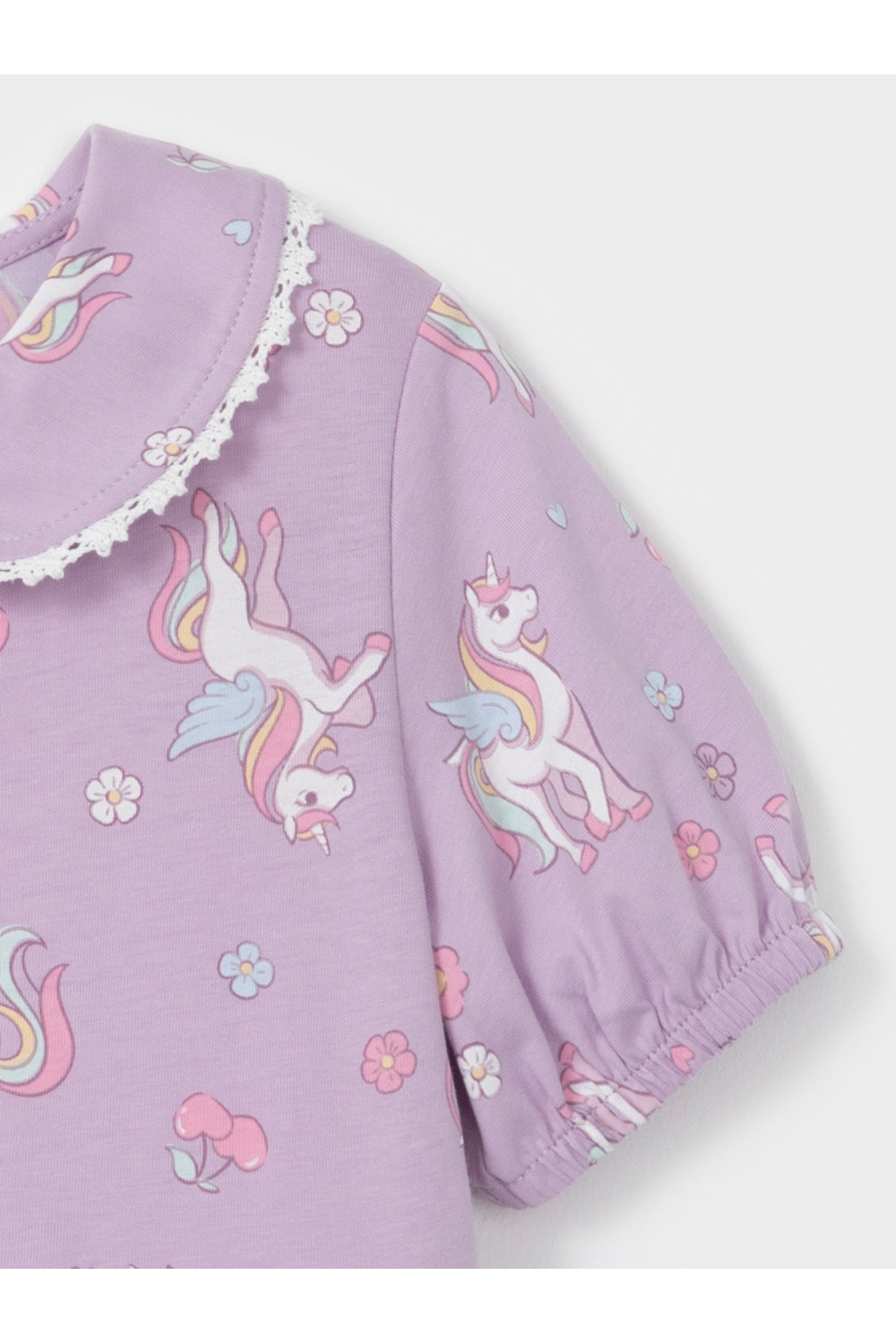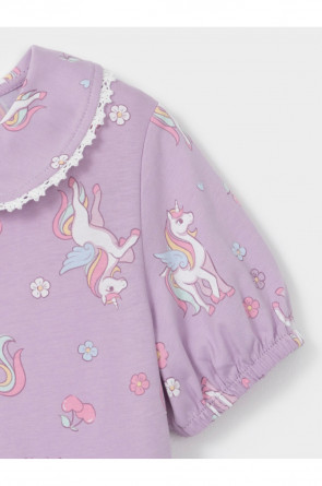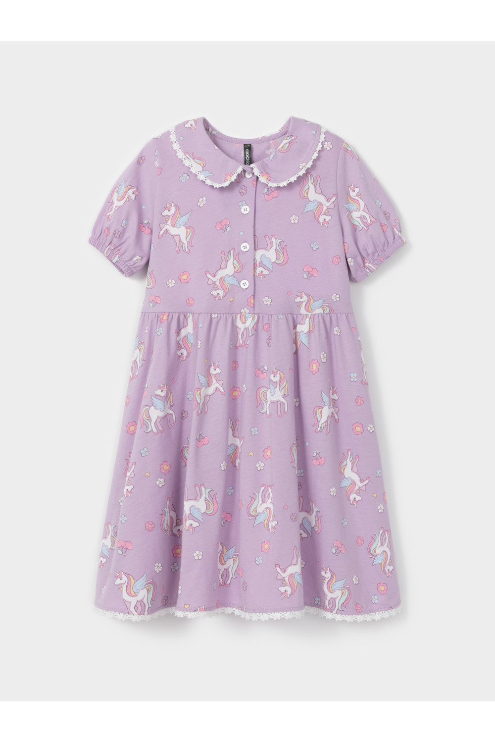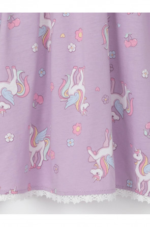 Платье с кружевом для девочки из высококачественного трикотажа, изготовленного из натурального хлопка. Застёгивается на пуговицы спереди. Платье сохраняет форму и стойкий цвет после многочисленных стирок и идеально подходит на каждый день. Все трикотажные полотна производятся в соответствии с нормами швейцарского сертификата ЭкоТекс.