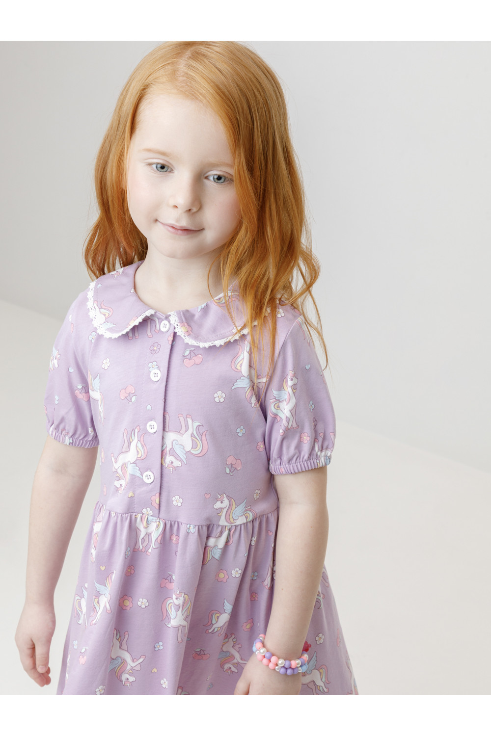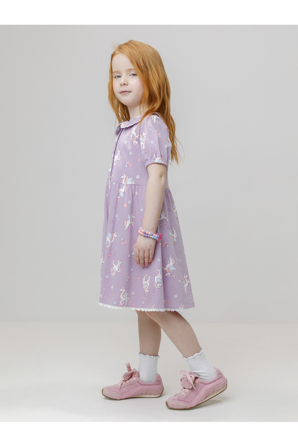 Платье с кружевом для девочки из высококачественного трикотажа, изготовленного из натурального хлопка. Застёгивается на пуговицы спереди. Платье сохраняет форму и стойкий цвет после многочисленных стирок и идеально подходит на каждый день. Все трикотажные полотна производятся в соответствии с нормами швейцарского сертификата ЭкоТекс.