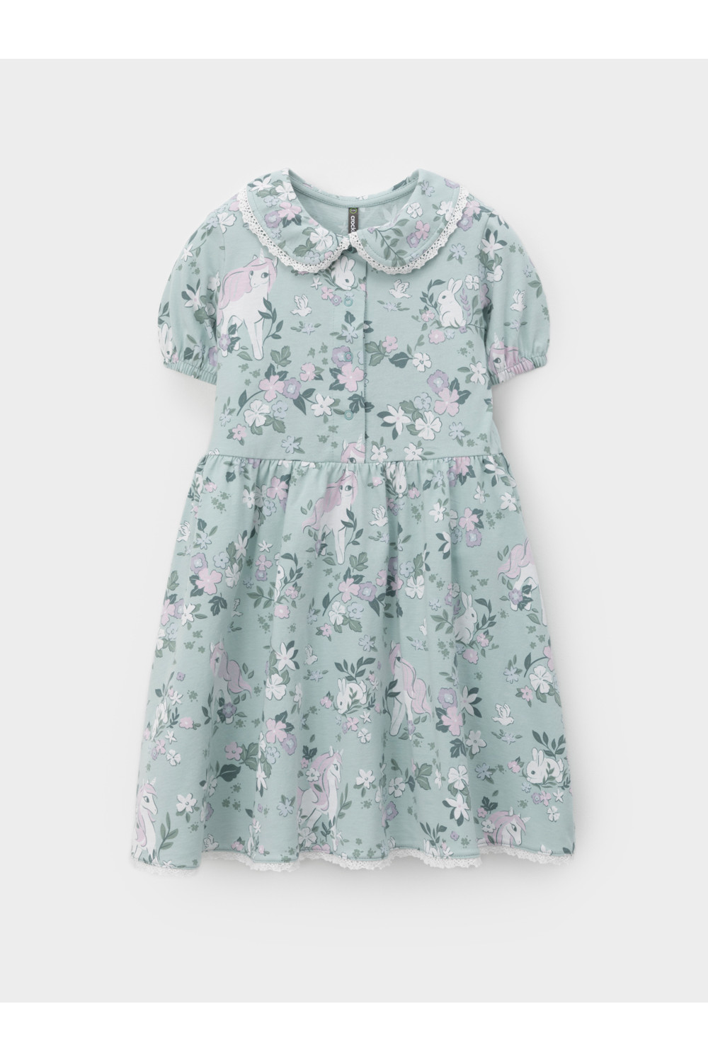 Платье с кружевом для девочки из высококачественного трикотажа, изготовленного из натурального хлопка. Застёгивается на пуговицы спереди. Платье сохраняет форму и стойкий цвет после многочисленных стирок и идеально подходит на каждый день. Все трикотажные полотна производятся в соответствии с нормами швейцарского сертификата ЭкоТекс.