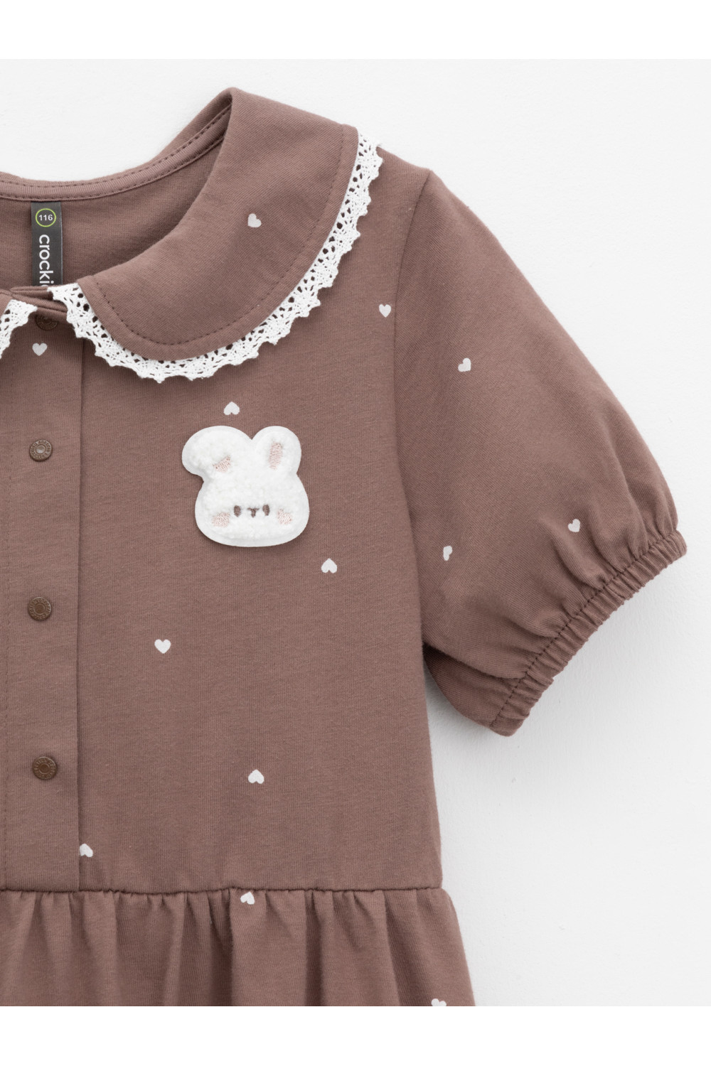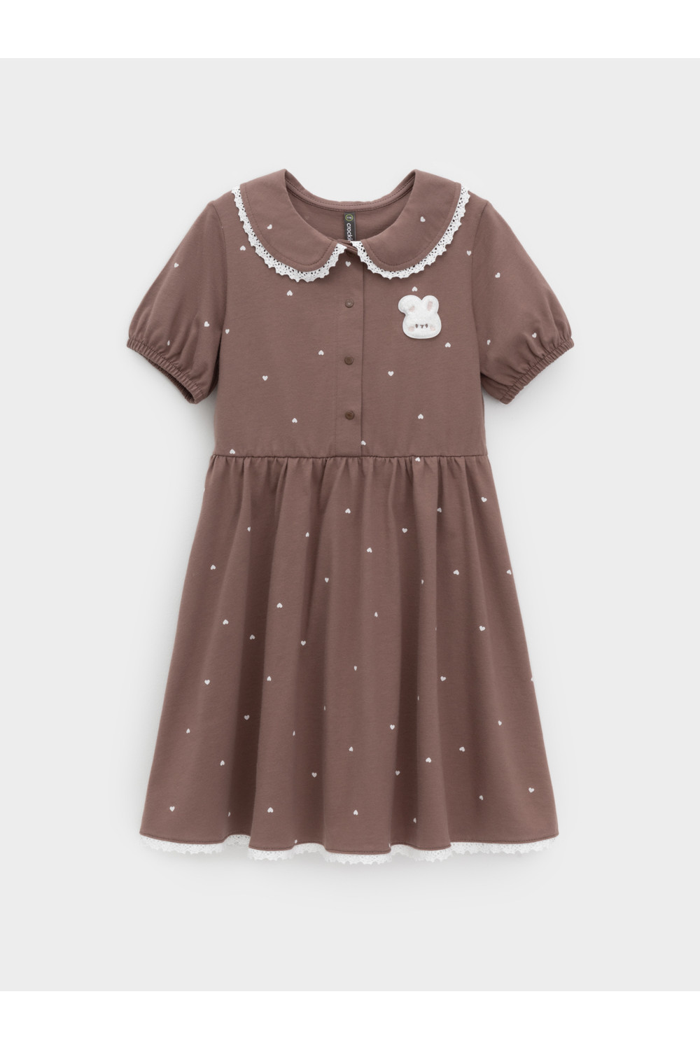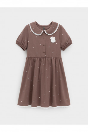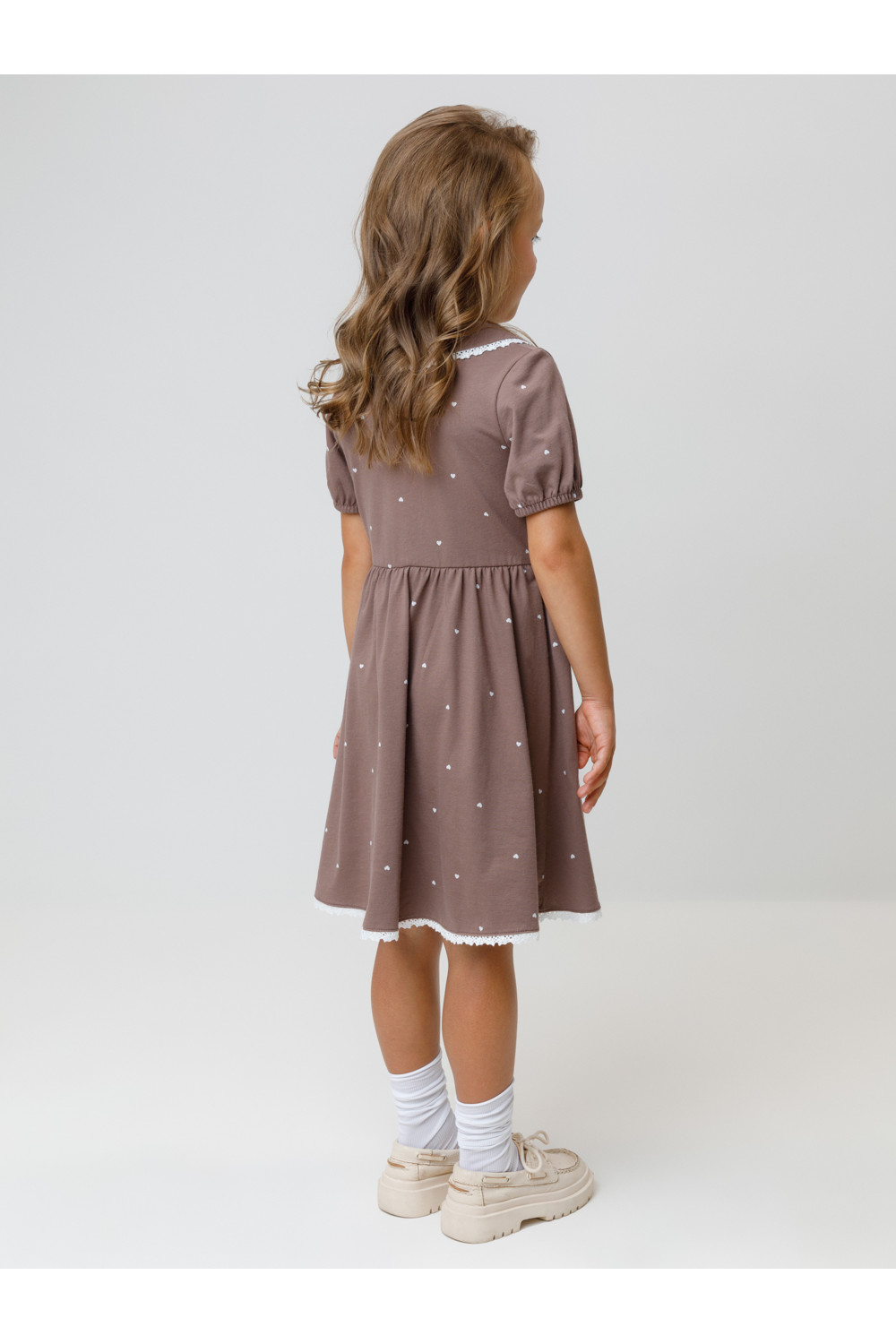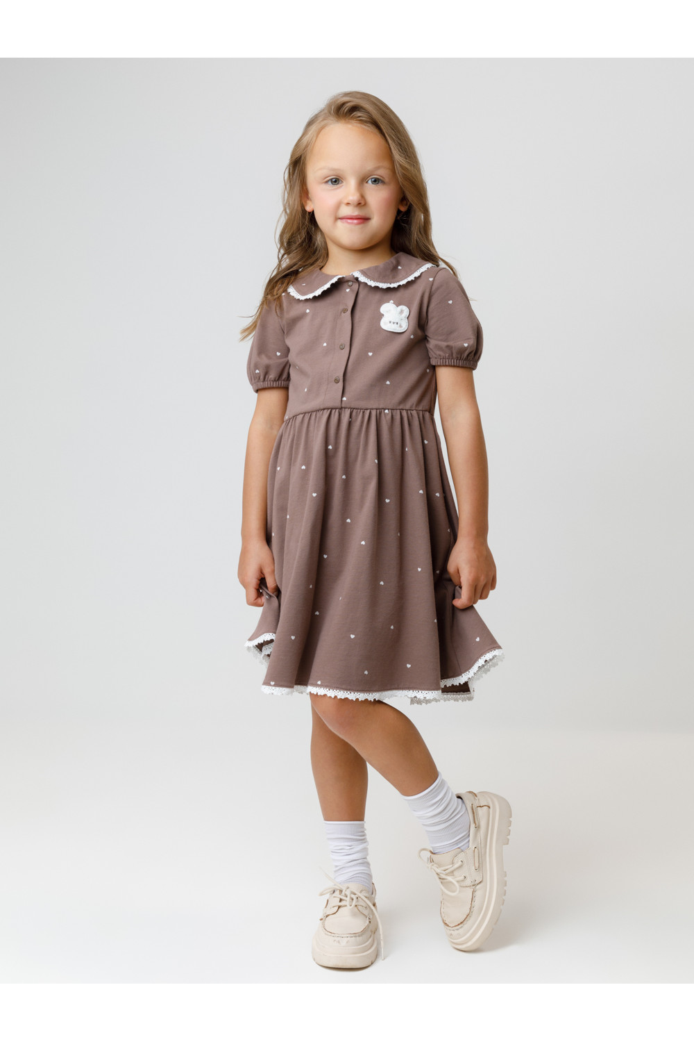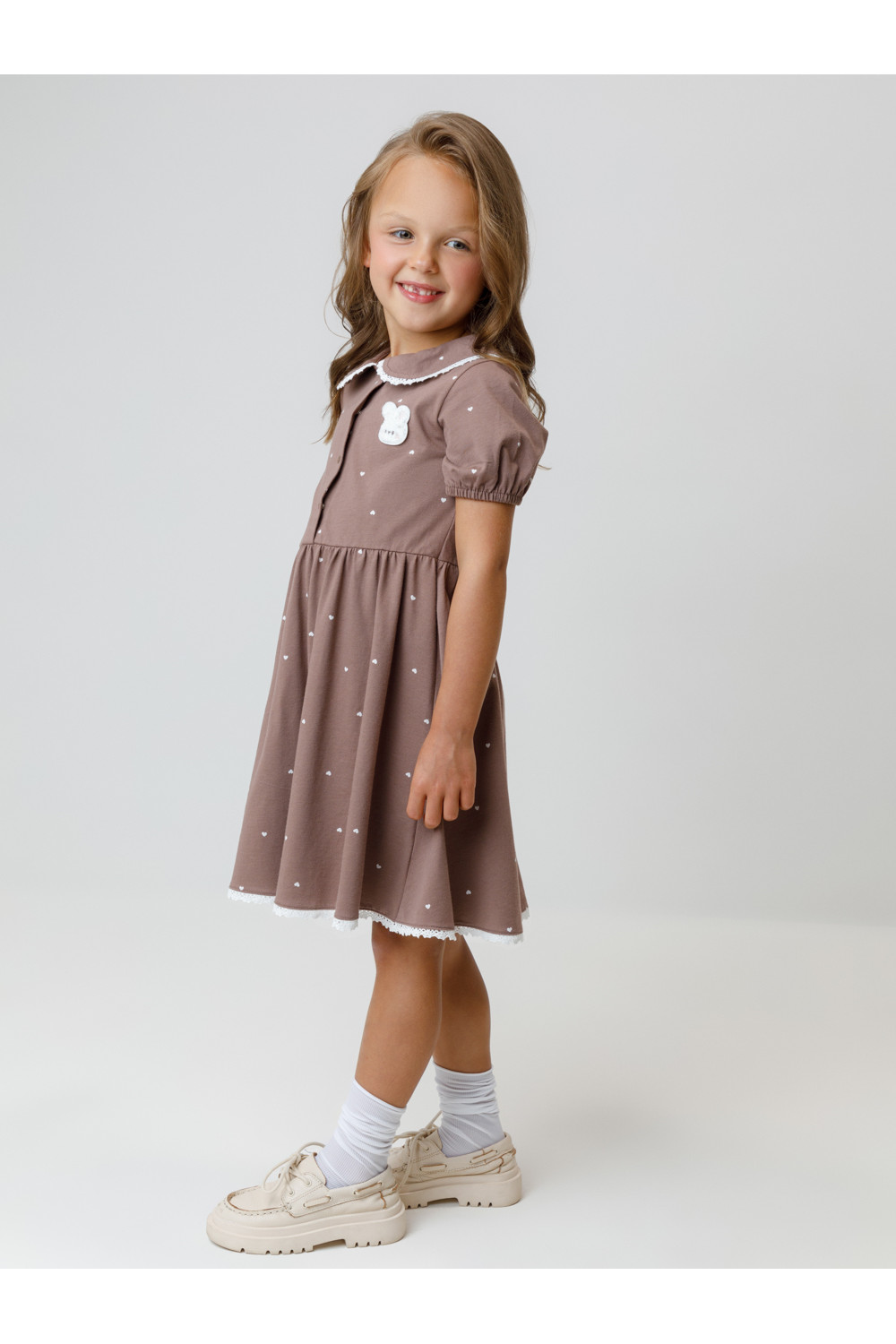 Платье для девочки с короткими рукавами из высококачественного гладкого трикотажа. Для удобства одевания платье застёгивается на пуговицы спереди. Воротник и низ изделия украшены кружевом. Платье сохраняет форму и стойкий цвет после многочисленных стирок и идеально подходит на каждый день. Все трикотажные полотна производятся в соответствии с нормами швейцарского сертификата ЭкоТекс.