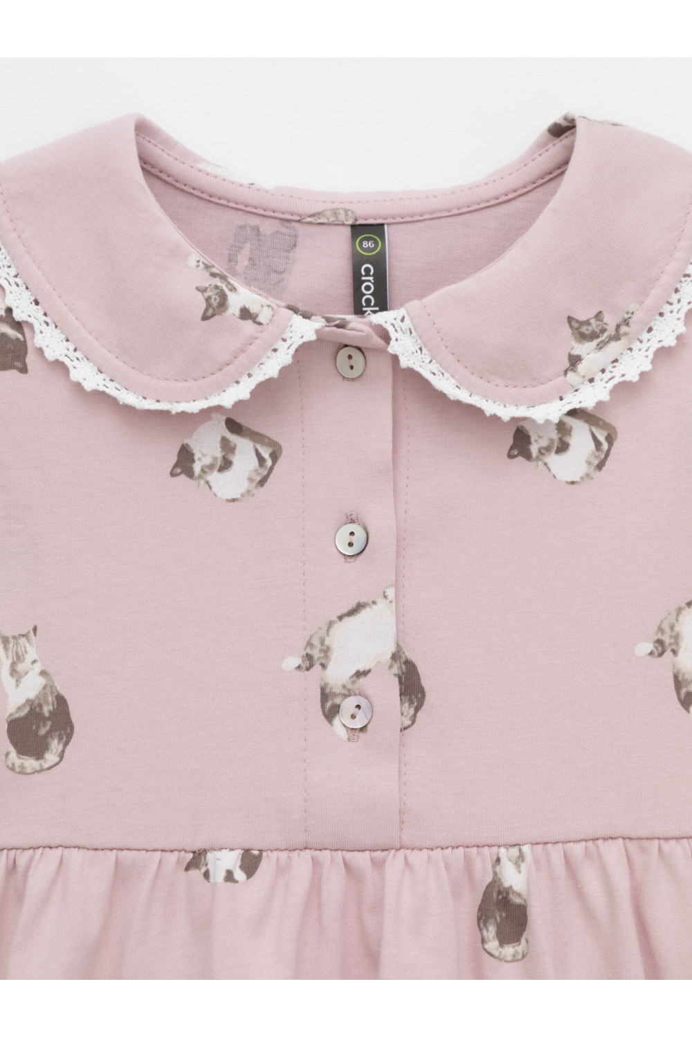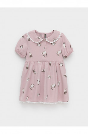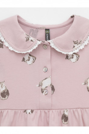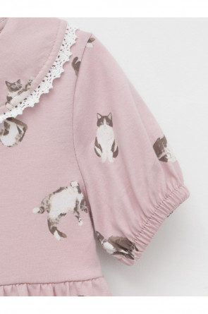 Платье для девочки с короткими рукавами из высококачественного гладкого трикотажа. Для удобства одевания платье застёгивается на пуговицы спереди. Украшено кружевом. Платье сохраняет форму и стойкий цвет после многочисленных стирок и идеально подходит на каждый день. Все трикотажные полотна производятся в соответствии с нормами швейцарского сертификата ЭкоТекс.