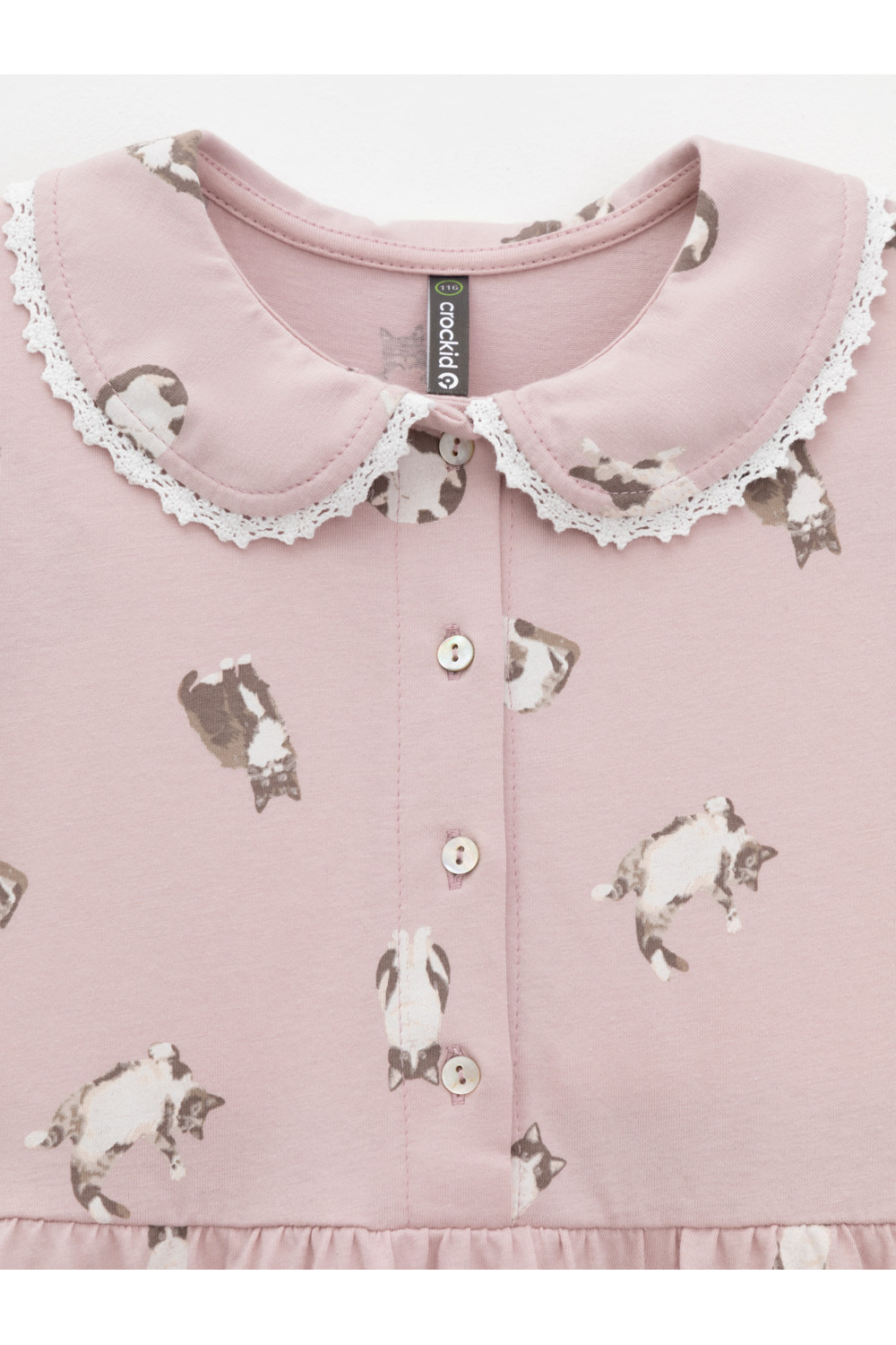 Платье для девочки с короткими рукавами из высококачественного гладкого трикотажа. Для удобства одевания платье застёгивается на пуговицы спереди. Украшено кружевом. Платье сохраняет форму и стойкий цвет после многочисленных стирок и идеально подходит на каждый день. Все трикотажные полотна производятся в соответствии с нормами швейцарского сертификата ЭкоТекс.