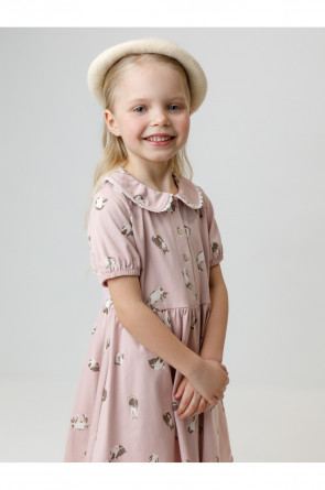 Платье для девочки с короткими рукавами из высококачественного гладкого трикотажа. Для удобства одевания платье застёгивается на пуговицы спереди. Украшено кружевом. Платье сохраняет форму и стойкий цвет после многочисленных стирок и идеально подходит на каждый день. Все трикотажные полотна производятся в соответствии с нормами швейцарского сертификата ЭкоТекс.