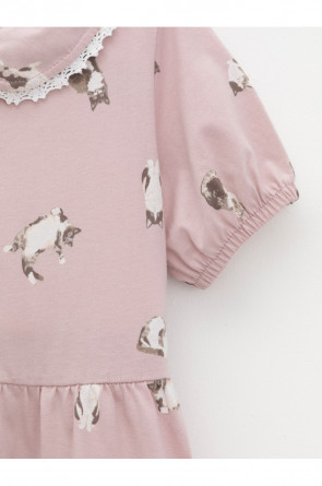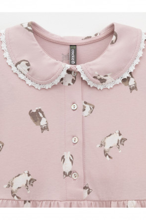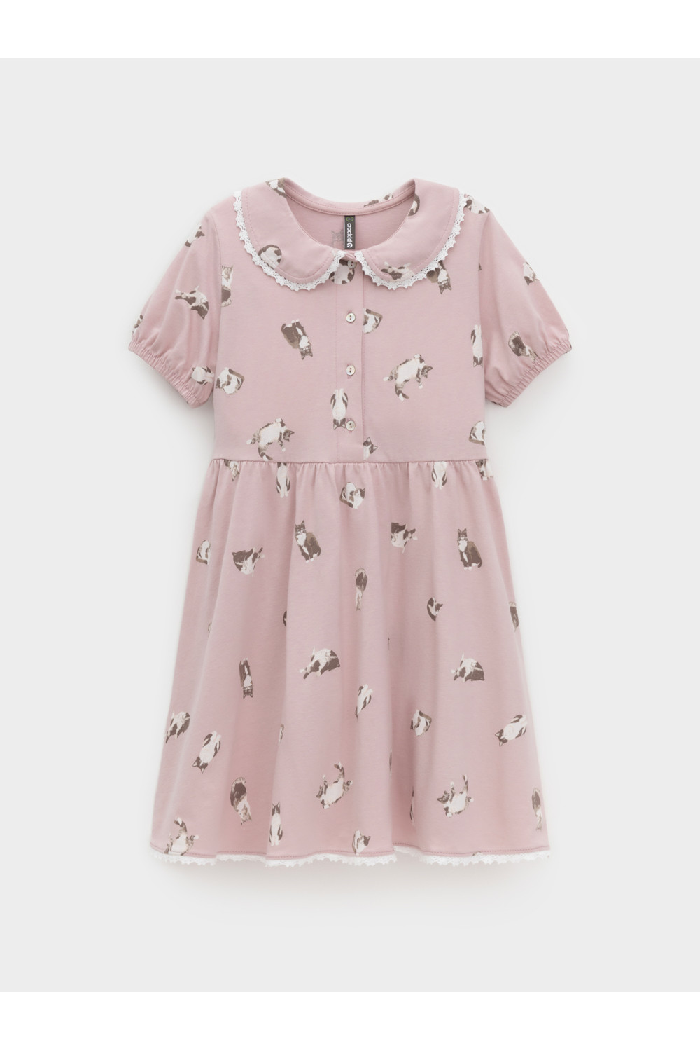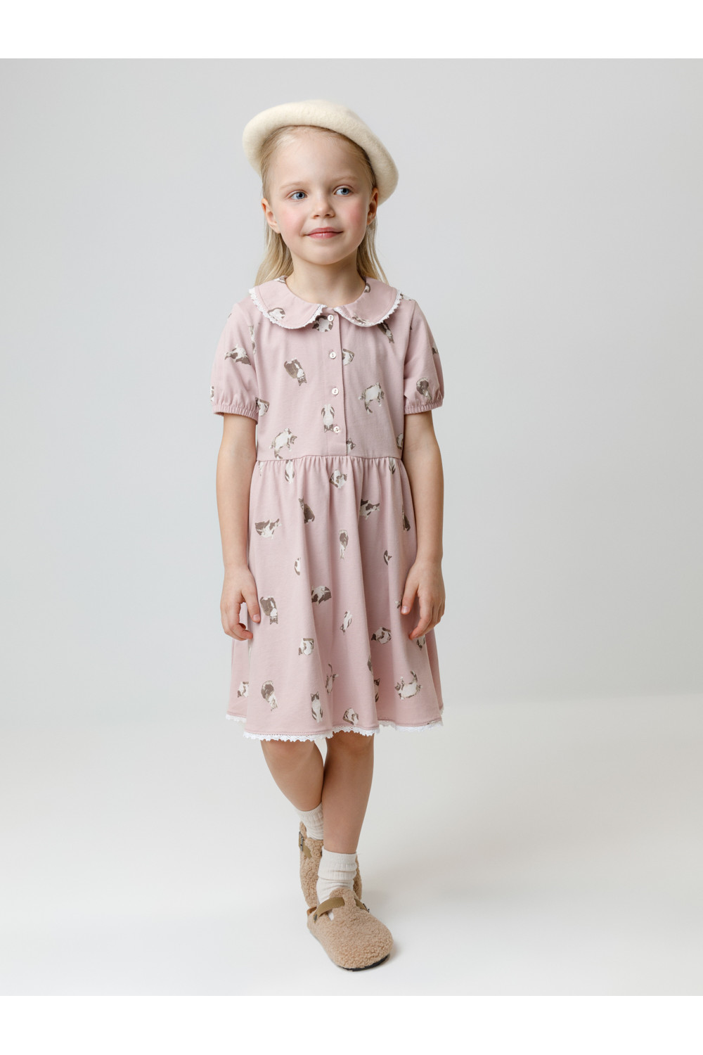 Платье для девочки с короткими рукавами из высококачественного гладкого трикотажа. Для удобства одевания платье застёгивается на пуговицы спереди. Украшено кружевом. Платье сохраняет форму и стойкий цвет после многочисленных стирок и идеально подходит на каждый день. Все трикотажные полотна производятся в соответствии с нормами швейцарского сертификата ЭкоТекс.
