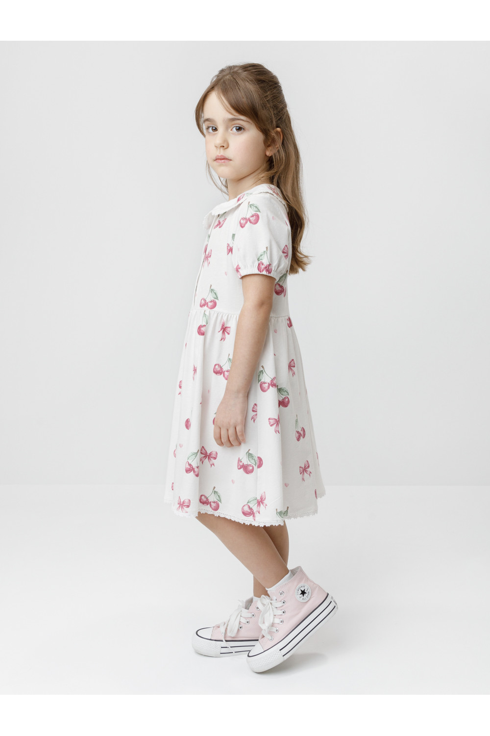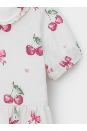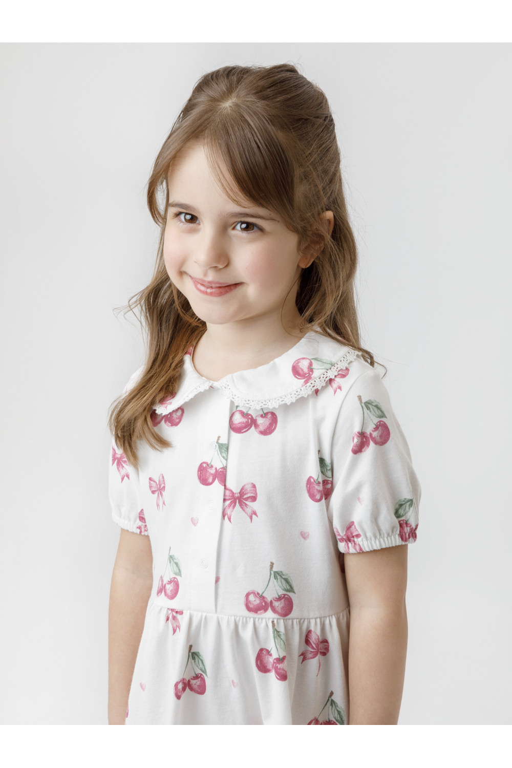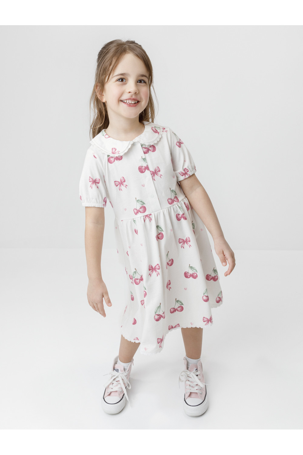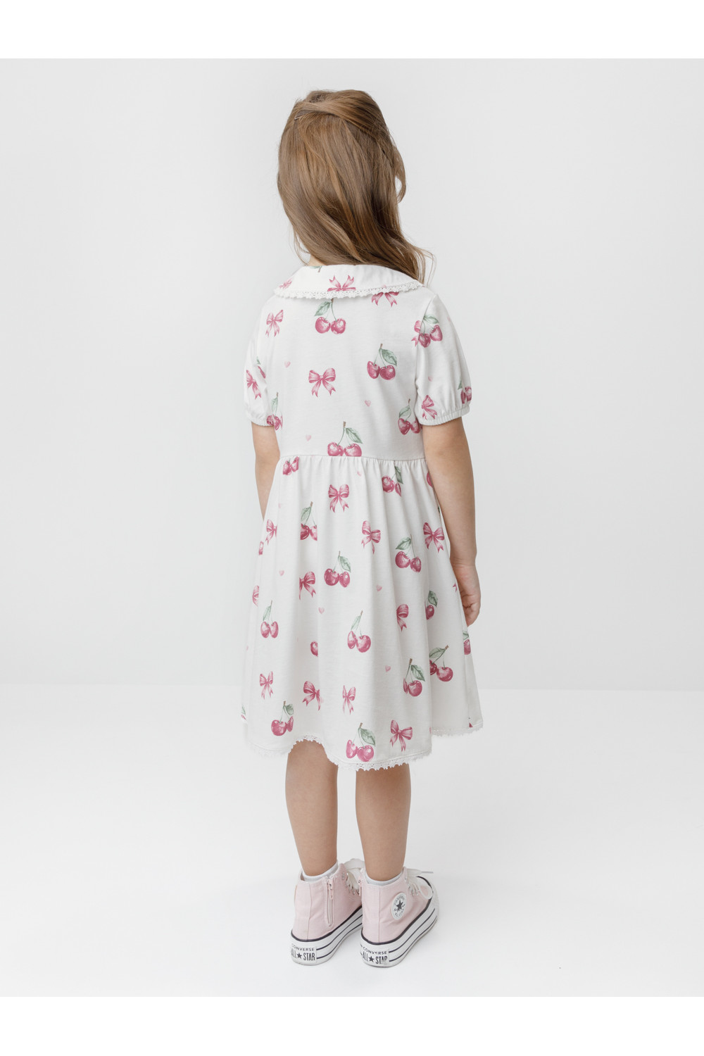 Платье с кружевом для девочки из высококачественного трикотажа, изготовленного из натурального хлопка. Застёгивается на пуговицы спереди. Платье сохраняет форму и стойкий цвет после многочисленных стирок и идеально подходит на каждый день. Все трикотажные полотна производятся в соответствии с нормами швейцарского сертификата ЭкоТекс.