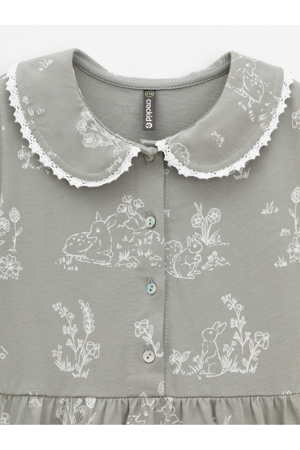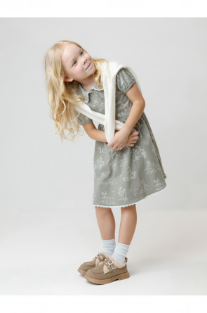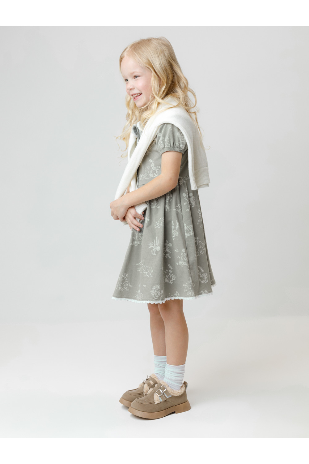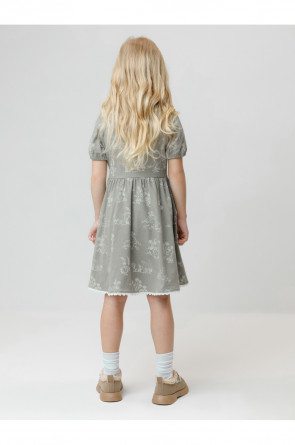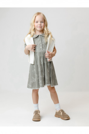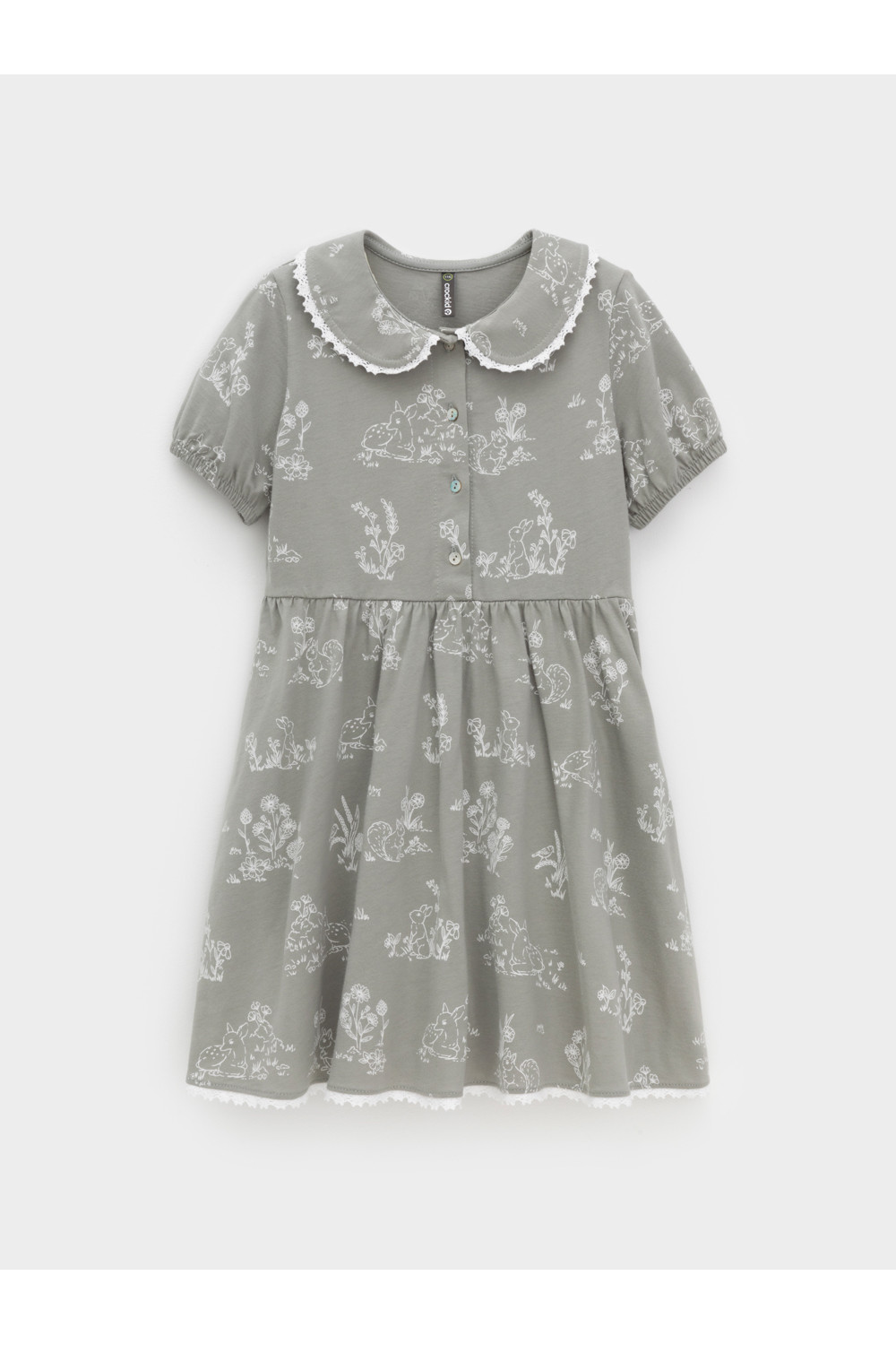 Платье для девочки с короткими рукавами из высококачественного гладкого трикотажа. Для удобства одевания платье застёгивается на пуговицы спереди. Воротник и низ изделия украшены кружевом. Платье сохраняет форму и стойкий цвет после многочисленных стирок и идеально подходит на каждый день. Все трикотажные полотна производятся в соответствии с нормами швейцарского сертификата ЭкоТекс.