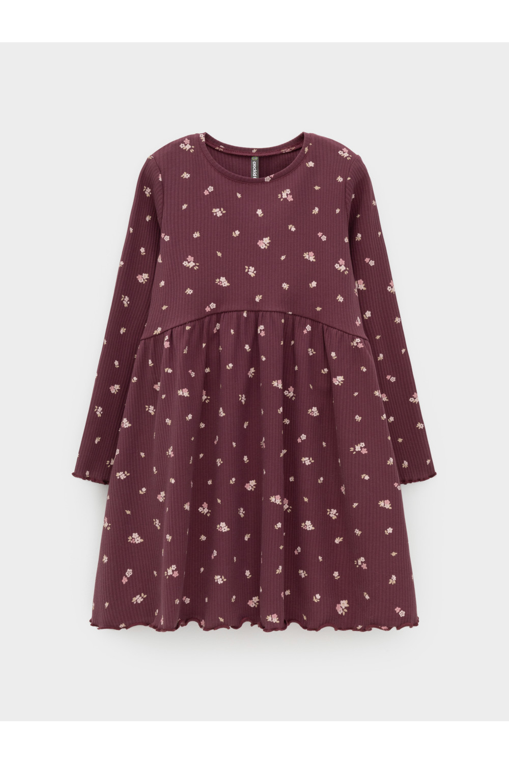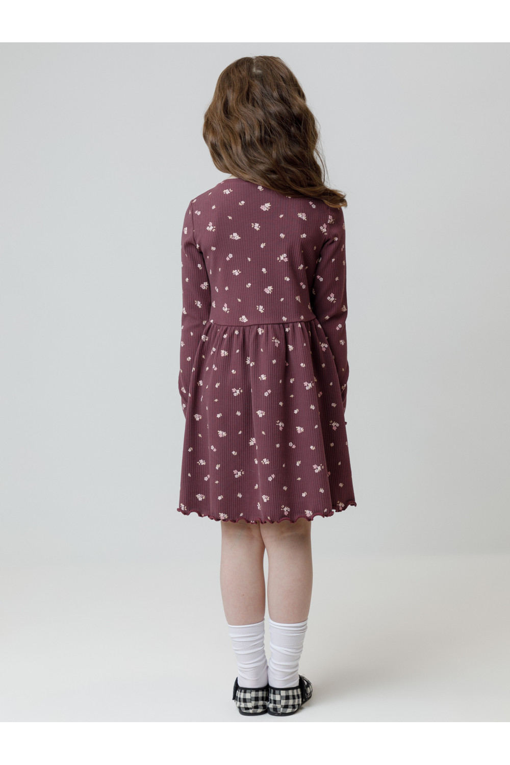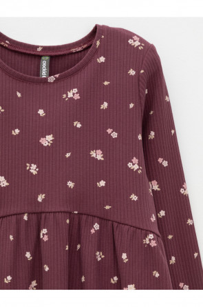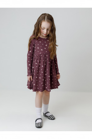 Платье для девочки из эластичного трикотажа в рубчик. Оригинальный рисунок выполнен из стойких текстильных гипоаллергенных красителей. Изделие сохраняет цвет и форму после многократных стирок. Все трикотажные полотна производятся в соответствии с нормами швейцарского сертификата ЭкоТекс.
