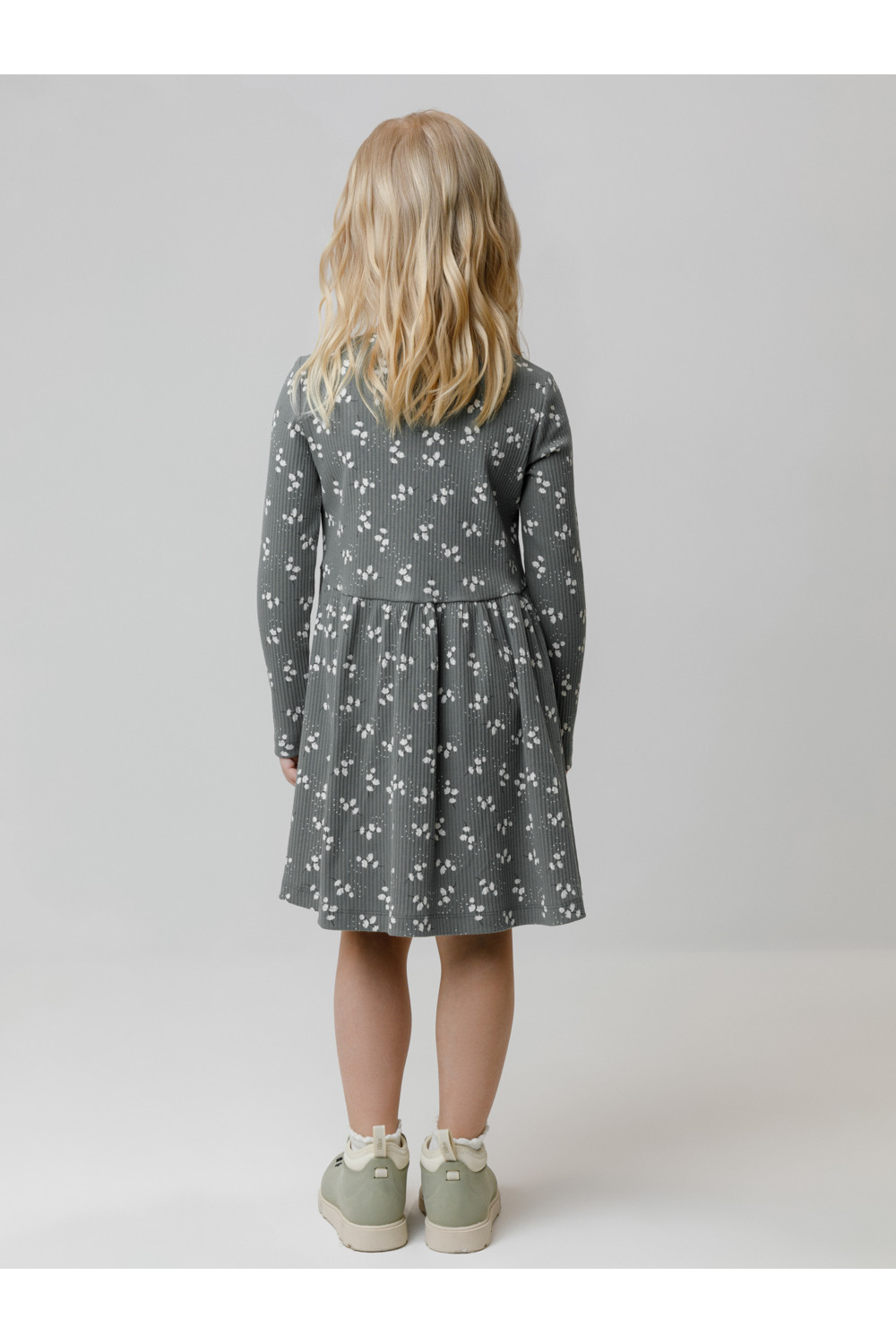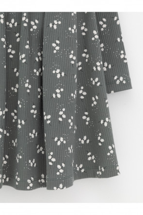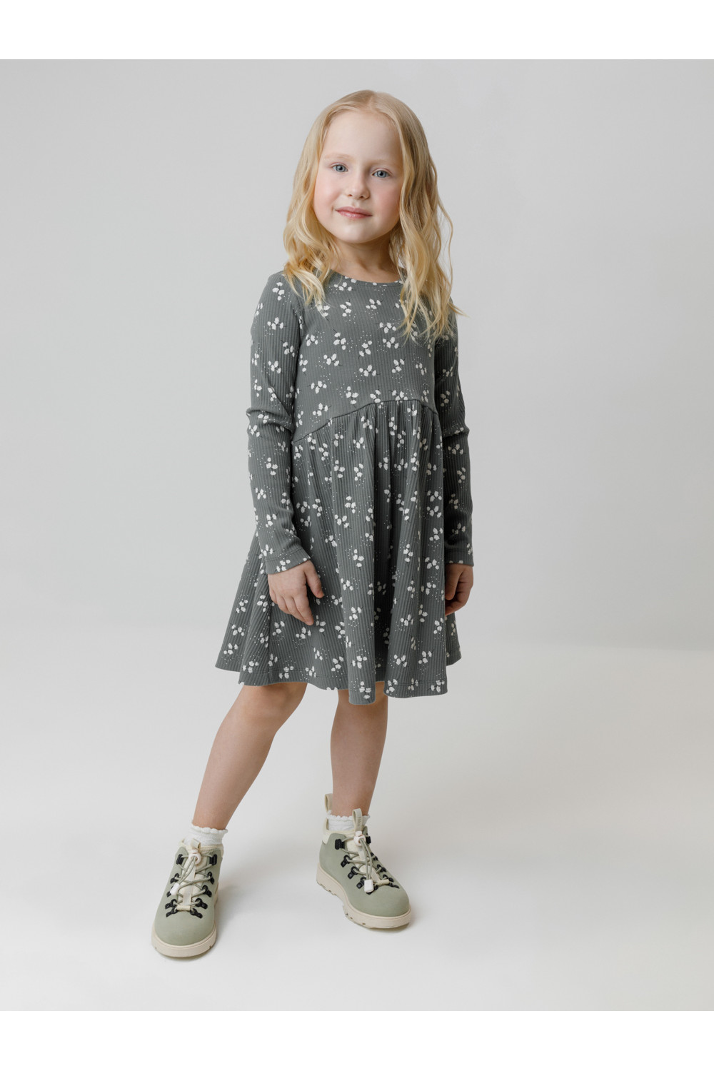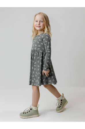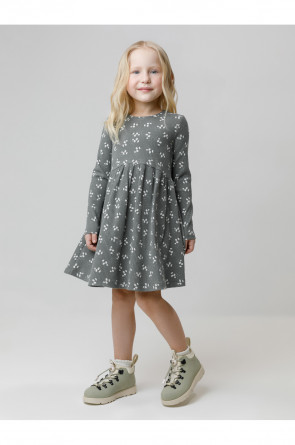 Платье для девочки из эластичного трикотажа в рубчик. Оригинальный рисунок выполнен из стойких текстильных гипоаллергенных красителей. Изделие сохраняет цвет и форму после многократных стирок. Все трикотажные полотна производятся в соответствии с нормами швейцарского сертификата ЭкоТекс.
