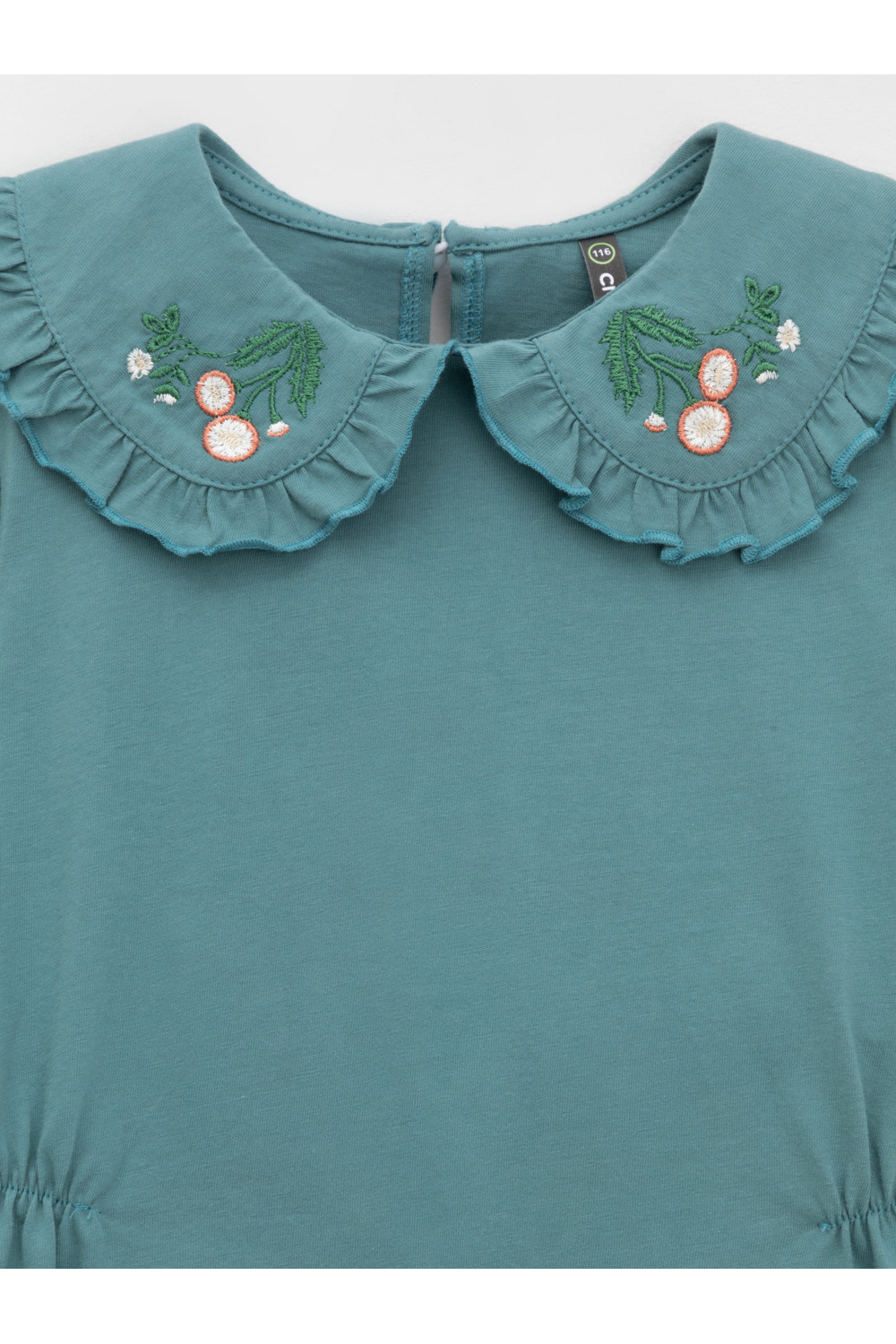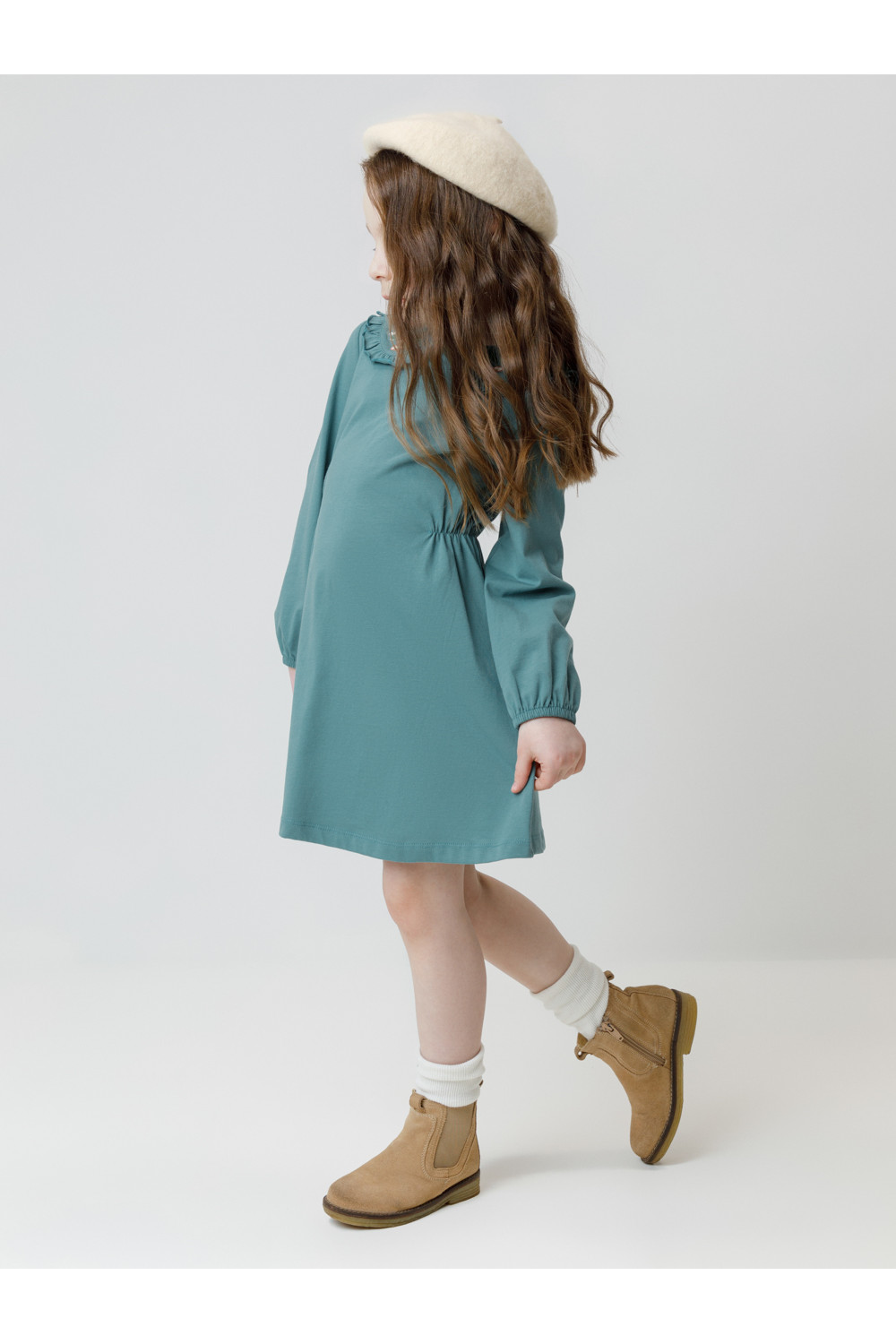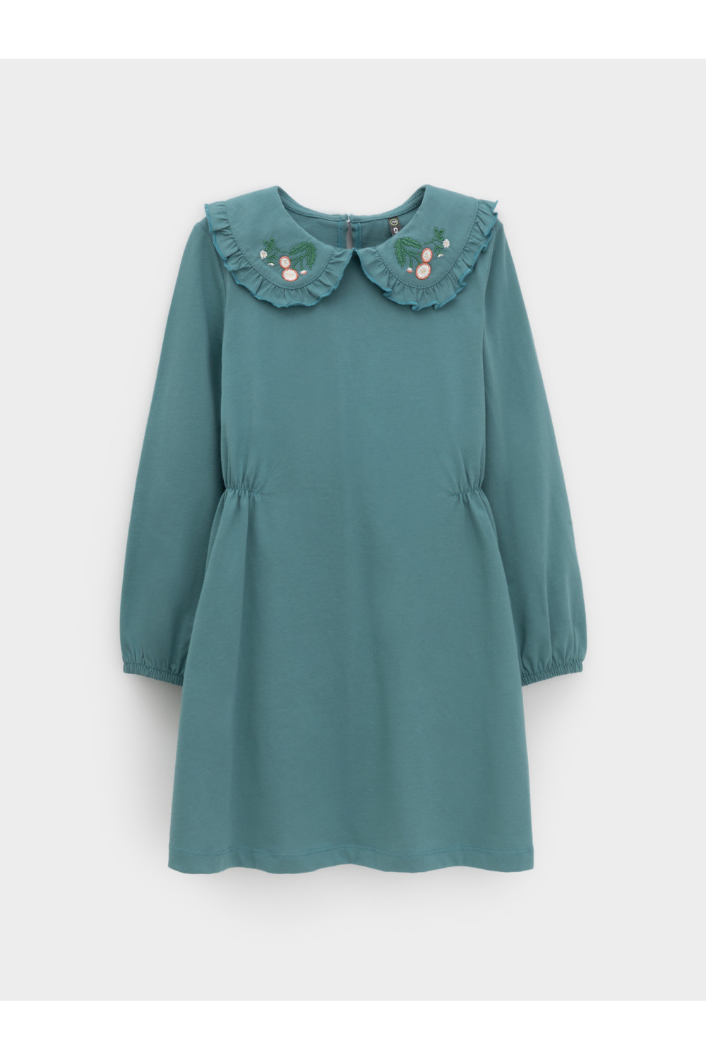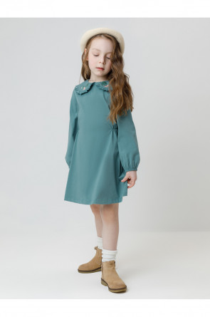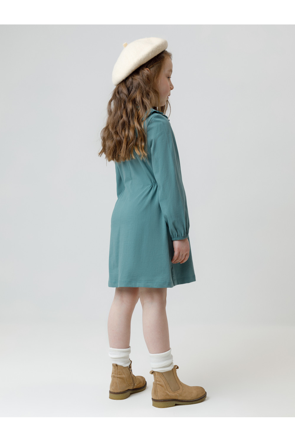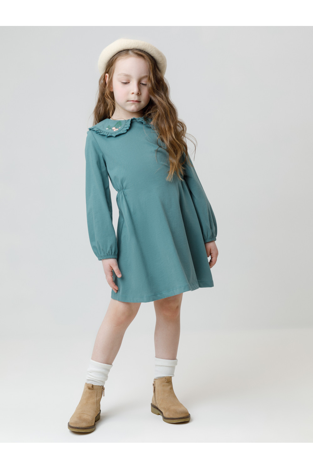 Платье для девочки с длинными рукавами из высококачественного трикотажа супрем. Украшено отложным воротничком с вышивкой. Для удобства одевания платье на спинке застёгивается на пуговицу. Платье сохраняет форму и стойкий цвет после многочисленных стирок и идеально подходит на каждый день. Все трикотажные полотна производятся в соответствии с нормами швейцарского сертификата ЭкоТекс.