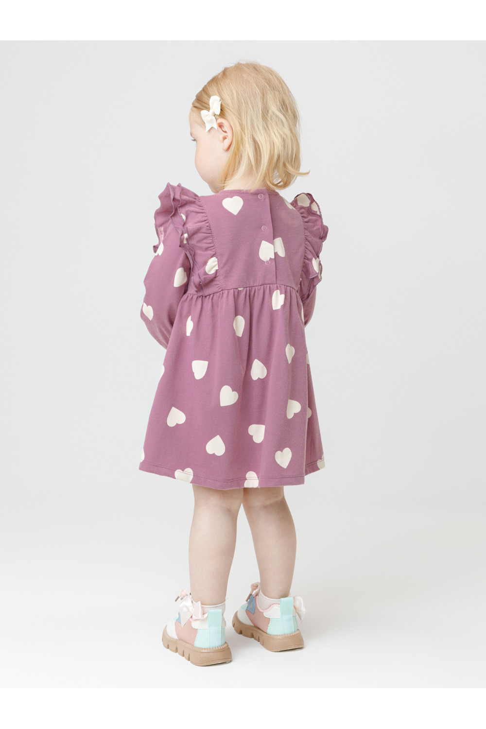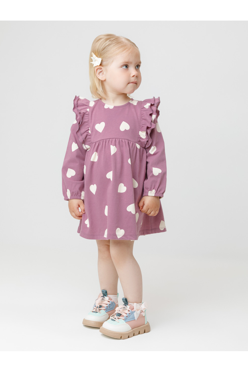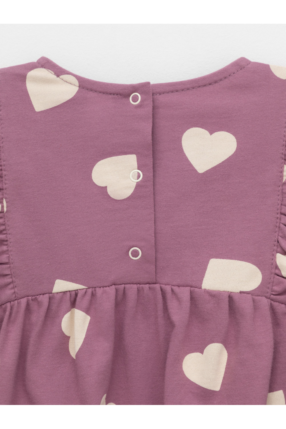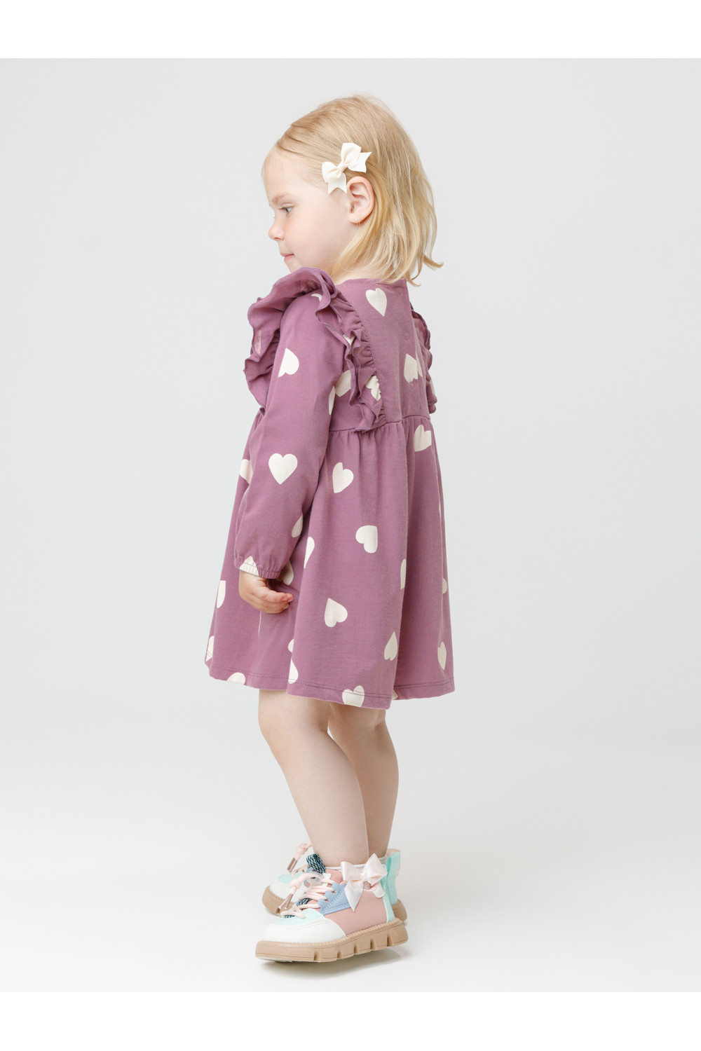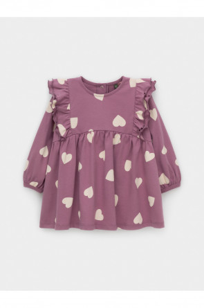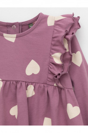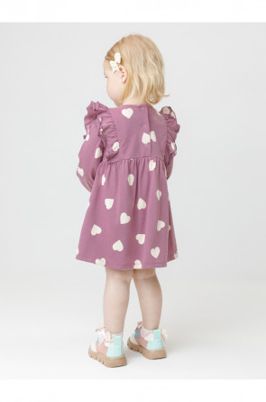 Платье с оборками для девочки. Изготовлено из высококачественного гладкого трикотажа, произведённого из натурального хлопка. Застёгивается на спинке на планку с кнопками. Оригинальный рисунок выполнен из стойких текстильных гипоаллергенных красителей. Изделие сохраняет цвет и форму после многократных стирок. Все трикотажные полотна производятся в соответствии с нормами швейцарского сертификата ЭкоТекс.