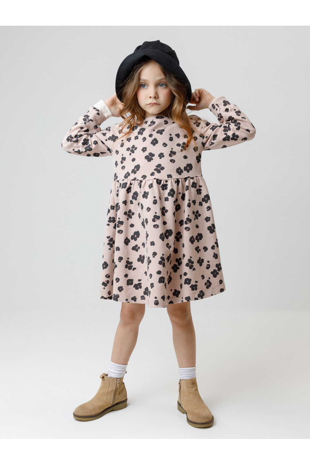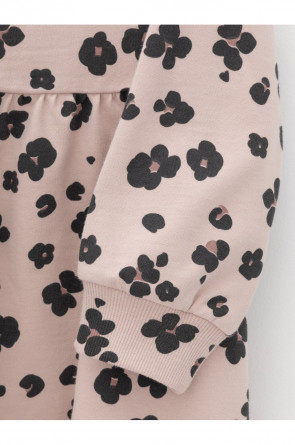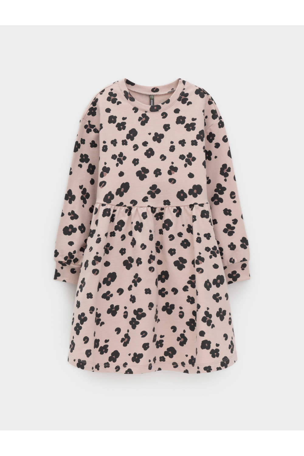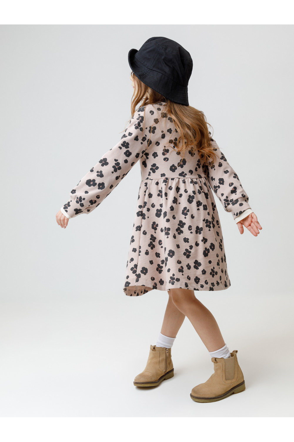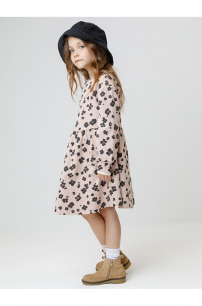 Платье с длинными рукавами для девочки из мягкого петельчатого футера. В размерах 92 и 98 на спине застёгивается на кнопки. Оригинальный рисунок выполнен из стойких текстильных гипоаллергенных красителей. Изделие сохраняет цвет и форму после многократных стирок. Все трикотажные полотна производятся в соответствии с нормами швейцарского сертификата ЭкоТекс.
