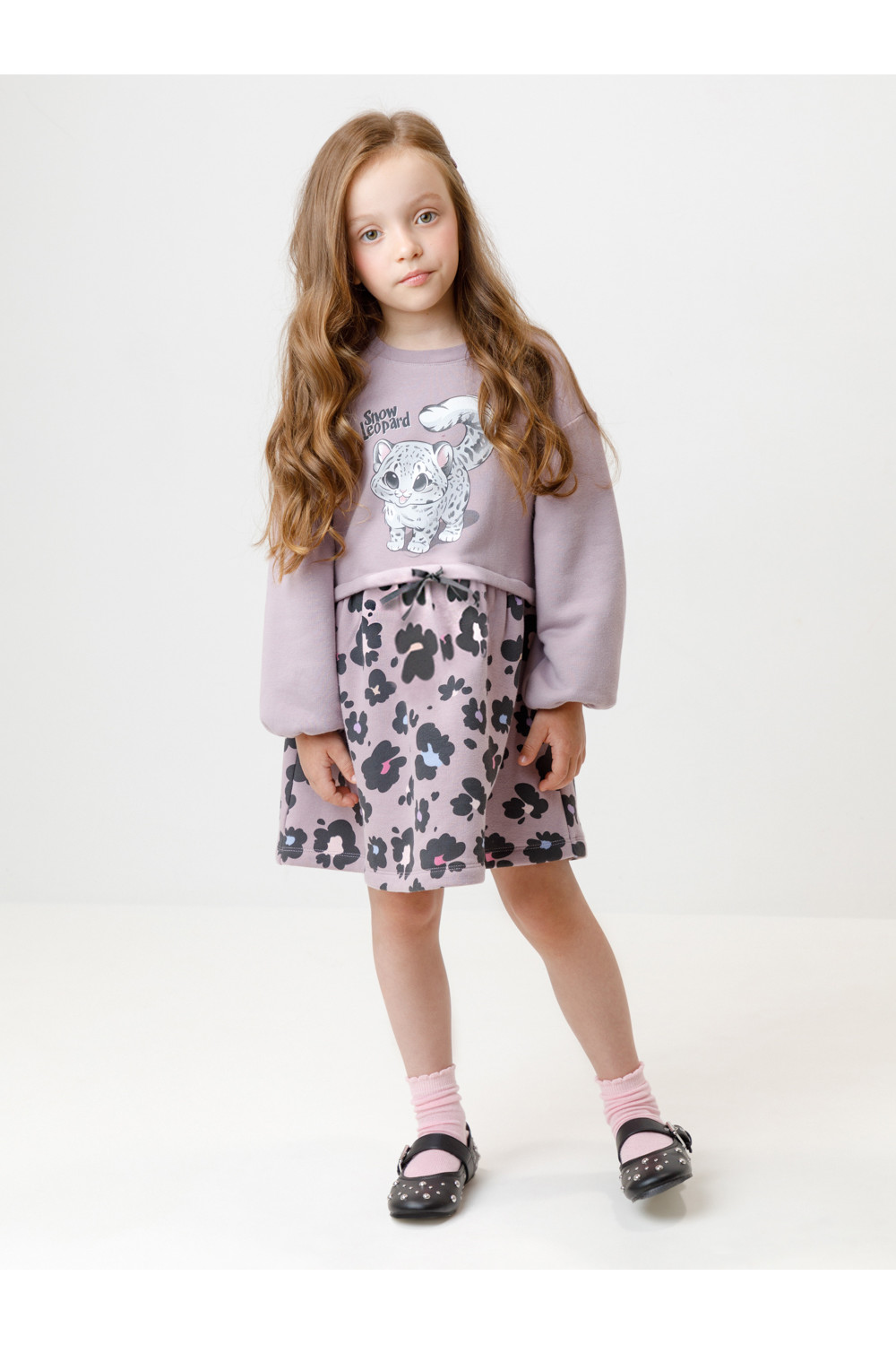 Тёплое платье для девочки с имитацией юбки и джемпера. Изготовлено из мягкого трикотажа с начёсом. В размерах 92 и 98 на спине застёгивается на кнопки. Оригинальный рисунок выполнен из стойких текстильных гипоаллергенных красителей. Изделие сохраняет цвет и форму после многократных стирок. Все трикотажные полотна производятся в соответствии с нормами швейцарского сертификата ЭкоТекс.