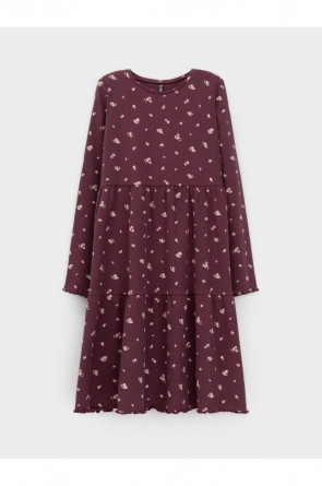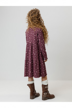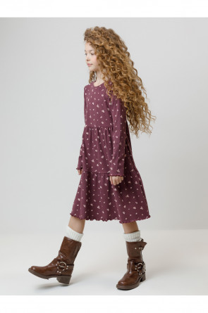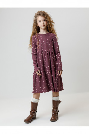 Платье для девочки из эластичного трикотажа в рубчик. Оригинальный рисунок выполнен из стойких текстильных гипоаллергенных красителей. Изделие сохраняет цвет и форму после многократных стирок. Все трикотажные полотна производятся в соответствии с нормами швейцарского сертификата ЭкоТекс.
