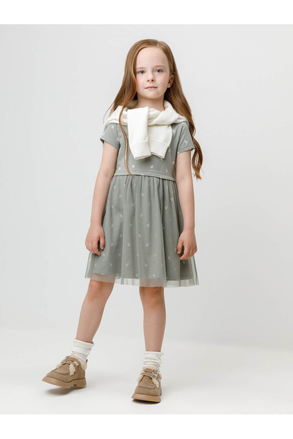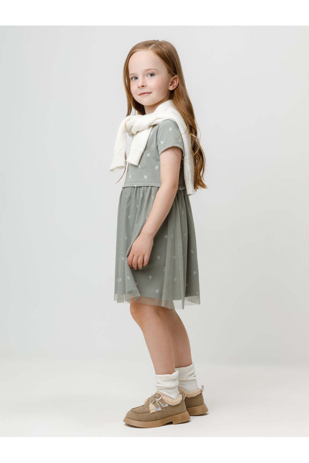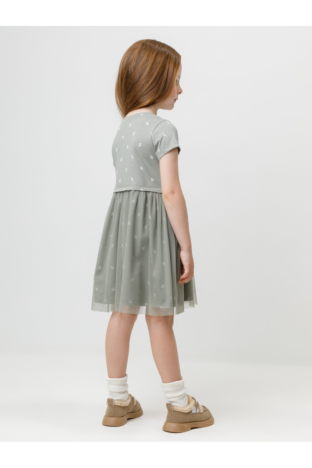 Нарядное платье для девочки с воздушным верхним слоем из сетки. Изготовлено из высококачественного гладкого трикотажа, произведённого из натурального хлопка. Застёгивается на кнопки в размерах 92 и 98. Оригинальный рисунок выполнен из стойких текстильных гипоаллергенных красителей. Изделие сохраняет цвет и форму после многократных стирок. Все трикотажные полотна производятся в соответствии с нормами швейцарского сертификата ЭкоТекс.
